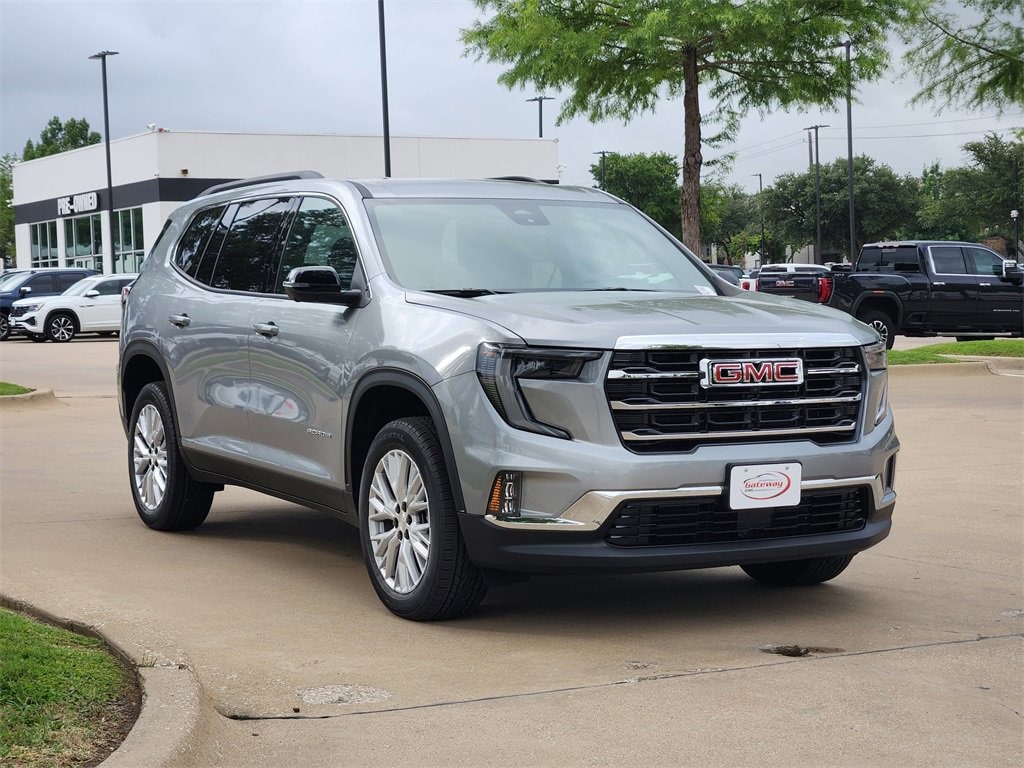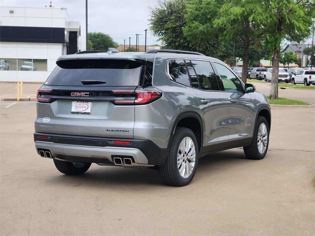 Sterling Metallic 2025 GMC Acadia 4D Sport Utility Elevation FWD 8-Speed Automatic 2.5L DOHC Elevation Premium Package (3-Channel Programmable Universal Home Remote, 6-Way Power Front Passenger Seat Adjuster, 7-Passenger Seating (2-2-3 Seating Configuration), Auto-Dimming Inside Rear-View Mirror, CoreTec Seat Trim, Front Passenger Power Lumbar Seat Adjuster, and Wheels: 20 x 8 Bright Silver Aluminum), Preferred Equipment Group 4SC, FWD, After Dark Cloth, 12 Speakers, 18 x 7.5 Aluminum Wheels, 2-Way Driver Power Lumbar Seat Adjuster, 3.49 Final Drive Axle Ratio, 3rd row seats: split-bench, 4-Way Manual Front Passenger Seat Adjuster, 4-Wheel Disc Brakes, 8-Passenger Seating (2-3-3 Seating Configuration), 8-Way Power Driver Seat Adjuster, ABS brakes, Air Conditioning, Alloy wheels, AM/FM radio: SiriusXM with 360L, Apple CarPlay/Android Auto, Auto High-beam Headlights, Auto-dimming Rear-View mirror, Automatic temperature control, Bodyside moldings, Bose Premium 12-Speaker System w/Sub-Woofer, Brake assist, Bumpers: body-color, Cloth Seat Trim, Compass, Delay-off headlights, Driver door bin, Driver vanity mirror, Dual front impact airbags, Dual front side impact airbags, Electronic Stability Control, Emergency communication system: OnStar Services capable, Exterior Parking Camera Rear, Four wheel independent suspension, Front anti-roll bar, Front Bucket Seats, Front Center Armrest, Front dual zone A/C, Front fog lights, Front License Plate Bracket, Front reading lights, Fully automatic headlights, Heated door mirrors, Heated Driver & Front Passenger Seats, Heated front seats, Heated steering wheel, Illuminated entry, Leather steering wheel, Low tire pressure warning, Navigation System, Occupant sensing airbag, Outside temperature display, Overhead airbag, Overhead console, Panic alarm, Passenger door bin, Passenger vanity mirror, Power door mirrors, Power driver seat, Power Liftgate, Power steering, Power windows, Radio data system, Radio: 15 Premium GMC Infotainment System, Rear air conditioning, Rear anti-roll bar, Rear reading lights, Rear seat center armrest, Rear side impact airbag, Rear window defroster, Rear window wiper, Remote keyless entry, Security system, SiriusXM w/360L, Speed control, Speed-sensing steering, Split folding rear seat, Spoiler, Sport steering wheel, Steering wheel mounted audio controls, Tachometer, Telescoping steering wheel, Tilt steering wheel, Traction control, Trip computer, Turn signal indicator mirrors, Variably intermittent wipers, and Voltmeter.