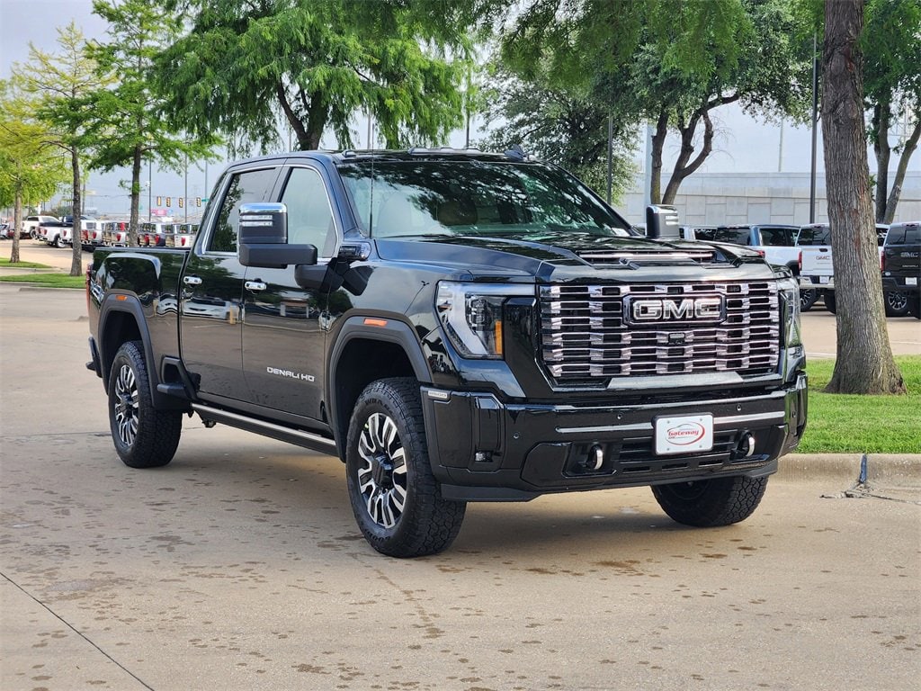 Onyx Black 2025 GMC Sierra 2500HD 4D Crew Cab Denali Ultimate 4WD 10-Speed Automatic Duramax 6.6L V8 Turbodiesel Gooseneck/5th Wheel Prep Package, Hitch Package (LPO), Preferred Equipment Group 5SB (120-Volt Bed Mounted Power Outlet, 120-Volt Instrument Panel Power Outlet, 2 Charge-Only Rear USB Ports, 2 Charge/Data USB Ports Inside Center Console, 2 USB Ports, 2-Speed Active Transfer Case, Bed View Camera w/2 Trailer Camera Provisions, Bose Premium Series 12-Speaker System, Deep-Tinted Glass, Electric Rear-Window Defogger, Floor-Mounted Center Console, Front Rain-Sensing Wipers, HD Surround Vision, Heated 2nd Row Outboard Seats, Heated Driver & Front Outboard Passenger Seats, Keyless Open & Start, LED Cargo Area Lighting, LED Smoked Amber Roof Marker Lamps, Manual Tilt-Wheel/Telescoping Steering Column, OnStar Services Capable, Power Front Passenger Windows w/Express Up/Down, Power Sliding Rear Window w/Defogger, Power Sunroof, Push Button Start, Rear Cross Traffic Alert, Rear Wheelhouse Liners, Remote Vehicle Starter System, Safety Alert Seat, Signature Denali Ultimate Grille in Vadar Chrome, SiriusXM w/360L Trial Subscription, Spray-On Pickup Bedliner w/GMC Logo, Steering Wheel Audio Controls, Trailer Cam Provisions & Trailer Viewing Software, Trailer Side Blind Zone Alert, Trailer Tire Pressure Monitor Sensors, Ultrasonic Front & Rear Park Assist, Unauthorized Entry Theft-Deterrent System, Universal Home Remote, Ventilated Driver & Front Passenger Seats, Wireless Charging, and Wireless Phone Projection), Technology Package (Inside Rearview Auto-Dimming Rear Camera Mirror and Multicolor 15 Diagonal Head-Up Display), X31 Off-Road Package (Hill Descent Control), 10-Speed Automatic, 4WD, Alpine Umber Leather, 12 Speakers, 16-Way Power Driver Seat Adjuster w/Lumbar, 16-Way Power Passenger Seat Adjuster w/Lumbar, 220-Amp Alternator, 3.42 Axle Ratio, 4-Wheel Disc Brakes, ABS brakes, Air Conditioning, Alloy wheels, AM/FM radio: SiriusXM with 360L, Apple CarPlay/Android Auto, Auto High-beam Headlights, Auto-dimming door mirrors, Auto-dimming Rear-View mirror, Automatic Emergency Braking, Automatic temperature control, Block heater, Brake assist, Buckle to Drive, Bumpers: body-color, Compass, Console-Mounted Safe (LPO), Delay-off headlights, Driver door bin, Driver Memory, Driver vanity mirror, Dual front impact airbags, Dual front side impact airbags, Dual Heavy-Duty 70 Amp Battery, Electronic Stability Control, Emergency communication system: OnStar, Following Distance Indicator, Forward Collision Alert, Front anti-roll bar, Front Bucket Seats, Front Center Armrest, Front dual zone A/C, Front fog lights, Front License Plate Kit, Front Pedestrian Braking, Front reading lights, Front wheel independent suspension, Full Grain Leather Seat Trim, Fully automatic headlights, Garage door transmitter, Genuine wood dashboard insert, Genuine wood door panel insert, GMC MultiPro Tailgate Step Lights (LPO), Heads-Up Display, Heated door mirrors, Heated front seats, Heated rear seats, Heated steering wheel, Hitch Guidance w/Hitch View, Illuminated entry, In-Vehicle Trailering System App, IntelliBeam Automatic High Beam On/Off, Lane Departure Warning System, Leather steering wheel, Low tire pressure warning, Memory seat, Occupant sensing airbag, Off-Road Suspension, Outside temperature display, Overhead airbag, Overhead console, Panic alarm, Passenger door bin, Passenger vanity mirror, Pickup Box, Power door mirrors, Power driver seat, Power moonroof, Power passenger seat, Power steering, Power windows, Radio: AM/FM w/Premium GMC Infotainment System, Rain sensing wipers, Rear reading lights, Rear seat center armrest, Rear step bumper, Rear window defroster, Remote keyless entry, Security system, Speed control, Speed-sensing steering, Split folding rear seat, Steering wheel mounted audio controls, Tachometer, Telescoping steering wheel, Tilt steering wheel,
