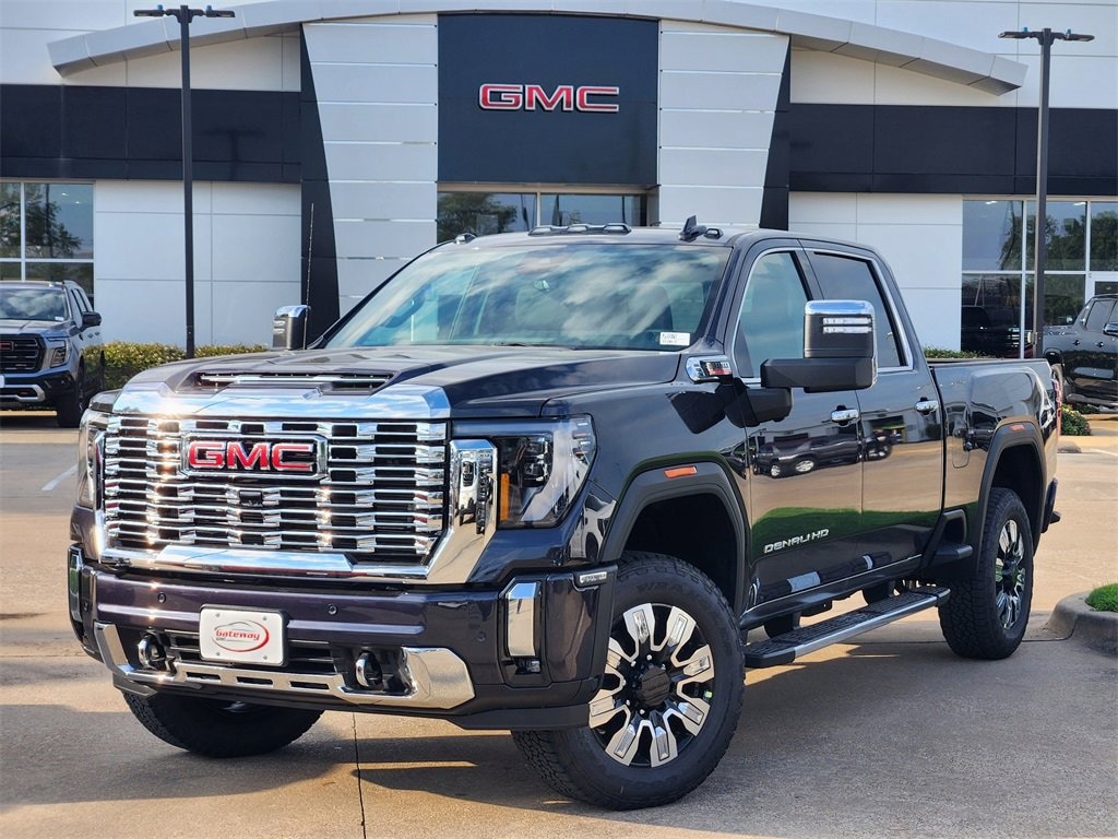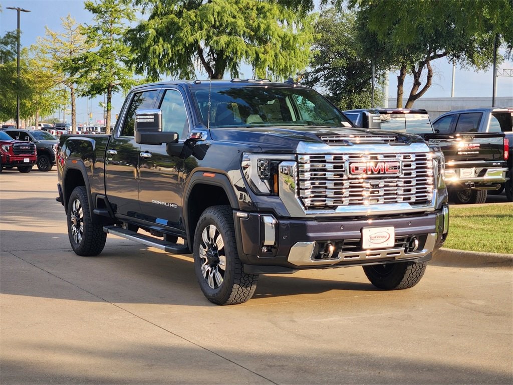 Titanium Rush Metallic 2025 GMC Sierra 2500HD 4D Crew Cab Denali 4WD 10-Speed Automatic Duramax 6.6L V8 Turbodiesel Denali Reserve Package (Power Sunroof), Preferred Equipment Group 5SA (120-Volt Bed Mounted Power Outlet, 120-Volt Instrument Panel Power Outlet, 2 Charge-Only Rear USB Ports, 2 Charge/Data USB Ports Inside Center Console, 2 USB Ports, 2-Speed Active Transfer Case, Bed View Camera w/2 Trailer Camera Provisions, Bose Premium 7-Speaker Sound System, Deep-Tinted Glass, Electric Rear-Window Defogger, Floor-Mounted Center Console, Front Rain-Sensing Wipers, HD Surround Vision, Heated 2nd Row Outboard Seats, Heated Driver & Front Outboard Passenger Seats, Keyless Open & Start, LED Cargo Area Lighting, LED Smoked Amber Roof Marker Lamps, Manual Tilt-Wheel/Telescoping Steering Column, OnStar Services Capable, Polished Exhaust Tip, Power Front Passenger Windows w/Express Up/Down, Power Sliding Rear Window w/Defogger, Push Button Start, Rear Cross Traffic Alert, Rear Wheelhouse Liners, Remote Vehicle Starter System, Safety Alert Seat, Signature Chrome Denali Grille, SiriusXM w/360L Trial Subscription, Spray-On Pickup Bedliner w/GMC Logo, Steering Wheel Audio Controls, Trailer Cam Provisions & Trailer Viewing Software, Trailer Side Blind Zone Alert, Ultrasonic Front & Rear Park Assist, Unauthorized Entry Theft-Deterrent System, Universal Home Remote, Ventilated Driver & Front Passenger Seats, Wireless Charging, and Wireless Phone Projection), Technology Package (Inside Rearview Auto-Dimming Rear Camera Mirror and Multicolor 15 Diagonal Head-Up Display), X31 Off-Road Package (Hill Descent Control), 10-Speed Automatic, 4WD, Black Leather, 12-Way Power Driver Seat Adjuster w/Lumbar, 12-Way Power Passenger Seat Adjuster w/Lumbar, 220-Amp Alternator, 3.42 Axle Ratio, 3.73 Rear Axle Ratio, 4-Wheel Disc Brakes, 5th Wheel & Gooseneck Trailer Wiring Provisions, 7 Speakers, ABS brakes, Air Conditioning, Alloy wheels, AM/FM radio: SiriusXM with 360L, Apple CarPlay/Android Auto, Auto High-beam Headlights, Auto-dimming door mirrors, Auto-dimming Rear-View mirror, Automatic Emergency Braking, Automatic temperature control, Brake assist, Buckle to Drive, Bumpers: body-color, Compass, Console-Mounted Safe (LPO), Delay-off headlights, Driver door bin, Driver Memory, Driver vanity mirror, Dual front impact airbags, Dual front side impact airbags, Electronic Stability Control, Emergency communication system: OnStar, Engine Block Heater, Exhaust Brake, Following Distance Indicator, Forge Perforated Leather-Appointed Front Seat Trim, Forward Collision Alert, Front anti-roll bar, Front Bucket Seats, Front Center Armrest, Front dual zone A/C, Front fog lights, Front License Plate Kit, Front Pedestrian Braking, Front reading lights, Front wheel independent suspension, Fully automatic headlights, Garage door transmitter, Genuine wood dashboard insert, Genuine wood door panel insert, Heated door mirrors, Heated front seats, Heated rear seats, Heated steering wheel, Heavy-Duty 80 Amp Battery, Hitch Guidance w/Hitch View, Illuminated entry, In-Vehicle Trailering System App, IntelliBeam Automatic High Beam On/Off, Lane Departure Warning System, Low tire pressure warning, Memory seat, Occupant sensing airbag, Off-Road Suspension, Outside temperature display, Overhead airbag, Overhead console, Panic alarm, Passenger door bin, Passenger vanity mirror, Pickup Box, Power door mirrors, Power driver seat, Power passenger seat, Power steering, Power windows, Radio: AM/FM w/Premium GMC Infotainment System, Rain sensing wipers, Rear reading lights, Rear seat center armrest, Rear step bumper, Rear window defroster, Remote keyless entry, Security system, Speed control, Speed-sensing steering, Split folding rear seat, Steering wheel mounted audio controls, Tachometer, Telescoping steering wheel, Tilt steering wheel, Traction control, Trip computer, Turn signal indicator mirro