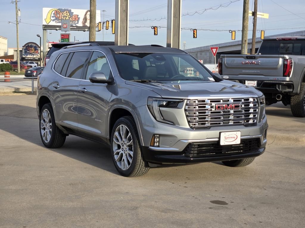Sterling Metallic 2026 GMC Acadia 4D Sport Utility Denali AWD 8-Speed Automatic 2.5L DOHC Floor Liner Package (LPO) (1st & 2nd Row All-Weather Floor Liner (LPO), 3rd Row All-Weather Floor Liner (LPO), and Integrated Cargo Liner (LPO)), Memory Package, Super Cruise Package (3 Years of OnStar One, Driver Attention Assist, Enhanced Automatic Parking Assist, and Super Cruise), AWD, After Dark Leather, 12 Speakers, 3.49 Final Drive Axle Ratio, 3rd Row 60/40 Power Split-Folding Bench, 3rd row seats: split-bench, 4-Wheel Disc Brakes, 6-Way Power Front Passenger Seat Adjuster, 7-Passenger Seating (2-2-3 Seating Configuration), 8-Way Power Driver Seat Adjuster, ABS brakes, Air Conditioning, Alloy wheels, AM/FM radio: SiriusXM with 360L, Apple CarPlay/Android Auto, Auto High-beam Headlights, Auto-dimming door mirrors, Auto-dimming Rear-View mirror, Automatic temperature control, Bodyside moldings, Bose Premium 12-Speaker System w/Sub-Woofer, Brake assist, Bumpers: body-color, Compass, Delay-off headlights, Driver 4-Way Power Lumbar Seat Adjuster, Driver door bin, Driver vanity mirror, Dual front impact airbags, Dual front side impact airbags, Electronic Stability Control, Emergency communication system: OnStar Services capable, Exterior Parking Camera Rear, Four wheel independent suspension, Front anti-roll bar, Front Bucket Seats, Front Center Armrest, Front dual zone A/C, Front fog lights, Front Passenger 4-Way Power Lumbar Seat Adjuster, Front reading lights, Fully automatic headlights, Garage door transmitter, Genuine wood console insert, Genuine wood dashboard insert, Genuine wood door panel insert, Heads-Up Display, Heated & Ventilated Driver & Front Passenger Seats, Heated door mirrors, Heated Driver & Front Passenger Seats, Heated front seats, Heated rear seats, Heated steering wheel, Illuminated entry, Leather steering wheel, Low tire pressure warning, Memory seat, Navigation System, Occupant sensing airbag, Outside temperature display, Overhead airbag, Overhead console, Panic alarm, Panoramic Power Sunroof w/Sunshade, Passenger door bin, Passenger vanity mirror, Perforated Leather-Appointed Seat Trim, Performance Suspension, Power door mirrors, Power driver seat, Power Liftgate, Power passenger seat, Power steering, Power windows, Radio data system, Radio: 15 Premium GMC Infotainment System, Rain sensing wipers, Rear air conditioning, Rear anti-roll bar, Rear reading lights, Rear side impact airbag, Rear window defroster, Rear window wiper, Remote keyless entry, Security system, SiriusXM w/360L, Speed control, Speed-sensing steering, Split folding rear seat, Spoiler, Sport steering wheel, Steering wheel memory, Steering wheel mounted audio controls, Tachometer, Telescoping steering wheel, Tilt steering wheel, Traction control, Trip computer, Turn signal indicator mirrors, Variably intermittent wipers, Ventilated front seats, Voltmeter, Wheels: 20 x 8 Pearl Nickel Machined Aluminum, and Wheels: 22 x 8.5 Pearl Nickel Machined Aluminum.