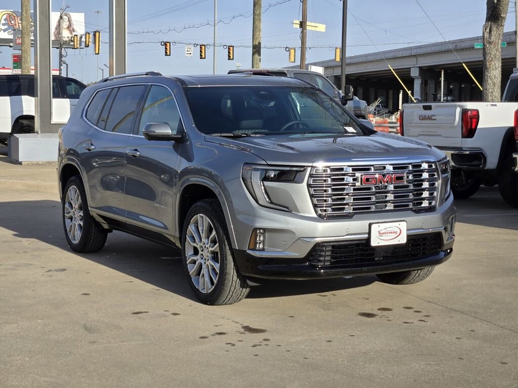 Sterling Metallic 2026 GMC Acadia 4D Sport Utility Denali FWD 8-Speed Automatic 2.5L DOHC Floor Liner Package (1st and 2nd Row All-Weather Floor Liner, 3rd Row All-Weather Floor Liner, and Integrated Cargo Liner), Memory Package, Super Cruise Package (3 Years of OnStar One, Driver Attention Assist, Enhanced Automatic Parking Assist, and Super Cruise), FWD, After Dark Leather, 12 Speakers, 3.49 Final Drive Axle Ratio, 3rd Row 60/40 Power Split-Folding Bench, 3rd row seats: split-bench, 4-Wheel Disc Brakes, 6-Way Power Front Passenger Seat Adjuster, 7-Passenger Seating (2-2-3 Seating Configuration), 8-Way Power Driver Seat Adjuster, ABS brakes, Air Conditioning, Alloy wheels, AM/FM radio: SiriusXM with 360L, Apple CarPlay/Android Auto, Auto High-beam Headlights, Auto-dimming door mirrors, Auto-dimming Rear-View mirror, Automatic temperature control, Bodyside moldings, Bose Premium 12-Speaker System with Sub-Woofer, Brake assist, Bumpers: body-color, Compass, Delay-off headlights, Driver 4-Way Power Lumbar Seat Adjuster, Driver door bin, Driver vanity mirror, Dual front impact airbags, Dual front side impact airbags, Electronic Stability Control, Emergency communication system: OnStar Services capable, Exterior Parking Camera Rear, Four wheel independent suspension, Front anti-roll bar, Front Bucket Seats, Front Center Armrest, Front dual zone A/C, Front fog lights, Front Passenger 4-Way Power Lumbar Seat Adjuster, Front reading lights, Fully automatic headlights, Garage door transmitter, Genuine wood console insert, Genuine wood dashboard insert, Genuine wood door panel insert, Heads-Up Display, Heated and Ventilated Driver and Front Passenger Seats, Heated door mirrors, Heated Driver and Front Passenger Seats, Heated front seats, Heated rear seats, Heated steering wheel, Illuminated entry, Leather steering wheel, Low tire pressure warning, Memory seat, Navigation System, Occupant sensing airbag, Outside temperature display, Overhead airbag, Overhead console, Panic alarm, Panoramic Power Sunroof with Sunshade, Passenger door bin, Passenger vanity mirror, Perforated Leather-Appointed Seat Trim, Performance Suspension, Power door mirrors, Power driver seat, Power Liftgate, Power passenger seat, Power steering, Power windows, Radio data system, Radio: 15 Diagonal Premium GMC Infotainment System, Rain sensing wipers, Rear air conditioning, Rear anti-roll bar, Rear reading lights, Rear side impact airbag, Rear window defroster, Rear window wiper, Remote keyless entry, Security system, SiriusXM with 360L, Speed control, Speed-sensing steering, Split folding rear seat, Spoiler, Sport steering wheel, Steering wheel memory, Steering wheel mounted audio controls, Tachometer, Telescoping steering wheel, Tilt steering wheel, Traction control, Trip computer, Turn signal indicator mirrors, Variably intermittent wipers, Ventilated front seats, Voltmeter, Wheels: 20 x 8 Pearl Nickel Machined Aluminum, and Wheels: 22 x 8.5 Pearl Nickel Machined Aluminum.