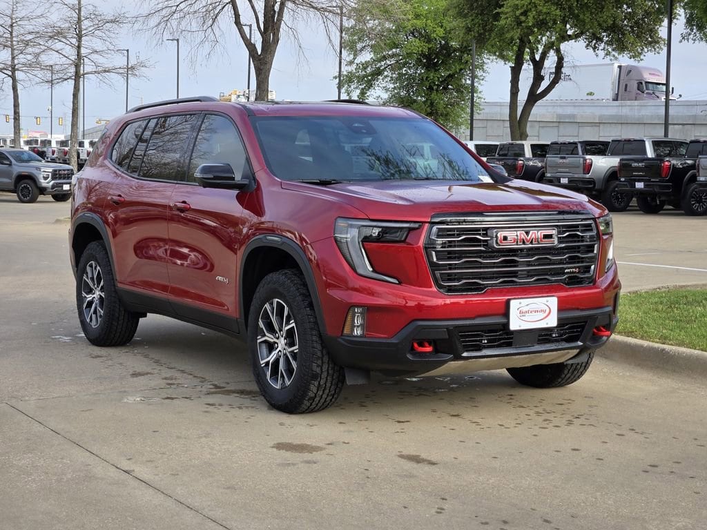 Volcanic Red Tintcoat 2026 GMC Acadia 4D Sport Utility AT4 AWD 8-Speed Automatic 2.5L DOHC Luxury Package (8 Diagonal Head-Up Display, Heated & Ventilated Driver & Front Passenger Seats, Heated Rear Outboard Seating Positions, Heated Wiper Park, and Laminated Acoustic Glass), Preferred Equipment Group 4SB, AWD, Forest Storm W/Mahogany Accents Cloth, 12 Speakers, 3.49 Final Drive Axle Ratio, 3rd row seats: split-bench, 4-Wheel Disc Brakes, 6-Way Power Front Passenger Seat Adjuster, 7-Passenger Seating (2-2-3 Seating Configuration), 8-Way Power Driver Seat Adjuster, ABS brakes, Air Conditioning, Alloy wheels, AM/FM radio: SiriusXM with 360L, Apple CarPlay/Android Auto, Auto High-beam Headlights, Auto-dimming Rear-View mirror, Automatic temperature control, Bodyside moldings, Bose Premium 12-Speaker System w/Sub-Woofer, Brake assist, Bumpers: body-color, Cloth/CoreTec Seat Trim, Compass, Delay-off headlights, Deleted Mobile Service Plus, Driver 2-Way Power Lumbar Seat Adjuster, Driver door bin, Driver vanity mirror, Dual front impact airbags, Dual front side impact airbags, Electronic Stability Control, Emergency communication system: OnStar Services capable, Exterior Parking Camera Rear, Four wheel independent suspension, Front anti-roll bar, Front Bucket Seats, Front Center Armrest, Front dual zone A/C, Front fog lights, Front License Plate Bracket, Front Passenger Power Lumbar Seat Adjuster, Front reading lights, Fully automatic headlights, Garage door transmitter, Heated door mirrors, Heated Driver & Front Passenger Seats, Heated front seats, Heated steering wheel, Illuminated entry, Leather steering wheel, Low tire pressure warning, Navigation System, Occupant sensing airbag, Outside temperature display, Overhead airbag, Overhead console, Panic alarm, Panoramic Power Sunroof w/Sunshade, Passenger door bin, Passenger vanity mirror, Power door mirrors, Power driver seat, Power Liftgate, Power passenger seat, Power steering, Power windows, Radio data system, Radio: 15 Premium GMC Infotainment System, Rear air conditioning, Rear anti-roll bar, Rear reading lights, Rear side impact airbag, Rear window defroster, Rear window wiper, Remote keyless entry, Security system, SiriusXM w/360L, Speed control, Speed-sensing steering, Split folding rear seat, Spoiler, Sport steering wheel, Steering wheel mounted audio controls, Tachometer, Telescoping steering wheel, Tilt steering wheel, Traction control, Trip computer, Turn signal indicator mirrors, Variably intermittent wipers, Voltmeter, and Wheels: 18 x 8 Dark Machined Aluminum.