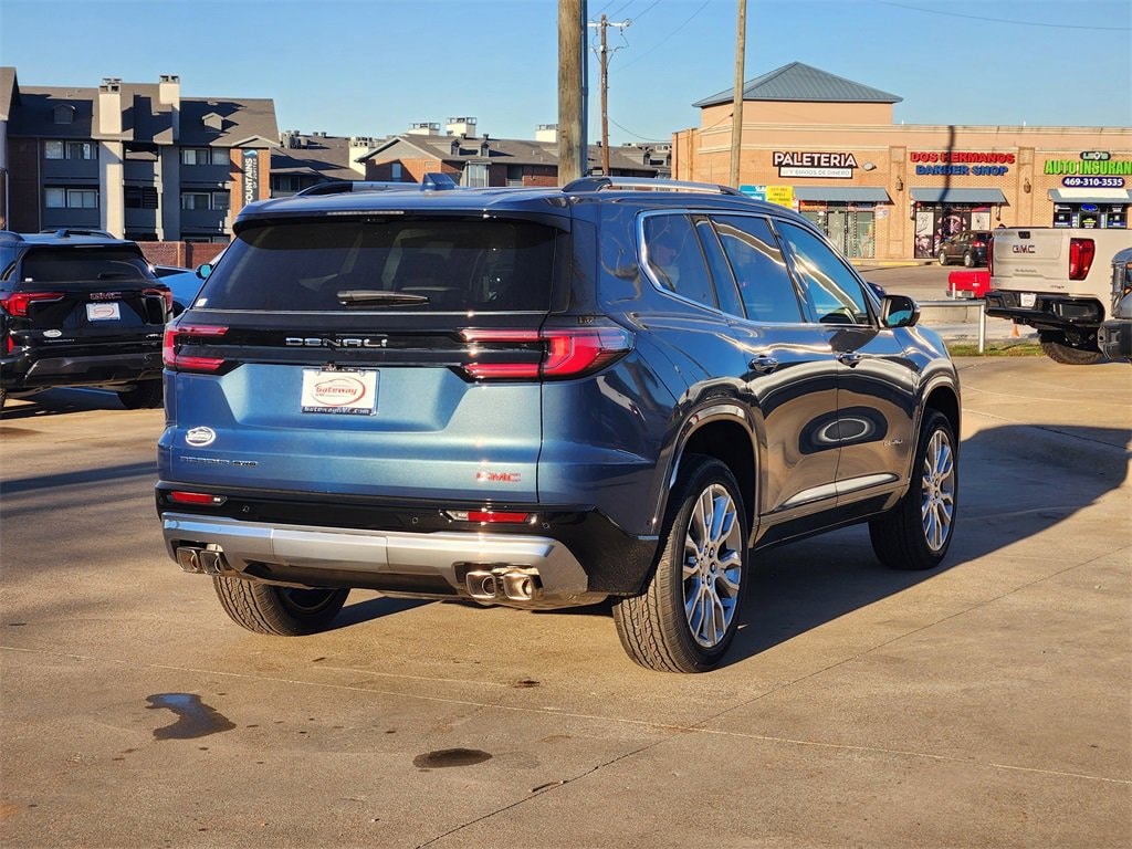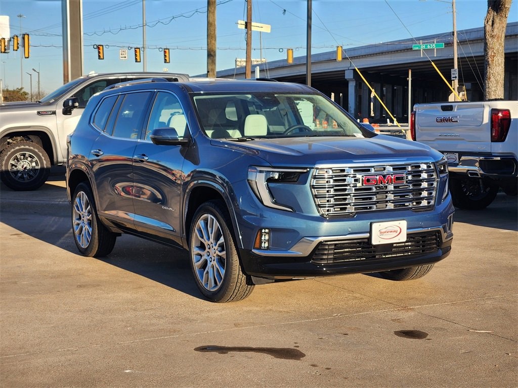 Downpour Metallic 2026 GMC Acadia 4D Sport Utility Denali AWD 8-Speed Automatic 2.5L DOHC Floor Liner Package (LPO) (1st & 2nd Row All-Weather Floor Liner (LPO), 3rd Row All-Weather Floor Liner (LPO), and Integrated Cargo Liner (LPO)), Memory Package, Super Cruise Package (3 Years of OnStar One, Driver Attention Assist, Enhanced Automatic Parking Assist, and Super Cruise), AWD, Sheer/Very Dark Atmosphere Leather, 12 Speakers, 3.49 Final Drive Axle Ratio, 3rd Row 60/40 Power Split-Folding Bench, 3rd row seats: split-bench, 4-Wheel Disc Brakes, 6-Way Power Front Passenger Seat Adjuster, 7-Passenger Seating (2-2-3 Seating Configuration), 8-Way Power Driver Seat Adjuster, ABS brakes, Air Conditioning, Alloy wheels, AM/FM radio: SiriusXM with 360L, Apple CarPlay/Android Auto, Auto High-beam Headlights, Auto-dimming door mirrors, Auto-dimming Rear-View mirror, Automatic temperature control, Bodyside moldings, Bose Premium 12-Speaker System w/Sub-Woofer, Brake assist, Bumpers: body-color, Compass, Delay-off headlights, Driver 4-Way Power Lumbar Seat Adjuster, Driver door bin, Driver vanity mirror, Dual front impact airbags, Dual front side impact airbags, Electronic Stability Control, Emergency communication system: OnStar Services capable, Exterior Parking Camera Rear, Four wheel independent suspension, Front anti-roll bar, Front Bucket Seats, Front Center Armrest, Front dual zone A/C, Front fog lights, Front Passenger 4-Way Power Lumbar Seat Adjuster, Front reading lights, Fully automatic headlights, Garage door transmitter, Genuine wood console insert, Genuine wood dashboard insert, Genuine wood door panel insert, Heads-Up Display, Heated & Ventilated Driver & Front Passenger Seats, Heated door mirrors, Heated Driver & Front Passenger Seats, Heated front seats, Heated rear seats, Heated steering wheel, Illuminated entry, Leather steering wheel, Low tire pressure warning, Memory seat, Navigation System, Occupant sensing airbag, Outside temperature display, Overhead airbag, Overhead console, Panic alarm, Panoramic Power Sunroof w/Sunshade, Passenger door bin, Passenger vanity mirror, Perforated Leather-Appointed Seat Trim, Performance Suspension, Power door mirrors, Power driver seat, Power Liftgate, Power passenger seat, Power steering, Power windows, Radio data system, Radio: 15 Premium GMC Infotainment System, Rain sensing wipers, Rear air conditioning, Rear anti-roll bar, Rear reading lights, Rear side impact airbag, Rear window defroster, Rear window wiper, Remote keyless entry, Security system, SiriusXM w/360L, Speed control, Speed-sensing steering, Split folding rear seat, Spoiler, Sport steering wheel, Steering wheel memory, Steering wheel mounted audio controls, Tachometer, Telescoping steering wheel, Tilt steering wheel, Traction control, Trip computer, Turn signal indicator mirrors, Variably intermittent wipers, Ventilated front seats, Voltmeter, Wheels: 20 x 8 Pearl Nickel Machined Aluminum, and Wheels: 22 x 8.5 Pearl Nickel Machined Aluminum.