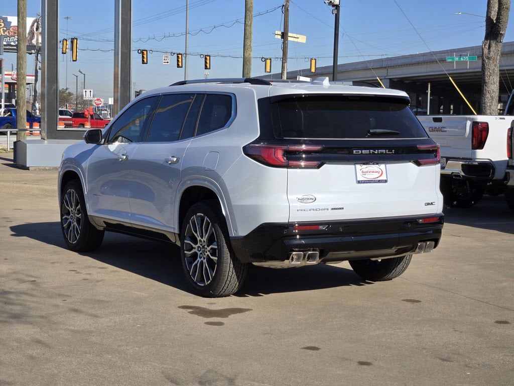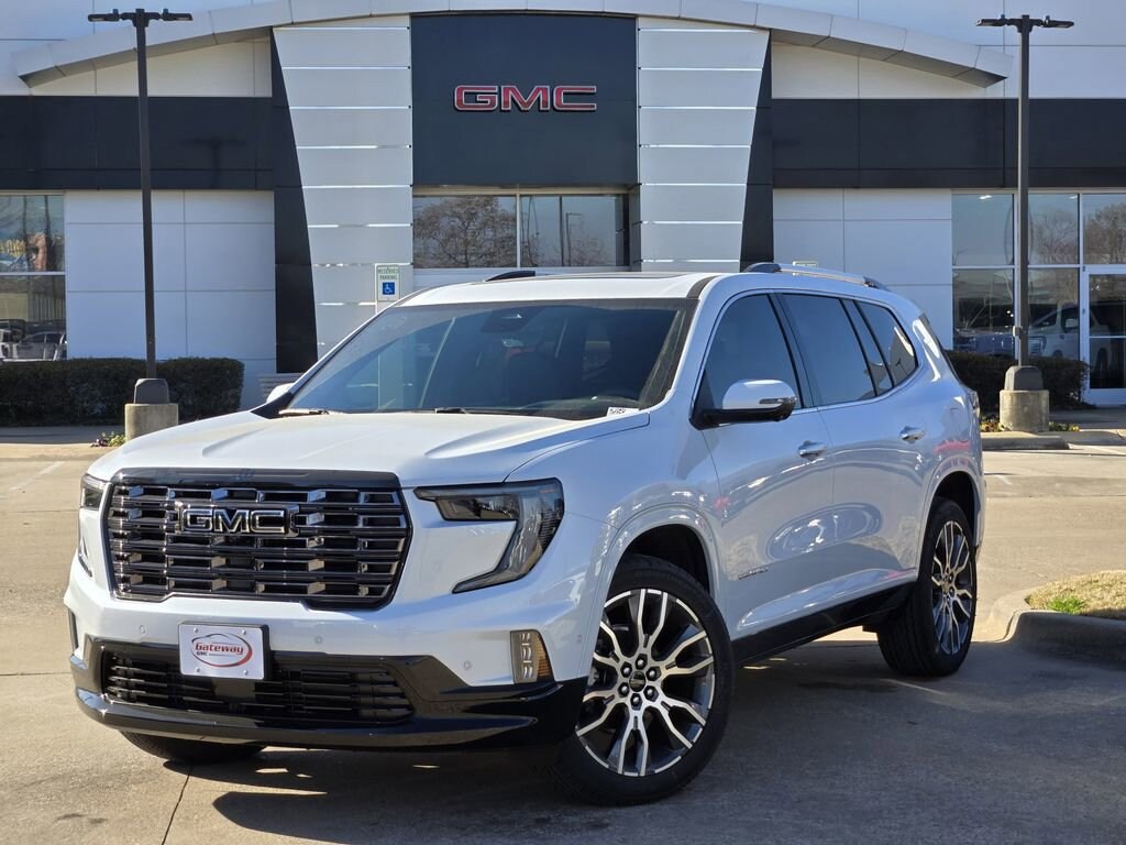 Glacier White Tricoat 2026 GMC Acadia 4D Sport Utility Denali Ultimate AWD 8-Speed Automatic 2.5L DOHC Memory Package, AWD, Woodland Mahogany Leather, 16 Speakers, 3.49 Final Drive Axle Ratio, 3rd Row 60/40 Power Split-Folding Bench, 3rd row seats: split-bench, 4-Wheel Disc Brakes, 6-Way Power Front Passenger Seat Adjuster, 7-Passenger Seating (2-2-3 Seating Configuration), 8-Way Power Driver Seat Adjuster, ABS brakes, Air Conditioning, Alloy wheels, AM/FM radio: SiriusXM with 360L, Apple CarPlay/Android Auto, Auto High-beam Headlights, Auto-dimming door mirrors, Automatic temperature control, Bodyside moldings, Brake assist, Bumpers: body-color, Compass, Delay-off headlights, Driver 4-Way Power Lumbar Seat Adjuster, Driver door bin, Driver Power Massage Seat, Driver vanity mirror, Dual front impact airbags, Dual front side impact airbags, Electronic Stability Control, Emergency communication system: OnStar Services capable, Exterior Parking Camera Rear, Four wheel independent suspension, Front anti-roll bar, Front Bucket Seats, Front Center Armrest, Front dual zone A/C, Front fog lights, Front Passenger 4-Way Power Lumbar Seat Adjuster, Front Passenger Power Massage Seat, Front reading lights, Full Leather Seat Trim, Fully automatic headlights, Garage door transmitter, Genuine wood console insert, Genuine wood dashboard insert, Genuine wood door panel insert, Heads-Up Display, Heated door mirrors, Heated front seats, Heated rear seats, Heated steering wheel, Illuminated entry, Leather steering wheel, Low tire pressure warning, Memory seat, Navigation System, Occupant sensing airbag, Outside temperature display, Overhead airbag, Overhead console, Panic alarm, Passenger door bin, Passenger vanity mirror, Power door mirrors, Power driver seat, Power Liftgate, Power moonroof, Power passenger seat, Power steering, Power windows, Radio data system, Rain sensing wipers, Rear air conditioning, Rear anti-roll bar, Rear reading lights, Rear side impact airbag, Rear window defroster, Rear window wiper, Remote keyless entry, Security system, Speed control, Speed-sensing steering, Split folding rear seat, Spoiler, Sport steering wheel, Steering wheel memory, Steering wheel mounted audio controls, Tachometer, Telescoping steering wheel, Tilt steering wheel, Traction control, Trip computer, Turn signal indicator mirrors, Variably intermittent wipers, Ventilated front seats, Voltmeter, and Wheels: 22 x 8.5 After Midnight Machined Aluminum.