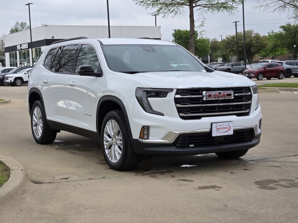 Summit White 2026 GMC Acadia 4D Sport Utility Elevation FWD 8-Speed Automatic 2.5L DOHC Elevation Premium Package (3-Channel Programmable Universal Home Remote, 6-Way Power Front Passenger Seat Adjuster, 7-Passenger Seating (2-2-3 Seating Configuration), CoreTec Seat Trim, and Front Passenger Power Lumbar Seat Adjuster), Floor Liner Package (1st and 2nd Row All-Weather Floor Liner, 3rd Row All-Weather Floor Liner, and Integrated Cargo Liner), FWD, After Dark Cloth, 12 Speakers, 18 x 7.5 Aluminum Wheels, 3.49 Final Drive Axle Ratio, 3rd row seats: split-bench, 4-Way Manual Front Passenger Seat Adjuster, 4-Wheel Disc Brakes, 8-Passenger Seating (2-3-3 Seating Configuration), 8-Way Power Driver Seat Adjuster, ABS brakes, Air Conditioning, Alloy wheels, AM/FM radio: SiriusXM with 360L, Apple CarPlay/Android Auto, Auto High-beam Headlights, Automatic temperature control, Bodyside moldings, Bose Premium 12-Speaker System with Sub-Woofer, Brake assist, Bumpers: body-color, Cloth Seat Trim, Compass, Delay-off headlights, Driver 2-Way Power Lumbar Seat Adjuster, Driver door bin, Driver vanity mirror, Dual front impact airbags, Dual front side impact airbags, Electronic Stability Control, Emergency communication system: OnStar Services capable, Exterior Parking Camera Rear, Four wheel independent suspension, Front anti-roll bar, Front Bucket Seats, Front Center Armrest, Front dual zone A/C, Front fog lights, Front reading lights, Fully automatic headlights, Heated door mirrors, Heated Driver and Front Passenger Seats, Heated front seats, Heated steering wheel, Illuminated entry, Leather steering wheel, Low tire pressure warning, Navigation System, Occupant sensing airbag, Outside temperature display, Overhead airbag, Overhead console, Panic alarm, Passenger door bin, Passenger vanity mirror, Power door mirrors, Power driver seat, Power Liftgate, Power steering, Power windows, Radio data system, Radio: 15 Diagonal Premium GMC Infotainment System, Rear air conditioning, Rear anti-roll bar, Rear reading lights, Rear seat center armrest, Rear side impact airbag, Rear window defroster, Rear window wiper, Remote keyless entry, Security system, SiriusXM with 360L, Speed control, Speed-sensing steering, Split folding rear seat, Spoiler, Sport steering wheel, Steering wheel mounted audio controls, Tachometer, Telescoping steering wheel, Tilt steering wheel, Traction control, Trip computer, Turn signal indicator mirrors, Variably intermittent wipers, and Voltmeter.