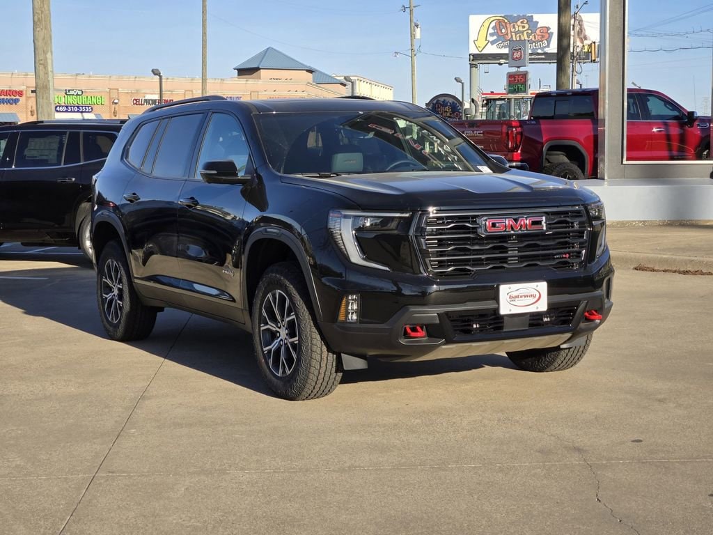 Ebony Twilight Metallic 2026 GMC Acadia 4D Sport Utility AT4 AWD 8-Speed Automatic 2.5L DOHC Luxury Package (8 Diagonal Head-Up Display, Heated & Ventilated Driver & Front Passenger Seats, Heated Rear Outboard Seating Positions, Heated Wiper Park, and Laminated Acoustic Glass), AWD, Forest Storm W/Mahogany Accents Cloth, 12 Speakers, 3.49 Final Drive Axle Ratio, 3rd row seats: split-bench, 4-Wheel Disc Brakes, 6-Way Power Front Passenger Seat Adjuster, 7-Passenger Seating (2-2-3 Seating Configuration), 8-Way Power Driver Seat Adjuster, ABS brakes, Air Conditioning, Alloy wheels, AM/FM radio: SiriusXM with 360L, Apple CarPlay/Android Auto, Auto High-beam Headlights, Auto-dimming Rear-View mirror, Automatic temperature control, Bodyside moldings, Bose Premium 12-Speaker System w/Sub-Woofer, Brake assist, Bumpers: body-color, Cloth/CoreTec Seat Trim, Compass, Delay-off headlights, Driver 2-Way Power Lumbar Seat Adjuster, Driver door bin, Driver vanity mirror, Dual front impact airbags, Dual front side impact airbags, Electronic Stability Control, Emergency communication system: OnStar Services capable, Exterior Parking Camera Rear, Four wheel independent suspension, Front anti-roll bar, Front Bucket Seats, Front Center Armrest, Front dual zone A/C, Front fog lights, Front Passenger Power Lumbar Seat Adjuster, Front reading lights, Fully automatic headlights, Garage door transmitter, Heated door mirrors, Heated Driver & Front Passenger Seats, Heated front seats, Heated steering wheel, Illuminated entry, Leather steering wheel, Low tire pressure warning, Navigation System, Occupant sensing airbag, Outside temperature display, Overhead airbag, Overhead console, Panic alarm, Panoramic Power Sunroof w/Sunshade, Passenger door bin, Passenger vanity mirror, Power door mirrors, Power driver seat, Power Liftgate, Power passenger seat, Power steering, Power windows, Radio data system, Radio: 15 Premium GMC Infotainment System, Rear air conditioning, Rear anti-roll bar, Rear reading lights, Rear side impact airbag, Rear window defroster, Rear window wiper, Remote keyless entry, Security system, SiriusXM w/360L, Speed control, Speed-sensing steering, Split folding rear seat, Spoiler, Sport steering wheel, Steering wheel mounted audio controls, Tachometer, Telescoping steering wheel, Tilt steering wheel, Traction control, Trip computer, Turn signal indicator mirrors, Variably intermittent wipers, Voltmeter, and Wheels: 18 x 8 Dark Machined Aluminum.
