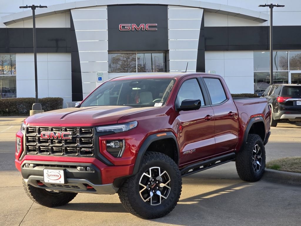 Volcanic Red Tintcoat 2026 GMC Canyon 4D Crew Cab AT4X 4WD 8-Speed Automatic 2.7L I4 Turbocharged DOHC 16V LEV3-SULEV30 310hp Canyon Safety Plus Package (Blind Zone Steering Assist with Trailering, Rear Cross Traffic Braking, and Ultrasonic Rear Park Assist), Preferred Equipment Group 4TX (120-Volt Bed Mounted Power Outlet, 1st and 2nd Rows All-Weather Floor Liners, 2 Rear USB Ports in Center Console (Charge-Only), 6-Way Power Passenger Seat Adjuster, 8-Way Power Driver Seat Adjuster, Adaptive Cruise Control, AT4X, Automatic Emergency Braking, Black Finish Sport Upper Bodyside Moldings, Black Off-Road Rocker Protection, Canyon Pro Safety, Driver and Front Passenger Illuminated Visors, Driver and Front Passenger Ventilated Seats, Driver Memory, Driver Seatback Map Pocket, Driver-Selectable Full-Locking Front Differential, Driver-Selectable Full-Locking Rear Differential, Dual-Zone Automatic Climate Control Air Conditioning, EZ-Lift and Lower Tailgate, Following Distance Indicator, Forward Collision Alert, Front LED Fog Lamps, Front Pedestrian and Bicyclist Braking, Front Side Laminated Solar Glazing Glass, HD Surround Vision, Heated Driver and Front Passenger Seats, Heated Steering Wheel, Inside Rear-View Auto-Dimming Mirror, IntelliBeam Automatic High Beam on/Off, Interior Overhead Courtesy Light with Dual Reading Lamp, Lane Keep Assist with Lane Departure Warning, Multicolor 6.3 Diagonal Head-Up Display, MultiStow Tailgate Storage Compartment, Off-Road Suspension, Power Driver Lumbar Control Seat Adjuster, Power Passenger Lumbar Control Seat Adjuster, Premium 7-Speaker Bose Sound System, Rear Center Fold-Down Armrest with 2 Cupholders, Rear of Console 120-Volt Power Outlet, Rear Pedestrian Alert, Red Seat Belt Color, Remote Vehicle Starter System, Safety Alert Seat, Spray-on Bedliner with GMC Logo, Tailgate Keyed Cylinder Lock, Til and Telescopic Manual Steering Column, Trailering App System, Underbody Cameras, Wheels: 17 x 8 Black High Gloss Machined Finish, and Wireless Phone Charging), Trailering Package (Integrated Trailer Brake Controller), 4WD, 2 1st Row USB Charge/Data Ports, 3.42 Rear Axle Ratio, 4-Wheel Disc Brakes, 7 Speakers, ABS brakes, Air Conditioning, Alloy wheels, AM/FM radio: SiriusXM with 360L, Apple CarPlay/Android Auto, Auto High-beam Headlights, Auto-dimming Rear-View mirror, Automatic Stop/Start, Automatic temperature control, Brake assist, Bumpers: body-color, Compass, Delay-off headlights, Driver door bin, Driver Mode Selector, Driver vanity mirror, Dual front impact airbags, Dual front side impact airbags, Electronic Stability Control, Emergency communication system: OnStar, Front anti-roll bar, Front Bucket Seats, Front Center Armrest, Front dual zone A/C, Front fog lights, Front License Plate Kit, Front Passenger Seatback Map Pocket, Front reading lights, Front wheel independent suspension, Heads-Up Display, Heated door mirrors, Heated front seats, Heated steering wheel, Illuminated entry, Low tire pressure warning, Memory seat, Navigation System, Occupant sensing airbag, Outside temperature display, Overhead airbag, Overhead console, Panic alarm, Passenger door bin, Passenger vanity mirror, Perforated Leather-Appointed Seat Trim, Power door mirrors, Power driver seat, Power moonroof, Power passenger seat, Power steering, Power windows, Radio data system, Radio: 11.3 Diagonal Premium GMC Infotainment System, Rear reading lights, Rear seat center armrest, Rear step bumper, Rear window defroster, Remote keyless entry, Security system, SiriusXM with 360L, Speed control, Speed-sensing steering, Split folding rear seat, Steering wheel mounted audio controls, Stop/Start System Disable Button Engine Control, Tachometer, Telescoping steering wheel, Tilt steering wheel, Traction control, Trip computer, Variably intermittent wipers, Ventilated front seats, and Wireless Apple CarPlay/Wireless Android Auto.