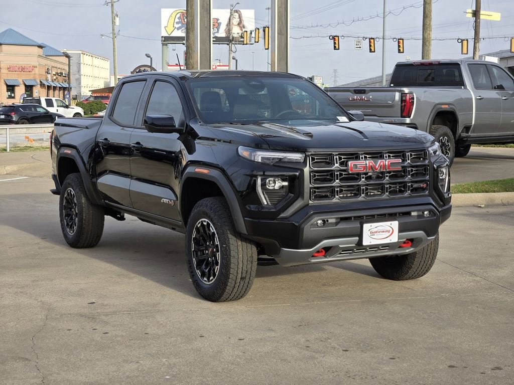 Onyx Black 2026 GMC Canyon 4D Crew Cab AT4 4WD 8-Speed Automatic 2.7L I4 Turbocharged DOHC 16V LEV3-SULEV30 310hp AT4 Premium Package (6-Way Power Passenger Seat Adjuster, Driver and Front Passenger Ventilated Seats, Driver Memory, Driver Seatback Map Pocket, Heated Steering Wheel, Perforated Leather-Appointed Seat Trim, Power Passenger Lumbar Control Seat Adjuster, Rear Center Fold-Down Armrest with 2 Cupholders, and Wireless Phone Charging), Canyon Safety Plus Package (Blind Zone Steering Assist with Trailering, Rear Cross Traffic Braking, and Ultrasonic Rear Park Assist), Preferred Equipment Group 4SG (120-Volt Bed Mounted Power Outlet, 2 Rear USB Ports in Center Console (Charge-Only), 8-Way Power Driver Seat Adjuster, Automatic Emergency Braking, Canyon Pro Safety, Driver and Front Passenger Illuminated Visors, Dual-Zone Automatic Climate Control Air Conditioning, EZ-Lift and Lower Tailgate, Following Distance Indicator, Forward Collision Alert, Front LED Fog Lamps, Front Pedestrian and Bicyclist Braking, Heated Driver and Front Passenger Seats, Inside Rear-View Auto-Dimming Mirror, IntelliBeam Automatic High Beam on/Off, Interior Overhead Courtesy Light with Dual Reading Lamp, Lane Keep Assist with Lane Departure Warning, MultiStow Tailgate Storage Compartment, Power Driver Lumbar Control Seat Adjuster, Rear of Console 120-Volt Power Outlet, Remote Vehicle Starter System, Tailgate Keyed Cylinder Lock, and Til and Telescopic Manual Steering Column), Technology Plus Package (Adaptive Cruise Control, HD Surround Vision, Laminated Windshield Acoustic Glass, Multicolor 6.3 Diagonal Head-Up Display, Power Inner Sliding Glass Sunroof with Manual Shade, Premium 7-Speaker Bose Sound System, and Rear Pedestrian Alert), 4WD, 1st and 2nd Rows All-Weather Floor Liner, 2 1st Row USB Charge/Data Ports, 3.42 Rear Axle Ratio, 4-Way Manual Front Passenger Seat Adjuster, 4-Wheel Disc Brakes, 6 Speakers, 6-Speaker Audio System Feature, ABS brakes, Air Conditioning, Alloy wheels, AM/FM radio: SiriusXM with 360L, Apple CarPlay/Android Auto, Auto High-beam Headlights, Auto-dimming Rear-View mirror, Automatic Stop/Start, Automatic temperature control, Brake assist, Bumpers: body-color, Cloth/CoreTec Seat Trim, Compass, Delay-off headlights, Driver door bin, Driver Mode Selector, Driver vanity mirror, Dual front impact airbags, Dual front side impact airbags, Electronic Stability Control, Emergency communication system: OnStar, Front anti-roll bar, Front Bucket Seats, Front Center Armrest, Front dual zone A/C, Front fog lights, Front License Plate Kit, Front Passenger Seatback Map Pocket, Front reading lights, Front wheel independent suspension, Heated door mirrors, Heated front seats, Illuminated entry, Low tire pressure warning, Navigation System, Occupant sensing airbag, Off-Road Suspension, Outside temperature display, Overhead airbag, Overhead console, Panic alarm, Passenger door bin, Passenger vanity mirror, Power door mirrors, Power driver seat, Power steering, Power windows, Radio data system, Radio: 11.3 Diagonal Premium GMC Infotainment System, Rear reading lights, Rear step bumper, Rear window defroster, Remote keyless entry, Security system, SiriusXM with 360L, Speed control, Speed-sensing steering, Split folding rear seat, Spray-on Bedliner with GMC Logo, Steering wheel mounted audio controls, Stop/Start System Disable Button Engine Control, Tachometer, Telescoping steering wheel, Tilt steering wheel, Traction control, Trip computer, Variably intermittent wipers, Wheels: 18 x 8.5 Gloss Black Aluminum, and Wireless Apple CarPlay/Wireless Android Auto.