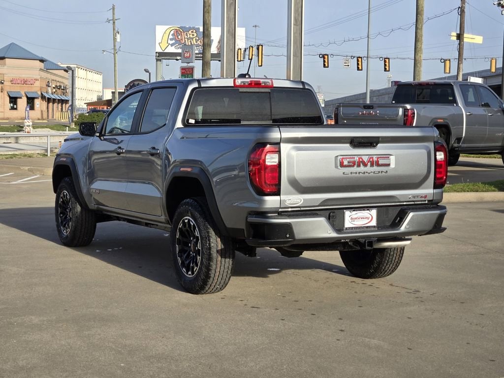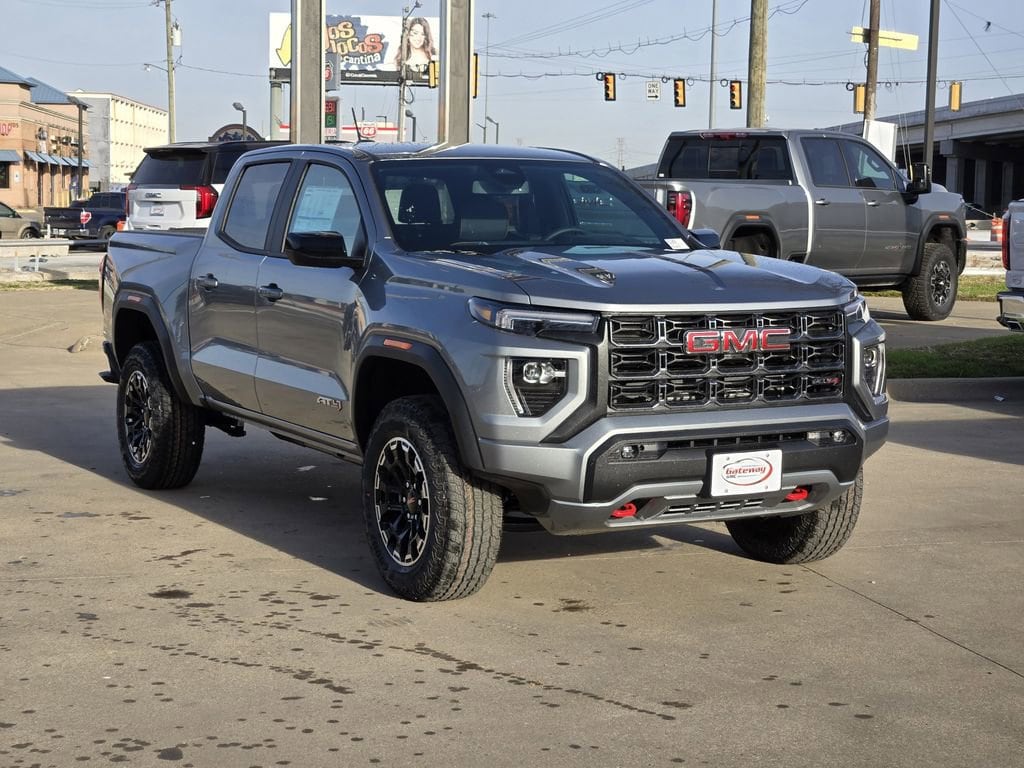 Sterling Metallic 2026 GMC Canyon 4D Crew Cab AT4 4WD 8-Speed Automatic 2.7L I4 Turbocharged DOHC 16V LEV3-SULEV30 310hp Canyon Safety Plus Package (Blind Zone Steering Assist with Trailering, Rear Cross Traffic Braking, and Ultrasonic Rear Park Assist), Preferred Equipment Group 4SG (120-Volt Bed Mounted Power Outlet, 2 Rear USB Ports in Center Console (Charge-Only), 8-Way Power Driver Seat Adjuster, Automatic Emergency Braking, Canyon Pro Safety, Driver and Front Passenger Illuminated Visors, Dual-Zone Automatic Climate Control Air Conditioning, EZ-Lift and Lower Tailgate, Following Distance Indicator, Forward Collision Alert, Front LED Fog Lamps, Front Pedestrian and Bicyclist Braking, Heated Driver and Front Passenger Seats, Inside Rear-View Auto-Dimming Mirror, IntelliBeam Automatic High Beam on/Off, Interior Overhead Courtesy Light with Dual Reading Lamp, Lane Keep Assist with Lane Departure Warning, MultiStow Tailgate Storage Compartment, Power Driver Lumbar Control Seat Adjuster, Rear of Console 120-Volt Power Outlet, Remote Vehicle Starter System, Tailgate Keyed Cylinder Lock, and Til and Telescopic Manual Steering Column), 4WD, 1st and 2nd Rows All-Weather Floor Liner, 2 1st Row USB Charge/Data Ports, 3.42 Rear Axle Ratio, 4-Way Manual Front Passenger Seat Adjuster, 4-Wheel Disc Brakes, 6 Speakers, 6-Speaker Audio System Feature, ABS brakes, Air Conditioning, Alloy wheels, AM/FM radio: SiriusXM with 360L, Apple CarPlay/Android Auto, Auto High-beam Headlights, Auto-dimming Rear-View mirror, Automatic Stop/Start, Automatic temperature control, Brake assist, Bumpers: body-color, Cloth/CoreTec Seat Trim, Compass, Delay-off headlights, Driver door bin, Driver Mode Selector, Driver vanity mirror, Dual front impact airbags, Dual front side impact airbags, Electronic Stability Control, Emergency communication system: OnStar, Front anti-roll bar, Front Bucket Seats, Front Center Armrest, Front dual zone A/C, Front fog lights, Front License Plate Kit, Front Passenger Seatback Map Pocket, Front reading lights, Front wheel independent suspension, Heated door mirrors, Heated front seats, Illuminated entry, Low tire pressure warning, Navigation System, Occupant sensing airbag, Off-Road Suspension, Outside temperature display, Overhead airbag, Overhead console, Panic alarm, Passenger door bin, Passenger vanity mirror, Power door mirrors, Power driver seat, Power steering, Power windows, Radio data system, Radio: 11.3 Diagonal Premium GMC Infotainment System, Rear reading lights, Rear step bumper, Rear window defroster, Remote keyless entry, Security system, SiriusXM with 360L, Speed control, Speed-sensing steering, Split folding rear seat, Spray-on Bedliner with GMC Logo, Steering wheel mounted audio controls, Stop/Start System Disable Button Engine Control, Tachometer, Telescoping steering wheel, Tilt steering wheel, Traction control, Trip computer, Variably intermittent wipers, Wheels: 18 x 8.5 Gloss Black Aluminum, and Wireless Apple CarPlay/Wireless Android Auto.