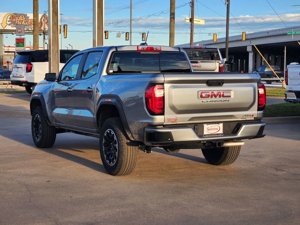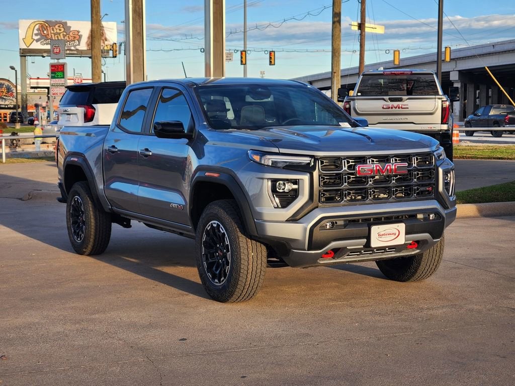 Sterling Metallic 2026 GMC Canyon 4D Crew Cab AT4 4WD 8-Speed Automatic 2.7L I4 Turbocharged DOHC 16V LEV3-SULEV30 310hp Canyon Safety Plus Package (Blind Zone Steering Assist with Trailering, Rear Cross Traffic Braking, and Ultrasonic Rear Park Assist), Preferred Equipment Group 4SG (120-Volt Bed Mounted Power Outlet, 2 Rear USB Ports in Center Console (Charge-Only), 8-Way Power Driver Seat Adjuster, Automatic Emergency Braking, Canyon Pro Safety, Driver and Front Passenger Illuminated Visors, Dual-Zone Automatic Climate Control Air Conditioning, EZ-Lift and Lower Tailgate, Following Distance Indicator, Forward Collision Alert, Front LED Fog Lamps, Front Pedestrian and Bicyclist Braking, Heated Driver and Front Passenger Seats, Inside Rear-View Auto-Dimming Mirror, IntelliBeam Automatic High Beam on/Off, Interior Overhead Courtesy Light with Dual Reading Lamp, Lane Keep Assist with Lane Departure Warning, MultiStow Tailgate Storage Compartment, Power Driver Lumbar Control Seat Adjuster, Rear of Console 120-Volt Power Outlet, Remote Vehicle Starter System, Tailgate Keyed Cylinder Lock, and Til and Telescopic Manual Steering Column), 4WD, 1st and 2nd Rows All-Weather Floor Liner, 2 1st Row USB Charge/Data Ports, 3.42 Rear Axle Ratio, 4-Way Manual Front Passenger Seat Adjuster, 4-Wheel Disc Brakes, 6 Speakers, 6-Speaker Audio System Feature, ABS brakes, Air Conditioning, Alloy wheels, AM/FM radio: SiriusXM with 360L, Apple CarPlay/Android Auto, Auto High-beam Headlights, Auto-dimming Rear-View mirror, Automatic Stop/Start, Automatic temperature control, Brake assist, Bumpers: body-color, Cloth/CoreTec Seat Trim, Compass, Delay-off headlights, Driver door bin, Driver Mode Selector, Driver vanity mirror, Dual front impact airbags, Dual front side impact airbags, Electronic Stability Control, Emergency communication system: OnStar, Front anti-roll bar, Front Bucket Seats, Front Center Armrest, Front dual zone A/C, Front fog lights, Front License Plate Kit, Front Passenger Seatback Map Pocket, Front reading lights, Front wheel independent suspension, Heated door mirrors, Heated front seats, Illuminated entry, Low tire pressure warning, Navigation System, Occupant sensing airbag, Off-Road Suspension, Outside temperature display, Overhead airbag, Overhead console, Panic alarm, Passenger door bin, Passenger vanity mirror, Power door mirrors, Power driver seat, Power steering, Power windows, Radio data system, Radio: 11.3 Diagonal Premium GMC Infotainment System, Rear reading lights, Rear step bumper, Rear window defroster, Remote keyless entry, Security system, SiriusXM with 360L, Speed control, Speed-sensing steering, Split folding rear seat, Spray-on Bedliner with GMC Logo, Steering wheel mounted audio controls, Stop/Start System Disable Button Engine Control, Tachometer, Telescoping steering wheel, Tilt steering wheel, Traction control, Trip computer, Variably intermittent wipers, Wheels: 18 x 8.5 Gloss Black Aluminum, and Wireless Apple CarPlay/Wireless Android Auto.