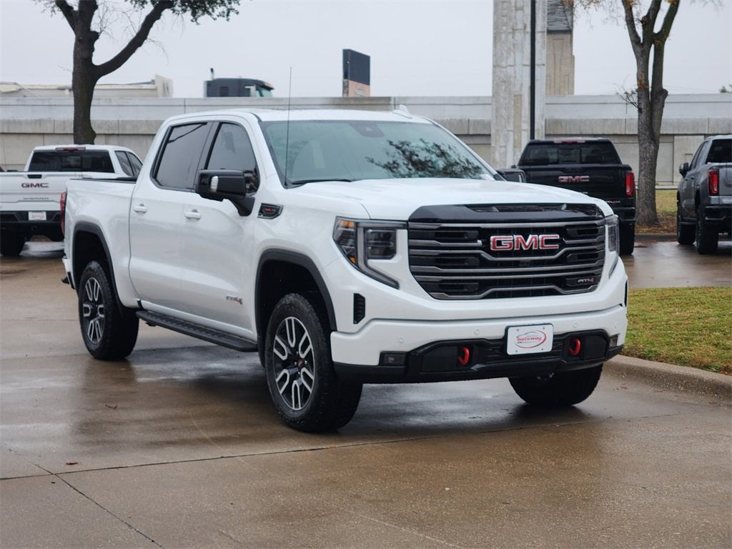 Summit White 2026 GMC Sierra 1500 4D Crew Cab AT4 4WD 10-Speed Automatic EcoTec3 6.2L V8 AT4 Preferred Package (Power Sliding Rear Window w/Rear Defogger and Universal Home Remote), AT4 Premium Package (Off-Road High Clearance Step (LPO)), Technology Package (Bed View Camera, Multicolor 15 Diagonal Head-Up Display, and Rear Camera Mirror), Trailering Package (Hitch Guidance), 10-Speed Automatic, 4WD, Jet Black With Kalahari Accents Leather, 10-Way Power Driver Seat Adjuster w/Lumbar, 10-Way Power Passenger Seat Adjuster w/Lumbar, 120-Volt Bed Mounted Power Outlet, 120-Volt Interior Power Outlet, 2 Charge/Data USB Ports Inside Center Console, 2 Type-C Charge-Only Rear USB Ports, 2 USB Ports, 220 Amp Alternator, 3.23 Rear Axle Ratio, 4-Wheel Disc Brakes, 7 Speakers, ABS brakes, Air Conditioning, Alloy wheels, AM/FM radio: SiriusXM with 360L, Apple CarPlay/Android Auto, Auto High-beam Headlights, Auto-dimming door mirrors, Auto-dimming Rear-View mirror, Auto-Locking Rear Differential, Automatic Emergency Braking, Automatic temperature control, Black Chrome Grille Insert Bars, Block heater, Brake assist, Buckle to Drive, Bumpers: body-color, Color-Keyed Carpeting Floor Covering, Compass, Deep-Tinted Glass, Delay-off headlights, Driver door bin, Driver Memory, Driver vanity mirror, Dual Active Exhaust, Dual front impact airbags, Dual front side impact airbags, Electric Rear-Window Defogger, Electronic Stability Control, Emergency communication system: OnStar, Floor-Mounted Center Console, Following Distance Indicator, Forward Collision Alert, Front anti-roll bar, Front Bucket Seats, Front Center Armrest, Front dual zone A/C, Front fog lights, Front Pedestrian Braking, Front Prem Floor Liners w/Removable Carpet Insert, Front Rain-Sensing Wipers, Front reading lights, Front wheel independent suspension, Fully automatic headlights, HD Surround Vision, Heated 2nd Row Outboard Seats, Heated door mirrors, Heated Driver & Front Outboard Passenger Seating, Heated front seats, Heated rear seats, Heated steering wheel, Heavy-Duty Air Filter, Hill Descent Control, Hitch View, Illuminated entry, In-Vehicle Trailering System App, Integrated Trailer Brake Controller, IntelliBeam Automatic High Beam On/Off, Keyless Open & Start, Lane Keep Assist w/Lane Departure Warning, LED Cargo Area Lighting, Low tire pressure warning, Memory seat, Navigation System, Occupant sensing airbag, Off-Road Suspension, OnStar Services Capable, Outside temperature display, Overhead airbag, Overhead console, Panic alarm, Passenger door bin, Passenger vanity mirror, Perforated Front Leather Seat Trim, Perimeter Lighting, Power Door Locks, Power door mirrors, Power driver seat, Power Front Passenger Windows w/Express Up/Down, Power Front Windows w/Driver Express Up/Down, Power passenger seat, Power Rake & Telescoping Steering Column, Power Rear Windows w/Express Down, Power steering, Power Sunroof, Power windows, Premium Bose 7-Speaker Sound System, Push Button Start, Radio data system, Radio: Premium GMC Infotainment Audio System, Rain sensing wipers, Rear Cross Traffic Braking, Rear Pedestrian Detection, Rear Prem Floor Liners w/Removable Carpet Insert, Rear reading lights, Rear seat center armrest, Rear step bumper, Rear Wheelhouse Liners, Rear window defroster, Red Recovery Hooks, Remote keyless entry, Remote Vehicle Starter System, Safety Alert Seat, Security system, SiriusXM w/360L Trial Subscription, Speed control, Speed-sensing steering, Split folding rear seat, Spray-On Pickup Bedliner w/GMC Logo, Steering Wheel Audio Controls, Steering wheel mounted audio controls, Tachometer, Telescoping steering wheel, Theft Deterrent System (Unauthorized Entry), Tilt steering wheel, Traction control, Trailer Camera Provisions, Trailer Side Blind Zone Alert, Trailer Tire Pressure Monitor System, Trip computer, Ultrasonic Front & Rear Park Assist, Variably intermittent wipers, Ventilated