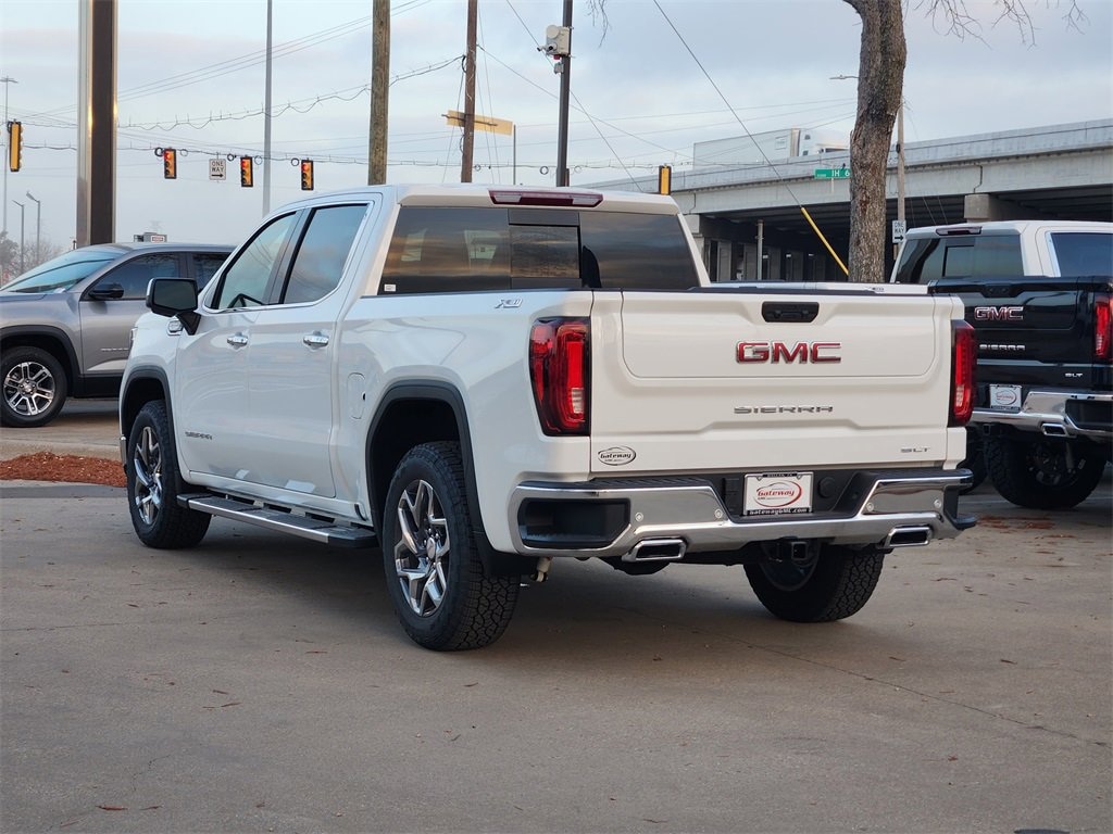 Summit White 2026 GMC Sierra 1500 4D Crew Cab SLT 4WD 10-Speed Automatic 3.0L I6 High Capacity Suspension Package, ProGrade Trailering System (Hitch View), Sierra Safety Plus Package (HD Surround Vision, Rear Cross Traffic Braking, Rear Pedestrian Detection, Safety Alert Seat, Trailer Camera Provisions, and Trailer Side Blind Zone Alert), SLT Convenience Package (2 Charge/Data USB Ports Inside Center Console, Electronic Precision Shift, Floor-Mounted Center Console, Front Bucket Seats, Premium Bose 7-Speaker Sound System, and Wireless Charging), SLT Preferred Package (Adaptive Cruise Control, Heated 2nd Row Outboard Seats, and Universal Home Remote), Standard Suspension Package, Texas Edition SLT Premium Plus Package (20 Polished Aluminum Wheels and Texas Edition Badging), Trailering Package (Hitch Guidance), X31 Off-Road Package (Dual Exhaust System, Heavy-Duty Air Filter, Hill Descent Control, Off-Road Suspension, and X31 Hard Badge), 10-Speed Automatic, 4WD, Black Leather, 10-Way Power Driver Seat Adjuster w/Lumbar, 10-Way Power Passenger Seat Adjuster w/Lumbar, 120-Volt Bed Mounted Power Outlet, 120-Volt Interior Power Outlet, 170 Amp Alternator, 2 Charge/Data USB Ports, 2 Type-C Charge-Only Rear USB Ports, 3.23 Rear Axle Ratio, 4-Wheel Disc Brakes, 6 Speakers, 6-Speaker Audio System Feature, ABS brakes, Air Conditioning, All-Weather Floor Liner (LPO), Alloy wheels, AM/FM radio: SiriusXM with 360L, Apple CarPlay/Android Auto, Auto High-beam Headlights, Auto-dimming door mirrors, Auto-dimming Rear-View mirror, Auto-Locking Rear Differential, Automatic Emergency Braking, Automatic temperature control, Auxiliary External Transmission Oil Cooler, Brake assist, Buckle to Drive, Bumpers: chrome, Chrome Header & Chrome Grille Insert Bars, Chrome Wheel To Wheel Assist Steps, Color-Keyed Carpeting Floor Covering, Compass, Deep-Tinted Glass, Delay-off headlights, Driver door bin, Driver Memory, Driver vanity mirror, Dual front impact airbags, Dual front side impact airbags, Electric Rear-Window Defogger, Electronic Stability Control, Emergency communication system: OnStar, Following Distance Indicator, Forward Collision Alert, Front 40/20/40 Split-Bench Seat, Front anti-roll bar, Front Center Armrest w/Storage, Front dual zone A/C, Front fog lights, Front Frame-Mounted Black Recovery Hooks, Front Pedestrian Braking, Front Rain-Sensing Wipers, Front reading lights, Front wheel independent suspension, Fully automatic headlights, HD Rear Vision Camera, Heated door mirrors, Heated front seats, Heated steering wheel, Illuminated entry, Integrated Trailer Brake Controller, IntelliBeam Automatic High Beam On/Off, Lane Keep Assist w/Lane Departure Warning, LED Cargo Area Lighting, Low tire pressure warning, Manual Tilt-Wheel & Telescoping Steering Column, Memory seat, Navigation System, Occupant sensing airbag, OnStar Services Capable, Outside temperature display, Overhead airbag, Overhead console, Panic alarm, Passenger door bin, Passenger vanity mirror, Perimeter Lighting, Power Door Locks, Power door mirrors, Power driver seat, Power Front Passenger Windows w/Express Up/Down, Power Front Windows w/Driver Express Up/Down, Power passenger seat, Power Rake & Telescoping Steering Column, Power steering, Power windows, Push Button Start, Radio data system, Radio: Premium GMC Infotainment Audio System, Rain sensing wipers, Rear reading lights, Rear seat center armrest, Rear step bumper, Rear Wheelhouse Liners, Rear window defroster, Remote keyless entry, Remote Vehicle Starter System, Security system, Speed control, Speed-sensing steering, Split folding rear seat, Steering Wheel Audio Controls, Steering wheel mounted audio controls, Tachometer, Telescoping steering wheel, Tilt steering wheel, Traction control, Trip computer, Variably intermittent wipers, Ventilated Driver & Front Passenger Seats, Voltmeter, Wheels: 18 x 8.5 6-Spoke Machined Aluminum, Wi-Fi Hotspot Capable, and Wireless Apple Ca