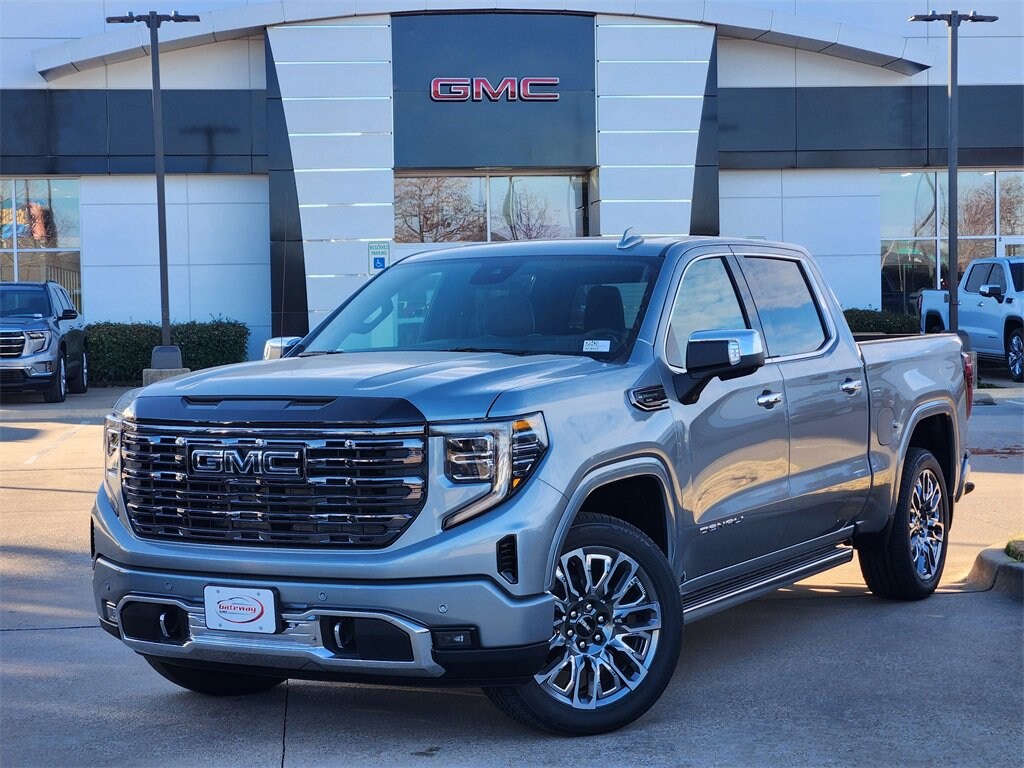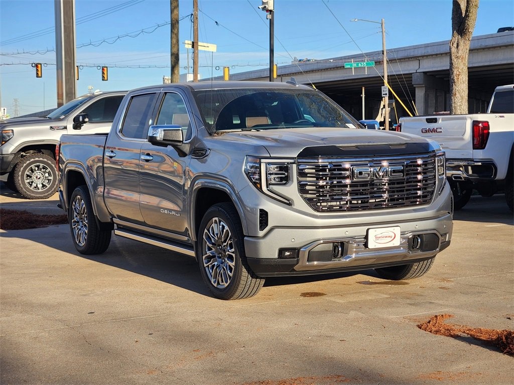 Sterling Metallic 2026 GMC Sierra 1500 4D Crew Cab Denali Ultimate 4WD 10-Speed Automatic EcoTec3 6.2L V8 Preferred Equipment Group 5SB (120-Volt Bed Mounted Power Outlet, 120-Volt Interior Power Outlet, 2 Charge/Data USB Ports Inside Center Console, 2 Type-C Charge-Only Rear USB Ports, 2 USB Ports, Auto-Locking Rear Differential, Bed View Camera, Bose Premium Series w/12-Speaker System, Chrome Recovery Hooks, Color-Keyed Carpeting Floor Covering, Deep-Tinted Glass, Electric Rear-Window Defogger, Floor-Mounted Center Console, Front Rain-Sensing Wipers, HD Surround Vision, Heated 2nd Row Outboard Seats, Heated Driver & Front Outboard Passenger Seating, Heavy-Duty Air Filter, High Gloss Black Header w/Signature Denali Grille, Hill Descent Control, Hitch View, In-Vehicle Trailering System App, Integrated Trailer Brake Controller, Keyless Open & Start, LED Cargo Area Lighting, Multicolor 15 Diagonal Head-Up Display, MultiPro Tailgate Audio System by Kicker (LPO), OnStar Services Capable, Perimeter Lighting, Power Door Locks, Power Front Passenger Windows w/Express Up/Down, Power Front Windows w/Driver Express Up/Down, Power Rake & Telescoping Steering Column, Power Rear Windows w/Express Down, Power Sliding Rear Window w/Rear Defogger, Power Sunroof, Push Button Start, Rear Cross Traffic Braking, Rear Pedestrian Detection, Rear Wheelhouse Liners, Remote Vehicle Starter System, SiriusXM w/360L Trial Subscription, Spray-On Pickup Bedliner w/GMC Logo, Steering Wheel Audio Controls, Theft Deterrent System (Unauthorized Entry), Trailer Camera Provisions, Trailer Side Blind Zone Alert, Trailer Tire Pressure Monitor System, Ultrasonic Front & Rear Park Assist, Universal Home Remote, Ventilated Driver & Front Passenger Seats, Wi-Fi Hotspot Capable, and Wireless Charging), Trailering Package (Hitch Guidance), 10-Speed Automatic, 4WD, Alpine Umber Leather, 12 Speakers, 16-Way Power Driver Seat Adjuster w/Lumbar, 16-Way Power Passenger Seat Adjuster w/Lumbar, 170 Amp Alternator, 3.23 Rear Axle Ratio, 4-Wheel Disc Brakes, ABS brakes, Adaptive suspension, Air Conditioning, Alloy wheels, AM/FM radio: SiriusXM with 360L, Apple CarPlay/Android Auto, Auto High-beam Headlights, Auto-dimming door mirrors, Auto-dimming Rear-View mirror, Automatic temperature control, Body Color Wheel Arch Moldings (LPO), Brake assist, Buckle to Drive, Bumpers: body-color, Compass, Delay-off headlights, Denali Premium Suspension w/Adaptive Ride Control, Driver door bin, Driver Memory, Driver vanity mirror, Dual Active Exhaust, Dual front impact airbags, Dual front side impact airbags, Electronic Stability Control, Emergency communication system: OnStar, Enhanced Automatic Emergency Braking, Following Distance Indicator, Forward Collision Alert, Front anti-roll bar, Front Bucket Seats, Front Center Armrest, Front dual zone A/C, Front fog lights, Front License Plate Kit, Front Pedestrian Braking, Front reading lights, Front wheel independent suspension, Full Grain Leather Seat Trim, Fully automatic headlights, Garage door transmitter, Genuine wood console insert, Genuine wood dashboard insert, Genuine wood door panel insert, Heads-Up Display, Heated door mirrors, Heated front seats, Heated rear seats, Heated steering wheel, Illuminated entry, IntelliBeam Automatic High Beam On/Off, Low tire pressure warning, Memory seat, Navigation System, Occupant sensing airbag, Outside temperature display, Overhead airbag, Overhead console, Panic alarm, Passenger door bin, Passenger vanity mirror, Power door mirrors, Power driver seat, Power moonroof, Power passenger seat, Power steering, Power windows, Radio data system, Radio: Premium GMC Infotainment Audio System, Rain sensing wipers, Rear reading lights, Rear seat center armrest, Rear step bumper, Rear window defroster, Remote keyless entry, Safety Alert Seat, Security system, Speed control, Speed-sensing steering, Split folding rear seat,