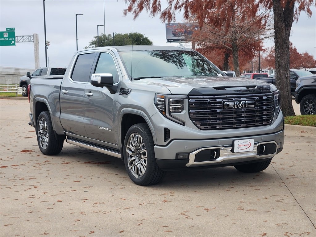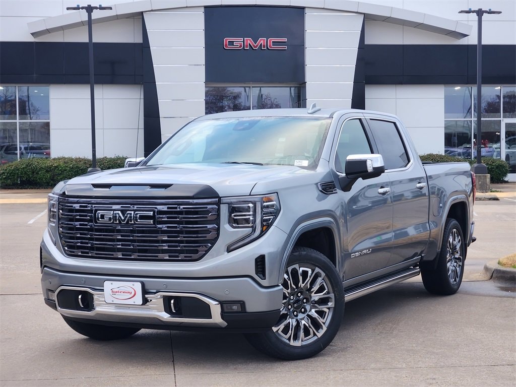 Sterling Metallic 2026 GMC Sierra 1500 4D Crew Cab Denali Ultimate 4WD 10-Speed Automatic EcoTec3 6.2L V8 Preferred Equipment Group 5SB (120-Volt Bed Mounted Power Outlet, 120-Volt Interior Power Outlet, 2 Charge/Data USB Ports Inside Center Console, 2 Type-C Charge-Only Rear USB Ports, 2 USB Ports, Auto-Locking Rear Differential, Bed View Camera, Bose Premium Series w/12-Speaker System, Chrome Recovery Hooks, Color-Keyed Carpeting Floor Covering, Deep-Tinted Glass, Electric Rear-Window Defogger, Floor-Mounted Center Console, Front Rain-Sensing Wipers, HD Surround Vision, Heated 2nd Row Outboard Seats, Heated Driver & Front Outboard Passenger Seating, Heavy-Duty Air Filter, High Gloss Black Header w/Signature Denali Grille, Hill Descent Control, Hitch View, In-Vehicle Trailering System App, Integrated Trailer Brake Controller, Keyless Open & Start, LED Cargo Area Lighting, Multicolor 15 Diagonal Head-Up Display, MultiPro Tailgate Audio System by Kicker (LPO), OnStar Services Capable, Perimeter Lighting, Power Door Locks, Power Front Passenger Windows w/Express Up/Down, Power Front Windows w/Driver Express Up/Down, Power Rake & Telescoping Steering Column, Power Rear Windows w/Express Down, Power Sliding Rear Window w/Rear Defogger, Power Sunroof, Push Button Start, Rear Cross Traffic Braking, Rear Pedestrian Detection, Rear Wheelhouse Liners, Remote Vehicle Starter System, SiriusXM w/360L Trial Subscription, Spray-On Pickup Bedliner w/GMC Logo, Steering Wheel Audio Controls, Theft Deterrent System (Unauthorized Entry), Trailer Camera Provisions, Trailer Side Blind Zone Alert, Trailer Tire Pressure Monitor System, Ultrasonic Front & Rear Park Assist, Universal Home Remote, Ventilated Driver & Front Passenger Seats, Wi-Fi Hotspot Capable, and Wireless Charging), Trailering Package (Hitch Guidance), 10-Speed Automatic, 4WD, Alpine Umber Leather, 12 Speakers, 16-Way Power Driver Seat Adjuster w/Lumbar, 16-Way Power Passenger Seat Adjuster w/Lumbar, 170 Amp Alternator, 3.23 Rear Axle Ratio, 4-Wheel Disc Brakes, ABS brakes, Adaptive suspension, Air Conditioning, Alloy wheels, AM/FM radio: SiriusXM with 360L, Apple CarPlay/Android Auto, Auto High-beam Headlights, Auto-dimming door mirrors, Auto-dimming Rear-View mirror, Automatic temperature control, Body Color Wheel Arch Moldings (LPO), Brake assist, Buckle to Drive, Bumpers: body-color, Compass, Delay-off headlights, Denali Premium Suspension w/Adaptive Ride Control, Driver door bin, Driver Memory, Driver vanity mirror, Dual Active Exhaust, Dual front impact airbags, Dual front side impact airbags, Electronic Stability Control, Emergency communication system: OnStar, Enhanced Automatic Emergency Braking, Following Distance Indicator, Forward Collision Alert, Front anti-roll bar, Front Bucket Seats, Front Center Armrest, Front dual zone A/C, Front fog lights, Front License Plate Kit, Front Pedestrian Braking, Front reading lights, Front wheel independent suspension, Full Grain Leather Seat Trim, Fully automatic headlights, Garage door transmitter, Genuine wood console insert, Genuine wood dashboard insert, Genuine wood door panel insert, Heads-Up Display, Heated door mirrors, Heated front seats, Heated rear seats, Heated steering wheel, Illuminated entry, IntelliBeam Automatic High Beam On/Off, Low tire pressure warning, Memory seat, Navigation System, Occupant sensing airbag, Outside temperature display, Overhead airbag, Overhead console, Panic alarm, Passenger door bin, Passenger vanity mirror, Power door mirrors, Power driver seat, Power moonroof, Power passenger seat, Power steering, Power windows, Radio data system, Radio: Premium GMC Infotainment Audio System, Rain sensing wipers, Rear reading lights, Rear seat center armrest, Rear step bumper, Rear window defroster, Remote keyless entry, Safety Alert Seat, Security system, Speed control, Speed-sensing steering, Split folding rear seat,
