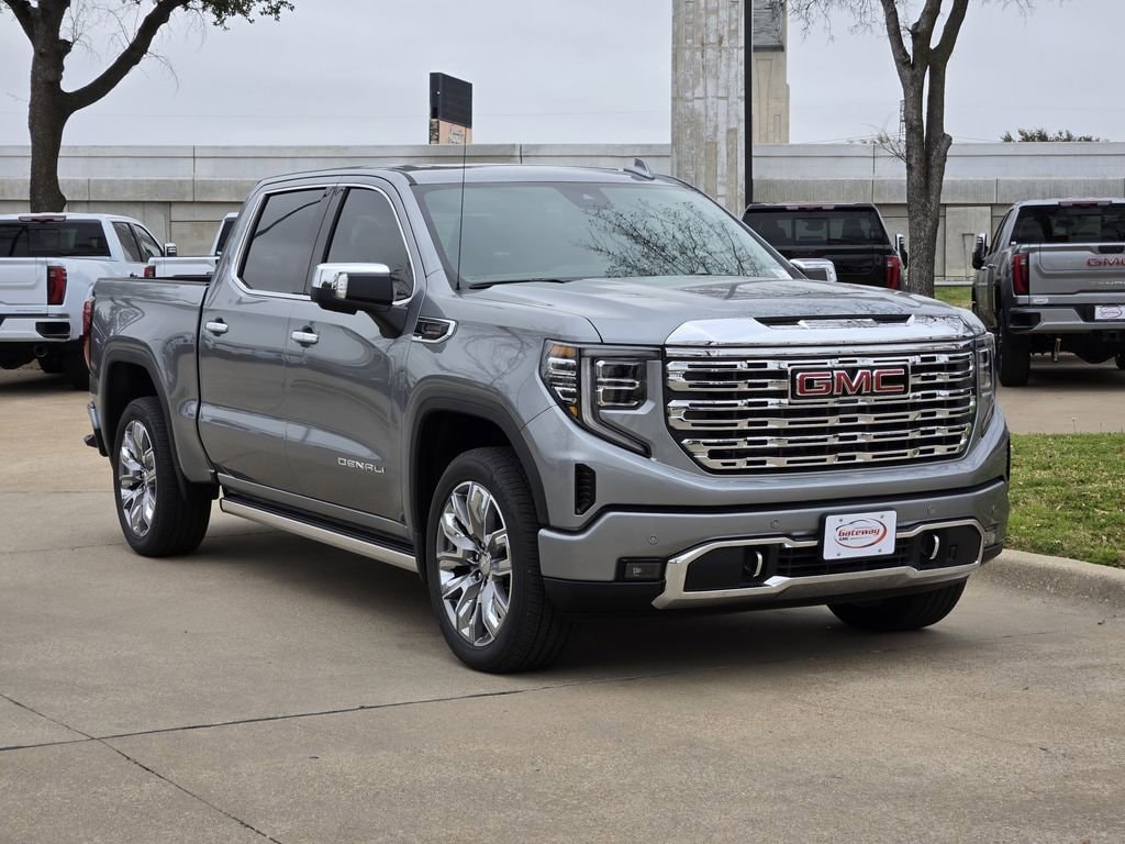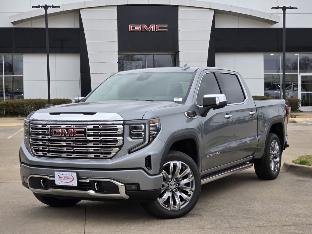 Sterling Metallic 2026 GMC Sierra 1500 4D Crew Cab Denali 4WD 10-Speed Automatic 3.0L I6 Denali Reserve Package (Wheel Locks (set of 4) and Wheels: 22 x 9 Painted Aluminum), Trailering Package (Hitch Guidance), 10-Speed Automatic, 4WD, Jet Black Leather, 12-Way Power Driver Seat Adjuster with Lumbar, 12-Way Power Passenger Seat Adjuster with Lumbar, 120-Volt Bed Mounted Power Outlet, 120-Volt Interior Power Outlet, 170 Amp Alternator, 2 Charge/Data USB Ports Inside Center Console, 2 Type-C Charge-Only Rear USB Ports, 2 USB Ports, 3.23 Rear Axle Ratio, 4-Wheel Disc Brakes, 7 Speakers, ABS brakes, Adaptive suspension, Air Conditioning, Alloy wheels, AM/FM radio: SiriusXM with 360L, Apple CarPlay/Android Auto, Auto High-beam Headlights, Auto-dimming door mirrors, Auto-dimming Rear-View mirror, Auto-Locking Rear Differential, Automatic temperature control, Auxiliary External Transmission Oil Cooler, Bed View Camera, Brake assist, Buckle to Drive, Bumpers: body-color, Chrome Header with Signature Denali Chrome Grille, Chrome Recovery Hooks, Chrome Wheel to Wheel Assist Steps, Color-Keyed Carpeting Floor Covering, Compass, Deep-Tinted Glass, Delay-off headlights, Denali Premium Suspension with Adaptive Ride Control, Driver door bin, Driver Memory, Driver vanity mirror, Dual front impact airbags, Dual front side impact airbags, Electric Rear-Window Defogger, Electronic Stability Control, Emergency communication system: OnStar, Enhanced Automatic Emergency Braking, Floor-Mounted Center Console, Following Distance Indicator, Forge Perforated Leather Seat Trim, Forward Collision Alert, Front anti-roll bar, Front Bucket Seats, Front Center Armrest, Front dual zone A/C, Front fog lights, Front Pedestrian Braking, Front Rain-Sensing Wipers, Front reading lights, Front wheel independent suspension, Fully automatic headlights, Garage door transmitter, Genuine wood console insert, Genuine wood dashboard insert, Genuine wood door panel insert, HD Surround Vision, Heated 2nd Row Outboard Seats, Heated door mirrors, Heated Driver and Front Outboard Passenger Seating, Heated front seats, Heated rear seats, Heated steering wheel, Heavy-Duty Air Filter, Hill Descent Control, Hitch View, Illuminated entry, in-Vehicle Trailering System App, Integrated Trailer Brake Controller, IntelliBeam Automatic High Beam on/Off, Keyless Open and Start, Lane Keep Assist with Lane Departure Warning, LED Cargo Area Lighting, Low tire pressure warning, Memory seat, Navigation System, Occupant sensing airbag, OnStar Services Capable, Outside temperature display, Overhead airbag, Overhead console, Panic alarm, Passenger door bin, Passenger vanity mirror, Perimeter Lighting, Power Door Locks, Power door mirrors, Power driver seat, Power Front Passenger Windows with Express Up/Down, Power Front Windows with Driver Express Up/Down, Power passenger seat, Power Rake and Telescoping Steering Column, Power Rear Windows with Express Down, Power Sliding Rear Window with Rear Defogger, Power steering, Power windows, Premium Bose 7-Speaker Sound System, Push Button Start, Radio data system, Radio: Premium GMC Infotainment Audio System, Rain sensing wipers, Rear Cross Traffic Braking, Rear Pedestrian Detection, Rear reading lights, Rear seat center armrest, Rear step bumper, Rear Wheelhouse Liners, Rear window defroster, Remote keyless entry, Remote Vehicle Starter System, Safety Alert Seat, Security system, SiriusXM with 360L Trial Subscription, Speed control, Speed-sensing steering, Split folding rear seat, Spray-on Pickup Bedliner with GMC Logo, Steering Wheel Audio Controls, Steering wheel mounted audio controls, Tachometer, Telescoping steering wheel, Theft Deterrent System (unauthorized Entry), Tilt steering wheel, Traction control, Trailer Camera Provisions, Trailer Side Blind Zone Alert, Trip computer, Ultrasonic Front and Rear Park Assist, Universal Home Remote, Variably intermittent wipers, Ventilated Driver and Front Pas