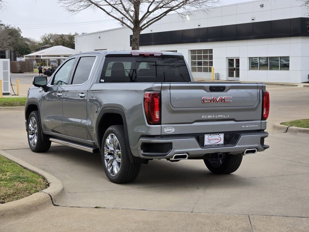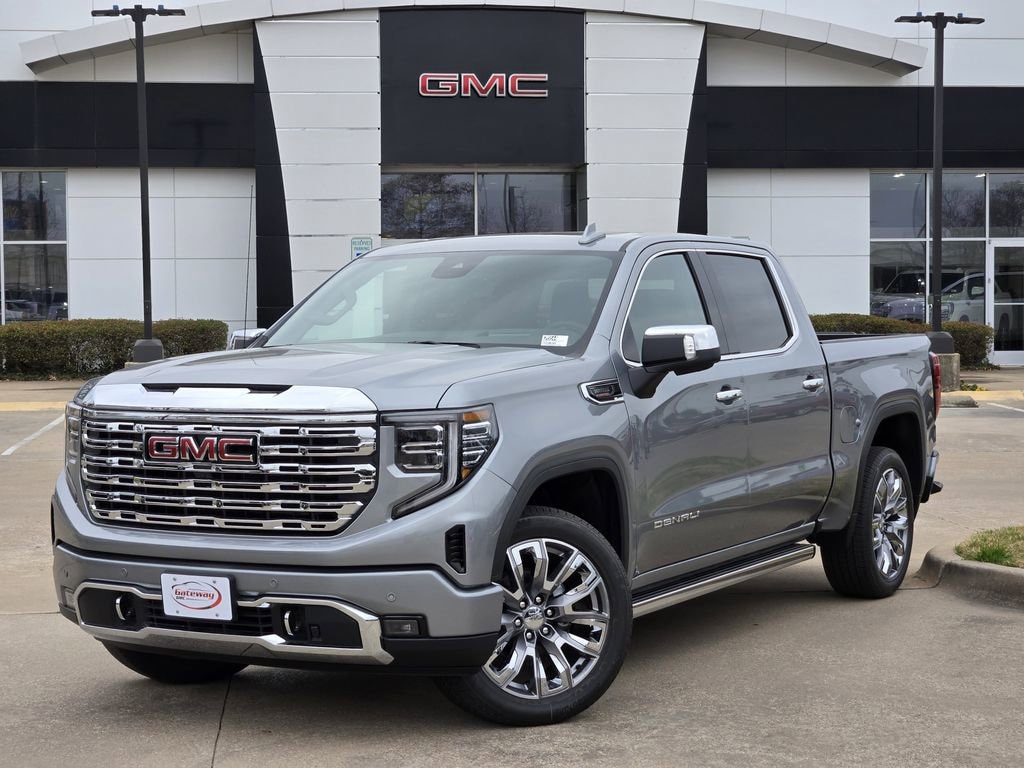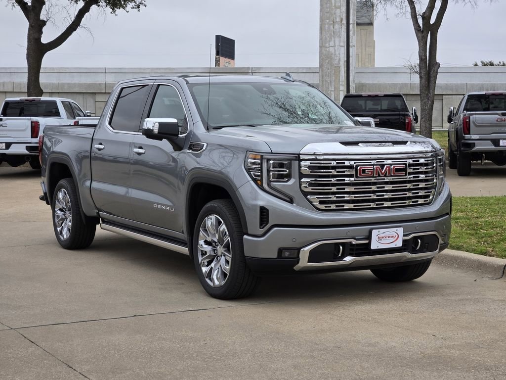 Sterling Metallic 2026 GMC Sierra 1500 4D Crew Cab Denali 4WD 10-Speed Automatic 3.0L I6 Denali Reserve Package (Wheel Locks (set of 4) and Wheels: 22 x 9 Painted Aluminum), Trailering Package (Hitch Guidance), 10-Speed Automatic, 4WD, Jet Black Leather, 12-Way Power Driver Seat Adjuster with Lumbar, 12-Way Power Passenger Seat Adjuster with Lumbar, 120-Volt Bed Mounted Power Outlet, 120-Volt Interior Power Outlet, 170 Amp Alternator, 2 Charge/Data USB Ports Inside Center Console, 2 Type-C Charge-Only Rear USB Ports, 2 USB Ports, 3.23 Rear Axle Ratio, 4-Wheel Disc Brakes, 7 Speakers, ABS brakes, Adaptive suspension, Air Conditioning, Alloy wheels, AM/FM radio: SiriusXM with 360L, Apple CarPlay/Android Auto, Auto High-beam Headlights, Auto-dimming door mirrors, Auto-dimming Rear-View mirror, Auto-Locking Rear Differential, Automatic temperature control, Auxiliary External Transmission Oil Cooler, Bed View Camera, Brake assist, Buckle to Drive, Bumpers: body-color, Chrome Header with Signature Denali Chrome Grille, Chrome Recovery Hooks, Chrome Wheel to Wheel Assist Steps, Color-Keyed Carpeting Floor Covering, Compass, Deep-Tinted Glass, Delay-off headlights, Denali Premium Suspension with Adaptive Ride Control, Driver door bin, Driver Memory, Driver vanity mirror, Dual front impact airbags, Dual front side impact airbags, Electric Rear-Window Defogger, Electronic Stability Control, Emergency communication system: OnStar, Enhanced Automatic Emergency Braking, Floor-Mounted Center Console, Following Distance Indicator, Forge Perforated Leather Seat Trim, Forward Collision Alert, Front anti-roll bar, Front Bucket Seats, Front Center Armrest, Front dual zone A/C, Front fog lights, Front Pedestrian Braking, Front Rain-Sensing Wipers, Front reading lights, Front wheel independent suspension, Fully automatic headlights, Garage door transmitter, Genuine wood console insert, Genuine wood dashboard insert, Genuine wood door panel insert, HD Surround Vision, Heated 2nd Row Outboard Seats, Heated door mirrors, Heated Driver and Front Outboard Passenger Seating, Heated front seats, Heated rear seats, Heated steering wheel, Heavy-Duty Air Filter, Hill Descent Control, Hitch View, Illuminated entry, in-Vehicle Trailering System App, Integrated Trailer Brake Controller, IntelliBeam Automatic High Beam on/Off, Keyless Open and Start, Lane Keep Assist with Lane Departure Warning, LED Cargo Area Lighting, Low tire pressure warning, Memory seat, Navigation System, Occupant sensing airbag, OnStar Services Capable, Outside temperature display, Overhead airbag, Overhead console, Panic alarm, Passenger door bin, Passenger vanity mirror, Perimeter Lighting, Power Door Locks, Power door mirrors, Power driver seat, Power Front Passenger Windows with Express Up/Down, Power Front Windows with Driver Express Up/Down, Power passenger seat, Power Rake and Telescoping Steering Column, Power Rear Windows with Express Down, Power Sliding Rear Window with Rear Defogger, Power steering, Power windows, Premium Bose 7-Speaker Sound System, Push Button Start, Radio data system, Radio: Premium GMC Infotainment Audio System, Rain sensing wipers, Rear Cross Traffic Braking, Rear Pedestrian Detection, Rear reading lights, Rear seat center armrest, Rear step bumper, Rear Wheelhouse Liners, Rear window defroster, Remote keyless entry, Remote Vehicle Starter System, Safety Alert Seat, Security system, SiriusXM with 360L Trial Subscription, Speed control, Speed-sensing steering, Split folding rear seat, Spray-on Pickup Bedliner with GMC Logo, Steering Wheel Audio Controls, Steering wheel mounted audio controls, Tachometer, Telescoping steering wheel, Theft Deterrent System (unauthorized Entry), Tilt steering wheel, Traction control, Trailer Camera Provisions, Trailer Side Blind Zone Alert, Trip computer, Ultrasonic Front and Rear Park Assist, Universal Home Remote, Variably intermittent wipers, Ventilated Driver and Front Pas
