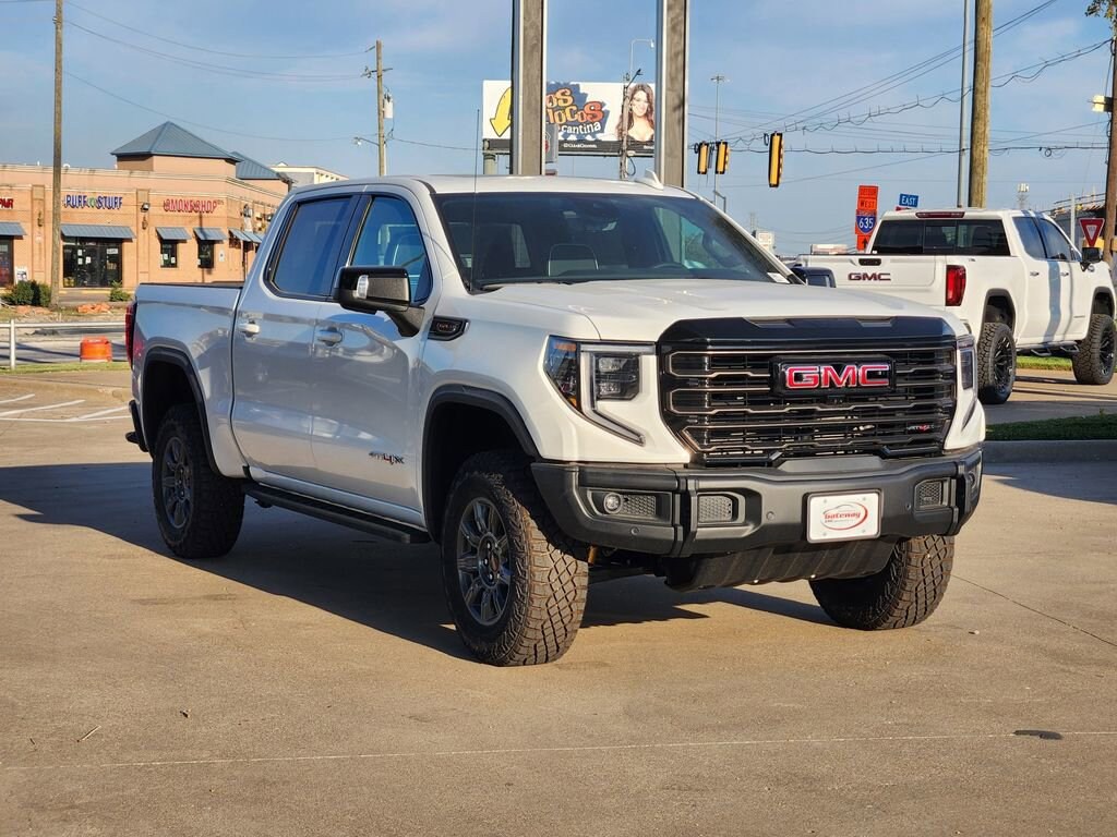 Summit White 2026 GMC Sierra 1500 4D Crew Cab AT4X 4WD 10-Speed Automatic EcoTec3 6.2L V8 Preferred Equipment Group 4SG (120-Volt Bed Mounted Power Outlet, 120-Volt Interior Power Outlet, 2 Charge/Data USB Ports Inside Center Console, 2 Type-C Charge-Only Rear USB Ports, 2 USB Ports, Bed View Camera, Bose Premium Series w/12-Speaker System, Color-Keyed Carpeting Floor Covering, Deep-Tinted Glass, Driver-Selectable Full-Locking Front Differential, Driver-Selectable Full-Locking Rear Differential, Electric Rear-Window Defogger, Floor-Mounted Center Console, Front Prem Floor Liners w/Removable Carpet Insert, Front Rain-Sensing Wipers, Gloss Black Header w/Drk Nickel Grille Insert Bars, HD Surround Vision, Heated 2nd Row Outboard Seats, Heated Driver & Front Outboard Passenger Seating, Heavy-Duty Air Filter, Hill Descent Control, Hitch View, In-Vehicle Trailering System App, Integrated Trailer Brake Controller, Keyless Open & Start, LED Cargo Area Lighting, Multicolor 15 Diagonal Head-Up Display, MultiPro Tailgate Audio System by Kicker (LPO), OnStar Services Capable, Perimeter Lighting, Power Door Locks, Power Front Passenger Windows w/Express Up/Down, Power Front Windows w/Driver Express Up/Down, Power Rake & Telescoping Steering Column, Power Rear Windows w/Express Down, Power Sliding Rear Window w/Rear Defogger, Power Sunroof, Push Button Start, Rear Cross Traffic Braking, Rear Pedestrian Detection, Rear Prem Floor Liners w/Removable Carpet Insert, Rear Wheelhouse Liners, Remote Vehicle Starter System, SiriusXM w/360L Trial Subscription, Spray-On Pickup Bedliner w/GMC Logo, Steering Wheel Audio Controls, Theft Deterrent System (Unauthorized Entry), Trailer Camera Provisions, Trailer Side Blind Zone Alert, Trailer Tire Pressure Monitor System, Ultrasonic Front & Rear Park Assist, Universal Home Remote, Ventilated Driver & Front Passenger Seats, Wi-Fi Hotspot Capable, and Wireless Charging), Trailering Package (Hitch Guidance), 10-Speed Automatic, 4WD, Obsidian Rush Leather, 12 Speakers, 16-Way Power Driver Seat Adjuster w/Lumbar, 16-Way Power Passenger Seat Adjuster w/Lumbar, 170 Amp Alternator, 220 Amp Alternator, 3.23 Rear Axle Ratio, 4-Wheel Disc Brakes, ABS brakes, Air Conditioning, Alloy wheels, AM/FM radio: SiriusXM with 360L, Apple CarPlay/Android Auto, Auto High-beam Headlights, Auto-dimming door mirrors, Auto-dimming Rear-View mirror, Automatic Emergency Braking, Automatic temperature control, Auxiliary External Transmission Oil Cooler, Block heater, Brake assist, Buckle to Drive, Cargo Tie-Downs (4) (LPO), Compass, Delay-off headlights, Driver door bin, Driver Memory, Driver vanity mirror, Dual Active Exhaust, Dual front impact airbags, Dual front side impact airbags, Electronic Stability Control, Emergency communication system: OnStar, External Engine Oil Cooling, Following Distance Indicator, Forward Collision Alert, Front anti-roll bar, Front Bucket Seats, Front Center Armrest, Front dual zone A/C, Front fog lights, Front License Plate Kit, Front Pedestrian Braking, Front reading lights, Front wheel independent suspension, Full Grain Leather Seat Trim, Fully automatic headlights, Garage door transmitter, Genuine wood dashboard insert, Genuine wood door panel insert, GMC MultiPro Tailgate Step Lights (LPO), Heads-Up Display, Heated door mirrors, Heated front seats, Heated rear seats, Heated steering wheel, Illuminated entry, IntelliBeam Automatic High Beam On/Off, Lane Keep Assist w/Lane Departure Warning, Leather steering wheel, Low tire pressure warning, Memory seat, Navigation System, Occupant sensing airbag, Off-Road High Clearance Step (LPO), Off-Road Suspension, Outside temperature display, Overhead airbag, Overhead console, Panic alarm, Passenger door bin, Passenger vanity mirror, Power door mirrors, Power driver seat, Power moonroof, Power passenger seat, Power steering, Power windows, Radio data system, Radio: Premium