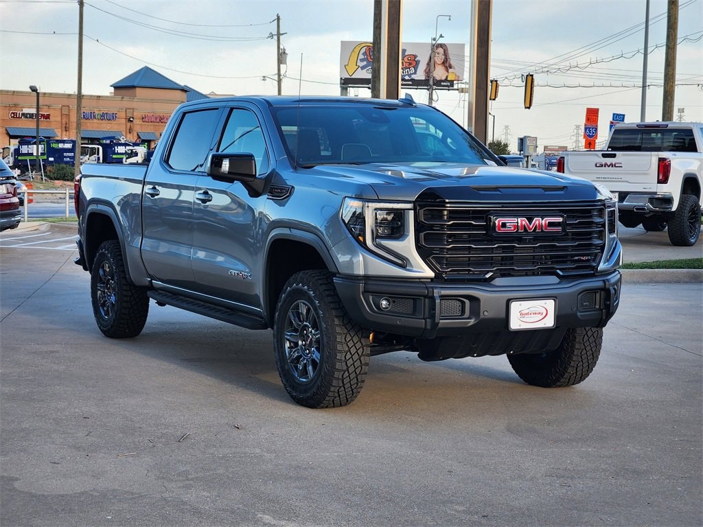 Sterling Metallic 2026 GMC Sierra 1500 4D Crew Cab AT4X 4WD 10-Speed Automatic EcoTec3 6.2L V8 Preferred Equipment Group 4SG (120-Volt Bed Mounted Power Outlet, 120-Volt Interior Power Outlet, 2 Charge/Data USB Ports Inside Center Console, 2 Type-C Charge-Only Rear USB Ports, 2 USB Ports, Bed View Camera, Bose Premium Series w/12-Speaker System, Color-Keyed Carpeting Floor Covering, Deep-Tinted Glass, Driver-Selectable Full-Locking Front Differential, Driver-Selectable Full-Locking Rear Differential, Electric Rear-Window Defogger, Floor-Mounted Center Console, Front Prem Floor Liners w/Removable Carpet Insert, Front Rain-Sensing Wipers, Gloss Black Header w/Drk Nickel Grille Insert Bars, HD Surround Vision, Heated 2nd Row Outboard Seats, Heated Driver & Front Outboard Passenger Seating, Heavy-Duty Air Filter, Hill Descent Control, Hitch View, In-Vehicle Trailering System App, Integrated Trailer Brake Controller, Keyless Open & Start, LED Cargo Area Lighting, Multicolor 15 Diagonal Head-Up Display, MultiPro Tailgate Audio System by Kicker (LPO), OnStar Services Capable, Perimeter Lighting, Power Door Locks, Power Front Passenger Windows w/Express Up/Down, Power Front Windows w/Driver Express Up/Down, Power Rake & Telescoping Steering Column, Power Rear Windows w/Express Down, Power Sliding Rear Window w/Rear Defogger, Power Sunroof, Push Button Start, Rear Cross Traffic Braking, Rear Pedestrian Detection, Rear Prem Floor Liners w/Removable Carpet Insert, Rear Wheelhouse Liners, Remote Vehicle Starter System, SiriusXM w/360L Trial Subscription, Spray-On Pickup Bedliner w/GMC Logo, Steering Wheel Audio Controls, Theft Deterrent System (Unauthorized Entry), Trailer Camera Provisions, Trailer Side Blind Zone Alert, Trailer Tire Pressure Monitor System, Ultrasonic Front & Rear Park Assist, Universal Home Remote, Ventilated Driver & Front Passenger Seats, Wi-Fi Hotspot Capable, and Wireless Charging), Trailering Package (Hitch Guidance), 10-Speed Automatic, 4WD, Obsidian Rush Leather, 12 Speakers, 16-Way Power Driver Seat Adjuster w/Lumbar, 16-Way Power Passenger Seat Adjuster w/Lumbar, 170 Amp Alternator, 220 Amp Alternator, 3.23 Rear Axle Ratio, 4-Wheel Disc Brakes, ABS brakes, Air Conditioning, Alloy wheels, AM/FM radio: SiriusXM with 360L, Apple CarPlay/Android Auto, Auto High-beam Headlights, Auto-dimming door mirrors, Auto-dimming Rear-View mirror, Automatic Emergency Braking, Automatic temperature control, Auxiliary External Transmission Oil Cooler, Block heater, Brake assist, Buckle to Drive, Cargo Tie-Downs (4) (LPO), Compass, Delay-off headlights, Driver door bin, Driver Memory, Driver vanity mirror, Dual Active Exhaust, Dual front impact airbags, Dual front side impact airbags, Electronic Stability Control, Emergency communication system: OnStar, External Engine Oil Cooling, Following Distance Indicator, Forward Collision Alert, Front anti-roll bar, Front Bucket Seats, Front Center Armrest, Front dual zone A/C, Front fog lights, Front License Plate Kit, Front Pedestrian Braking, Front reading lights, Front wheel independent suspension, Full Grain Leather Seat Trim, Fully automatic headlights, Garage door transmitter, Genuine wood dashboard insert, Genuine wood door panel insert, GMC MultiPro Tailgate Step Lights (LPO), Heads-Up Display, Heated door mirrors, Heated front seats, Heated rear seats, Heated steering wheel, Illuminated entry, IntelliBeam Automatic High Beam On/Off, Lane Keep Assist w/Lane Departure Warning, Leather steering wheel, Low tire pressure warning, Memory seat, Navigation System, Occupant sensing airbag, Off-Road High Clearance Step (LPO), Off-Road Suspension, Outside temperature display, Overhead airbag, Overhead console, Panic alarm, Passenger door bin, Passenger vanity mirror, Power door mirrors, Power driver seat, Power moonroof, Power passenger seat, Power steering, Power windows, Radio data system, Radio: Pr