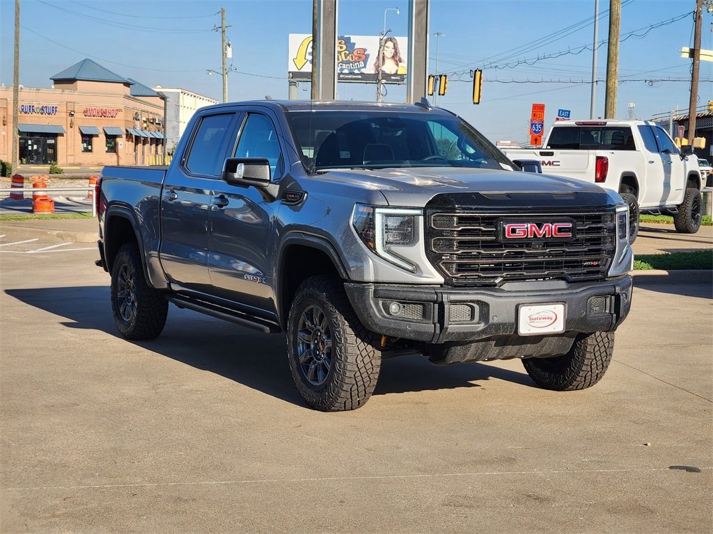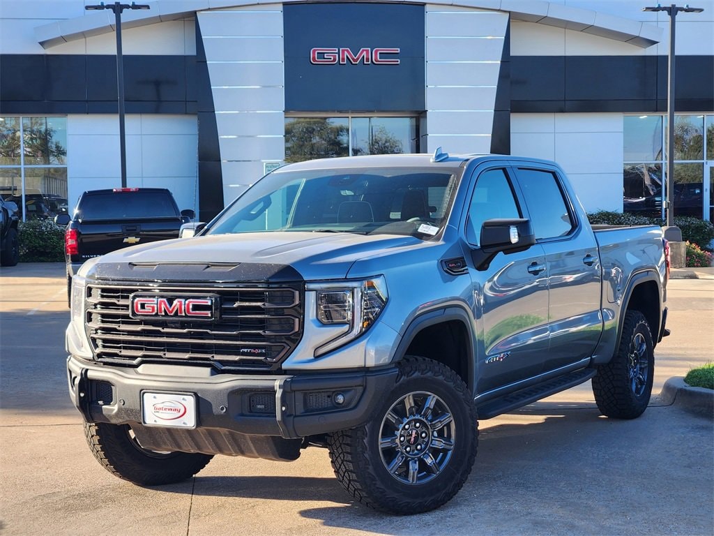 Sterling Metallic 2026 GMC Sierra 1500 4D Crew Cab AT4X 4WD 10-Speed Automatic EcoTec3 6.2L V8 Preferred Equipment Group 4SG (120-Volt Bed Mounted Power Outlet, 120-Volt Interior Power Outlet, 2 Charge/Data USB Ports Inside Center Console, 2 Type-C Charge-Only Rear USB Ports, 2 USB Ports, Bed View Camera, Bose Premium Series w/12-Speaker System, Color-Keyed Carpeting Floor Covering, Deep-Tinted Glass, Driver-Selectable Full-Locking Front Differential, Driver-Selectable Full-Locking Rear Differential, Electric Rear-Window Defogger, Floor-Mounted Center Console, Front Prem Floor Liners w/Removable Carpet Insert, Front Rain-Sensing Wipers, Gloss Black Header w/Drk Nickel Grille Insert Bars, HD Surround Vision, Heated 2nd Row Outboard Seats, Heated Driver & Front Outboard Passenger Seating, Heavy-Duty Air Filter, Hill Descent Control, Hitch View, In-Vehicle Trailering System App, Integrated Trailer Brake Controller, Keyless Open & Start, LED Cargo Area Lighting, Multicolor 15 Diagonal Head-Up Display, MultiPro Tailgate Audio System by Kicker (LPO), OnStar Services Capable, Perimeter Lighting, Power Door Locks, Power Front Passenger Windows w/Express Up/Down, Power Front Windows w/Driver Express Up/Down, Power Rake & Telescoping Steering Column, Power Rear Windows w/Express Down, Power Sliding Rear Window w/Rear Defogger, Power Sunroof, Push Button Start, Rear Cross Traffic Braking, Rear Pedestrian Detection, Rear Prem Floor Liners w/Removable Carpet Insert, Rear Wheelhouse Liners, Remote Vehicle Starter System, SiriusXM w/360L Trial Subscription, Spray-On Pickup Bedliner w/GMC Logo, Steering Wheel Audio Controls, Theft Deterrent System (Unauthorized Entry), Trailer Camera Provisions, Trailer Side Blind Zone Alert, Trailer Tire Pressure Monitor System, Ultrasonic Front & Rear Park Assist, Universal Home Remote, Ventilated Driver & Front Passenger Seats, Wi-Fi Hotspot Capable, and Wireless Charging), Trailering Package (Hitch Guidance), 10-Speed Automatic, 4WD, Obsidian Rush Leather, 12 Speakers, 16-Way Power Driver Seat Adjuster w/Lumbar, 16-Way Power Passenger Seat Adjuster w/Lumbar, 170 Amp Alternator, 220 Amp Alternator, 3.23 Rear Axle Ratio, 4-Wheel Disc Brakes, ABS brakes, Air Conditioning, Alloy wheels, AM/FM radio: SiriusXM with 360L, Apple CarPlay/Android Auto, Auto High-beam Headlights, Auto-dimming door mirrors, Auto-dimming Rear-View mirror, Automatic Emergency Braking, Automatic temperature control, Auxiliary External Transmission Oil Cooler, Block heater, Brake assist, Buckle to Drive, Cargo Tie-Downs (4) (LPO), Compass, Delay-off headlights, Driver door bin, Driver Memory, Driver vanity mirror, Dual Active Exhaust, Dual front impact airbags, Dual front side impact airbags, Electronic Stability Control, Emergency communication system: OnStar, External Engine Oil Cooling, Following Distance Indicator, Forward Collision Alert, Front anti-roll bar, Front Bucket Seats, Front Center Armrest, Front dual zone A/C, Front fog lights, Front License Plate Kit, Front Pedestrian Braking, Front reading lights, Front wheel independent suspension, Full Grain Leather Seat Trim, Fully automatic headlights, Garage door transmitter, Genuine wood dashboard insert, Genuine wood door panel insert, GMC MultiPro Tailgate Step Lights (LPO), Heads-Up Display, Heated door mirrors, Heated front seats, Heated rear seats, Heated steering wheel, Illuminated entry, IntelliBeam Automatic High Beam On/Off, Lane Keep Assist w/Lane Departure Warning, Leather steering wheel, Low tire pressure warning, Memory seat, Navigation System, Occupant sensing airbag, Off-Road High Clearance Step (LPO), Off-Road Suspension, Outside temperature display, Overhead airbag, Overhead console, Panic alarm, Passenger door bin, Passenger vanity mirror, Power door mirrors, Power driver seat, Power moonroof, Power passenger seat, Power steering, Power windows, Radio data system, Radio: Pr