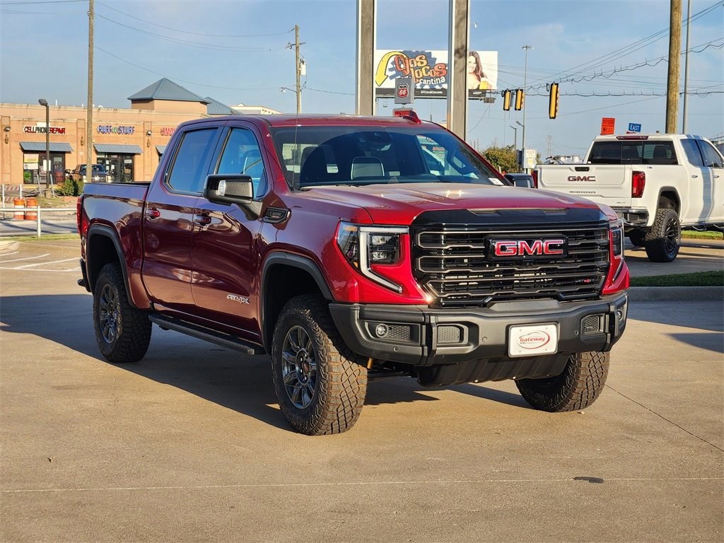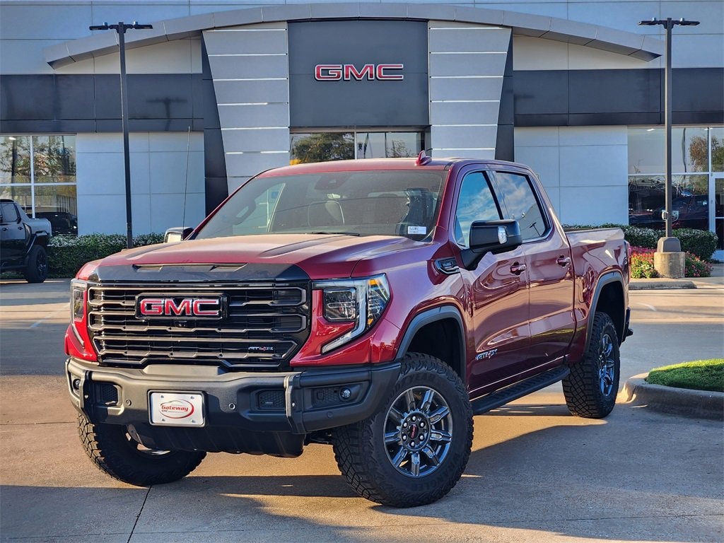 Volcanic Red Tintcoat 2026 GMC Sierra 1500 4D Crew Cab AT4X 4WD 10-Speed Automatic 3.0L I6 Preferred Equipment Group 4SG (120-Volt Bed Mounted Power Outlet, 120-Volt Interior Power Outlet, 2 Charge/Data USB Ports Inside Center Console, 2 Type-C Charge-Only Rear USB Ports, 2 USB Ports, Bed View Camera, Bose Premium Series w/12-Speaker System, Color-Keyed Carpeting Floor Covering, Deep-Tinted Glass, Driver-Selectable Full-Locking Front Differential, Driver-Selectable Full-Locking Rear Differential, Electric Rear-Window Defogger, Floor-Mounted Center Console, Front Prem Floor Liners w/Removable Carpet Insert, Front Rain-Sensing Wipers, Gloss Black Header w/Drk Nickel Grille Insert Bars, HD Surround Vision, Heated 2nd Row Outboard Seats, Heated Driver & Front Outboard Passenger Seating, Heavy-Duty Air Filter, Hill Descent Control, Hitch View, In-Vehicle Trailering System App, Integrated Trailer Brake Controller, Keyless Open & Start, LED Cargo Area Lighting, Multicolor 15 Diagonal Head-Up Display, MultiPro Tailgate Audio System by Kicker (LPO), OnStar Services Capable, Perimeter Lighting, Power Door Locks, Power Front Passenger Windows w/Express Up/Down, Power Front Windows w/Driver Express Up/Down, Power Rake & Telescoping Steering Column, Power Rear Windows w/Express Down, Power Sliding Rear Window w/Rear Defogger, Power Sunroof, Push Button Start, Rear Cross Traffic Braking, Rear Pedestrian Detection, Rear Prem Floor Liners w/Removable Carpet Insert, Rear Wheelhouse Liners, Remote Vehicle Starter System, SiriusXM w/360L Trial Subscription, Spray-On Pickup Bedliner w/GMC Logo, Steering Wheel Audio Controls, Theft Deterrent System (Unauthorized Entry), Trailer Camera Provisions, Trailer Side Blind Zone Alert, Trailer Tire Pressure Monitor System, Ultrasonic Front & Rear Park Assist, Universal Home Remote, Ventilated Driver & Front Passenger Seats, Wi-Fi Hotspot Capable, and Wireless Charging), Trailering Package (Hitch Guidance), 10-Speed Automatic, 4WD, Obsidian Rush Leather, 12 Speakers, 16-Way Power Driver Seat Adjuster w/Lumbar, 16-Way Power Passenger Seat Adjuster w/Lumbar, 220 Amp Alternator, 3.23 Rear Axle Ratio, 4-Wheel Disc Brakes, ABS brakes, Air Conditioning, Alloy wheels, AM/FM radio: SiriusXM with 360L, Apple CarPlay/Android Auto, Auto High-beam Headlights, Auto-dimming door mirrors, Auto-dimming Rear-View mirror, Automatic Emergency Braking, Automatic temperature control, Block heater, Brake assist, Buckle to Drive, Cargo Tie-Downs (4) (LPO), Compass, Delay-off headlights, Driver door bin, Driver Memory, Driver vanity mirror, Dual front impact airbags, Dual front side impact airbags, Electronic Stability Control, Emergency communication system: OnStar, Engine Block Heater, Following Distance Indicator, Forward Collision Alert, Front anti-roll bar, Front Bucket Seats, Front Center Armrest, Front dual zone A/C, Front fog lights, Front License Plate Kit, Front Pedestrian Braking, Front reading lights, Front wheel independent suspension, Full Grain Leather Seat Trim, Fully automatic headlights, Garage door transmitter, Genuine wood dashboard insert, Genuine wood door panel insert, GMC MultiPro Tailgate Step Lights (LPO), Heads-Up Display, Heated door mirrors, Heated front seats, Heated rear seats, Heated steering wheel, Illuminated entry, IntelliBeam Automatic High Beam On/Off, Lane Keep Assist w/Lane Departure Warning, Leather steering wheel, Low tire pressure warning, Memory seat, Navigation System, Occupant sensing airbag, Off-Road High Clearance Step (LPO), Off-Road Suspension, Outside temperature display, Overhead airbag, Overhead console, Panic alarm, Passenger door bin, Passenger vanity mirror, Power door mirrors, Power driver seat, Power moonroof, Power passenger seat, Power steering, Power windows, Radio data system, Radio: Premium GMC Infotainment Audio System, Rain sensing wipers, Rear reading lights, Rear seat center a