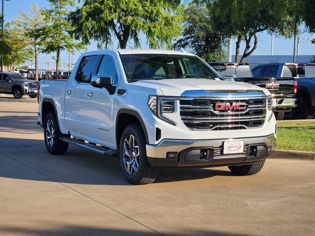 Summit White 2026 GMC Sierra 1500 4D Crew Cab SLT 4WD 10-Speed Automatic EcoTec3 5.3L V8 SLT Preferred Package, Standard Suspension Package, Trailering Package (Hitch Guidance), X31 Off-Road Package, 10-Speed Automatic, 4WD, Black Leather, 10-Way Power Driver Seat Adjuster w/Lumbar, 10-Way Power Passenger Seat Adjuster w/Lumbar, 120-Volt Bed Mounted Power Outlet, 120-Volt Interior Power Outlet, 170 Amp Alternator, 2 Charge/Data USB Ports, 3.23 Rear Axle Ratio, 4-Wheel Disc Brakes, 6 Speakers, 6-Speaker Audio System Feature, ABS brakes, Air Conditioning, All-Weather Floor Liner (LPO), Alloy wheels, AM/FM radio: SiriusXM with 360L, Apple CarPlay/Android Auto, Auto High-beam Headlights, Auto-dimming door mirrors, Auto-dimming Rear-View mirror, Auto-Locking Rear Differential, Automatic Emergency Braking, Automatic temperature control, Auxiliary External Transmission Oil Cooler, Brake assist, Buckle to Drive, Bumpers: chrome, Chrome Header & Chrome Grille Insert Bars, Compass, Deep-Tinted Glass, Delay-off headlights, Driver door bin, Driver Memory, Driver vanity mirror, Dual front impact airbags, Dual front side impact airbags, Electric Rear-Window Defogger, Electronic Stability Control, Emergency communication system: OnStar, Following Distance Indicator, Forward Collision Alert, Front 40/20/40 Split-Bench Seat, Front anti-roll bar, Front dual zone A/C, Front fog lights, Front Frame-Mounted Black Recovery Hooks, Front Pedestrian Braking, Front Rain-Sensing Wipers, Front reading lights, Front wheel independent suspension, Fully automatic headlights, HD Rear Vision Camera, Heated door mirrors, Heated Driver & Front Outboard Passenger Seating, Heated front seats, Heated steering wheel, Illuminated entry, Integrated Trailer Brake Controller, IntelliBeam Automatic High Beam On/Off, Keyless Open & Start, Lane Keep Assist w/Lane Departure Warning, LED Cargo Area Lighting, Low tire pressure warning, Manual Tilt-Wheel & Telescoping Steering Column, Memory seat, Navigation System, Occupant sensing airbag, OnStar Services Capable, Outside temperature display, Overhead airbag, Overhead console, Panic alarm, Passenger door bin, Passenger vanity mirror, Perf Leather-Appointed Front Outboard Seat Trim, Perimeter Lighting, Power Door Locks, Power door mirrors, Power driver seat, Power Front Passenger Windows w/Express Up/Down, Power Front Windows w/Driver Express Up/Down, Power passenger seat, Power Rear Windows w/Express Down, Power steering, Power windows, Push Button Start, Radio data system, Radio: Premium GMC Infotainment Audio System, Rain sensing wipers, Rear reading lights, Rear step bumper, Rear Wheelhouse Liners, Rear window defroster, Remote keyless entry, Remote Vehicle Starter System, Security system, SiriusXM w/360L Trial Subscription, Speed control, Speed-sensing steering, Split folding rear seat, Steering Wheel Audio Controls, Steering wheel mounted audio controls, Tachometer, Telescoping steering wheel, Theft Deterrent System (Unauthorized Entry), Tilt steering wheel, Traction control, Trip computer, Variably intermittent wipers, Voltmeter, Wheels: 18 x 8.5 6-Spoke Machined Aluminum, Wi-Fi Hotspot Capable, and Wireless Apple CarPlay/Wireless Android Auto.10-Speed Automatic, 4WD, Black Leather. Price includes: Discounts Available to Everyone