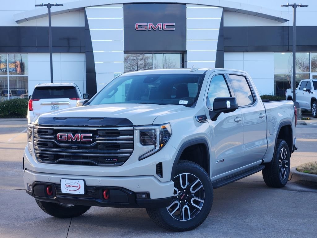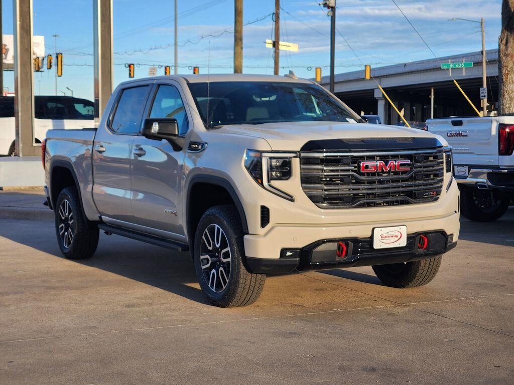 Coastal Dune 2026 GMC Sierra 1500 4D Crew Cab AT4 4WD 10-Speed Automatic EcoTec3 6.2L V8 AT4 Preferred Package (Universal Home Remote), AT4 Premium Package, Preferred Equipment Group 4SB (120-Volt Bed Mounted Power Outlet, 120-Volt Interior Power Outlet, 2 Charge/Data USB Ports Inside Center Console, 2 Type-C Charge-Only Rear USB Ports, 2 USB Ports, 220 Amp Alternator, Auto-Locking Rear Differential, Black Chrome Grille Insert Bars, Color-Keyed Carpeting Floor Covering, Deep-Tinted Glass, Electric Rear-Window Defogger, Floor-Mounted Center Console, Front Rain-Sensing Wipers, HD Surround Vision, Heated 2nd Row Outboard Seats, Heavy-Duty Air Filter, Hill Descent Control, Hitch View, Integrated Trailer Brake Controller, LED Cargo Area Lighting, Off-Road Suspension, OnStar Services Capable, Perimeter Lighting, Power Door Locks, Premium Bose 7-Speaker Sound System, Push Button Start, Rear Cross Traffic Braking, Rear Pedestrian Detection, Rear Wheelhouse Liners, Red Recovery Hooks, Remote Vehicle Starter System, Steering Wheel Audio Controls, Trailer Camera Provisions, Trailer Side Blind Zone Alert, Wheels: 20 x 9 Machined Aluminum, Wi-Fi Hotspot Capable, and Wireless Charging), Technology Package (Bed View Camera, Multicolor 15 Diagonal Head-Up Display, and Rear Camera Mirror), Trailering Package (Hitch Guidance), 10-Speed Automatic, 4WD, Jet Black With Kalahari Accents Leather, 170 Amp Alternator, 3.23 Rear Axle Ratio, 4-Wheel Disc Brakes, 7 Speakers, ABS brakes, Air Conditioning, Alloy wheels, AM/FM radio: SiriusXM with 360L, Apple CarPlay/Android Auto, Auto High-beam Headlights, Auto-dimming door mirrors, Auto-dimming Rear-View mirror, Automatic Emergency Braking, Automatic temperature control, Auxiliary External Transmission Oil Cooler, Block heater, Brake assist, Buckle to Drive, Bumpers: body-color, Compass, Delay-off headlights, Driver door bin, Driver Memory, Driver vanity mirror, Dual Active Exhaust, Dual front impact airbags, Dual front side impact airbags, Electronic Stability Control, Emergency communication system: OnStar, External Engine Oil Cooling, Following Distance Indicator, Forward Collision Alert, Front anti-roll bar, Front Bucket Seats, Front Center Armrest, Front dual zone A/C, Front fog lights, Front License Plate Kit, Front Pedestrian Braking, Front reading lights, Front wheel independent suspension, Fully automatic headlights, Heated door mirrors, Heated front seats, Heated rear seats, Heated steering wheel, Illuminated entry, Low tire pressure warning, Memory seat, Navigation System, Occupant sensing airbag, Outside temperature display, Overhead airbag, Overhead console, Panic alarm, Passenger door bin, Passenger vanity mirror, Perforated Front Leather Seat Trim, Power door mirrors, Power driver seat, Power passenger seat, Power steering, Power Sunroof, Power windows, Radio data system, Radio: Premium GMC Infotainment Audio System, Rain sensing wipers, Rear reading lights, Rear seat center armrest, Rear step bumper, Rear window defroster, Remote keyless entry, Safety Alert Seat, Security system, Speed control, Speed-sensing steering, Split folding rear seat, Steering wheel mounted audio controls, Tachometer, Telescoping steering wheel, Tilt steering wheel, Traction control, Trailer Tire Pressure Monitor System, Trip computer, Variably intermittent wipers, Ventilated front seats, Voltmeter, and Wireless Apple CarPlay/Wireless Android Auto.