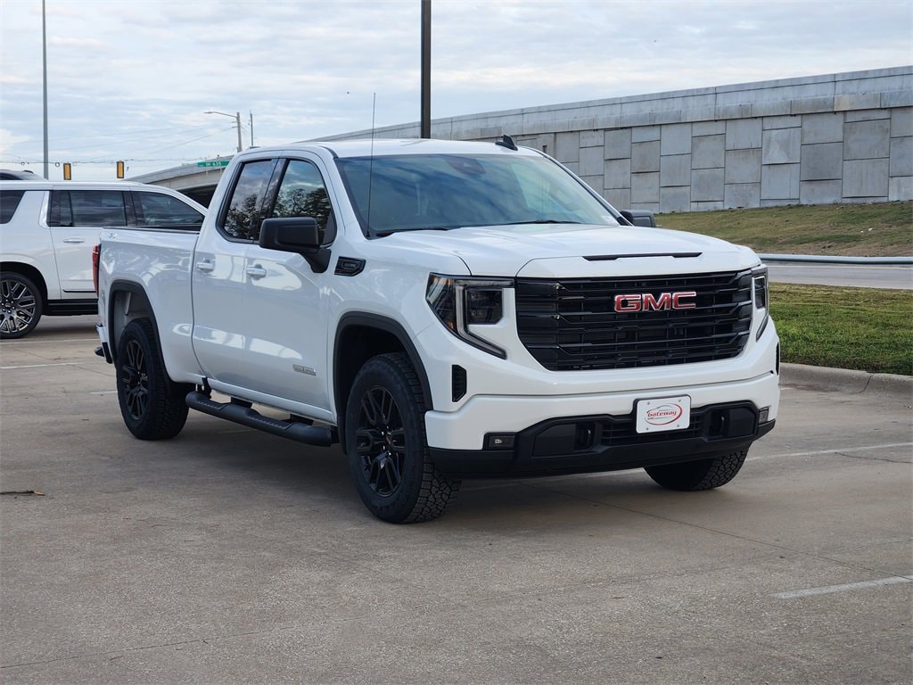 Summit White 2026 GMC Sierra 1500 Double Cab Elevation 4WD 8-Speed Automatic 2.7L I4 Turbocharged DOHC 16V LEV3-SULEV30 310hp High Capacity Suspension Package, Trailering Package (Hitch Guidance), 8-Speed Automatic, 4WD, Jet Black Cloth, 10-Way Power Driver Seat Adjuster with Lumbar, 120-Volt Bed Mounted Power Outlet, 120-Volt Interior Power Outlet, 2 Charge/Data USB Ports, 2 Type-C Charge-Only Rear USB Ports, 220 Amp Alternator, 3.42 Rear Axle Ratio, 4-Way Manual Passenger Seat Adjuster, 4-Wheel Disc Brakes, 6 Speakers, 6-Speaker Audio System Feature, ABS brakes, Air Conditioning, Alloy wheels, AM/FM radio: SiriusXM with 360L, Apple CarPlay/Android Auto, Auto High-beam Headlights, Auto-Locking Rear Differential, Automatic Emergency Braking, Automatic temperature control, Body Color Header with Gloss Black Mesh Grille Bars, Brake assist, Buckle to Drive, Bumpers: body-color, Cloth Seat Trim, Color-Keyed Carpeting Floor Covering, Compass, Deep-Tinted Glass, Delay-off headlights, Driver door bin, Driver vanity mirror, Dual front impact airbags, Dual front side impact airbags, Electric Rear-Window Defogger, Electronic Stability Control, Emergency communication system: OnStar, Following Distance Indicator, Forward Collision Alert, Front 40/20/40 Split-Bench Seat, Front anti-roll bar, Front Center Armrest w/Storage, Front dual zone A/C, Front fog lights, Front Frame-Mounted Black Recovery Hooks, Front Pedestrian Braking, Front reading lights, Front Rubberized-Vinyl Floor Mats, Front wheel independent suspension, Fully automatic headlights, Genuine wood dashboard insert, HD Rear Vision Camera, Heated door mirrors, Heated Driver and Front Outboard Passenger Seating, Heated front seats, Heated steering wheel, Illuminated entry, Integrated Trailer Brake Controller, IntelliBeam Automatic High Beam on/Off, Keyless Open and Start, Lane Keep Assist with Lane Departure Warning, LED Cargo Area Lighting, Low tire pressure warning, Manual Tilt-Wheel and Telescoping Steering Column, Navigation System, Occupant sensing airbag, OnStar Services Capable, Outside temperature display, Overhead airbag, Overhead console, Panic alarm, Passenger door bin, Passenger vanity mirror, Power Door Locks, Power door mirrors, Power driver seat, Power Front Windows with Driver Express Up/Down, Power Front Windows with Passenger Express Down, Power Rear Windows with Express Down, Power steering, Power windows, Push Button Start, Radio data system, Radio: Premium GMC Infotainment Audio System, Rear reading lights, Rear Rubberized-Vinyl Floor Mats, Rear step bumper, Rear window defroster, Remote keyless entry, Remote Vehicle Starter System, Security system, SiriusXM with 360L Trial Subscription, Speed control, Speed-sensing steering, Split folding rear seat, Steering Wheel Audio Controls, Steering wheel mounted audio controls, Tachometer, Telescoping steering wheel, Theft Deterrent System (unauthorized Entry), Tilt steering wheel, Traction control, Trip computer, Variably intermittent wipers, Voltmeter, Wheels: : 20 x 9 High Gloss Black Painted Aluminum, Wi-Fi Hotspot Capable, and Wireless Apple CarPlay/Wireless Android Auto.