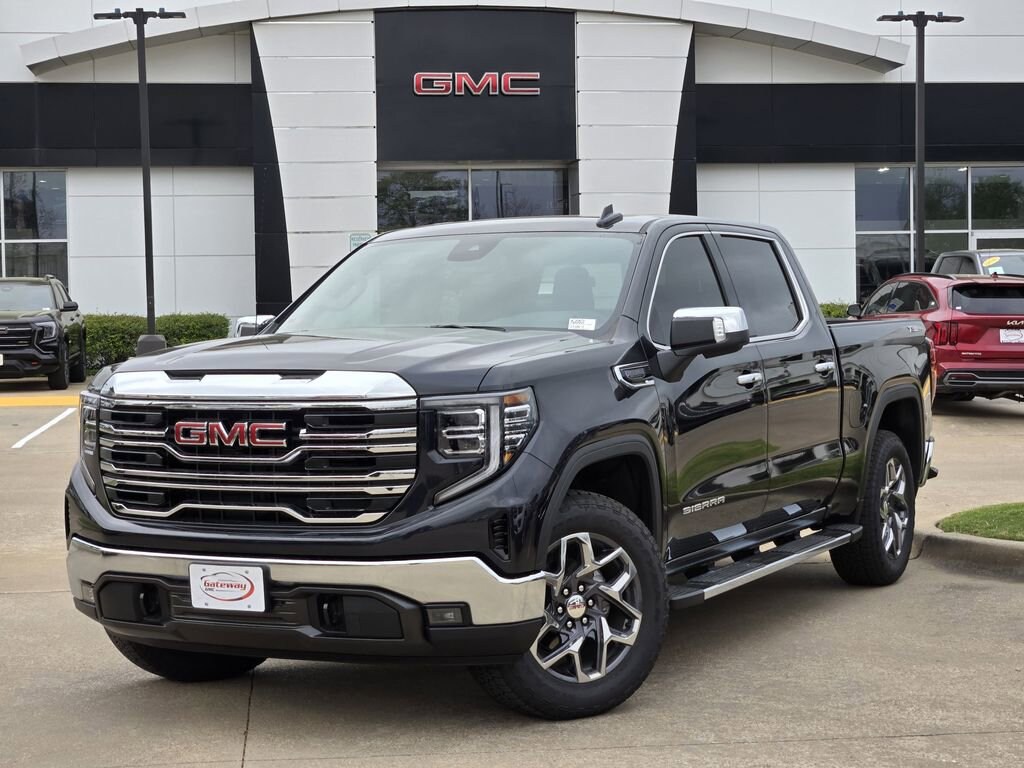 Titanium Rush Metallic 2026 GMC Sierra 1500 4D Crew Cab SLT 4WD 10-Speed Automatic EcoTec3 6.2L V8 High Capacity Suspension Package, Preferred Equipment Group 4SA (10-Way Power Driver Seat Adjuster with Lumbar, 10-Way Power Passenger Seat Adjuster with Lumbar, 120-Volt Bed Mounted Power Outlet, 120-Volt Interior Power Outlet, 170 Amp Alternator, 2 Charge/Data USB Ports, 2 Type-C Charge-Only Rear USB Ports, 6-Speaker Audio System Feature, Auto-Locking Rear Differential, Auxiliary External Transmission Oil Cooler, Chrome Header and Chrome Grille Insert Bars, Color-Keyed Carpeting Floor Covering, Deep-Tinted Glass, Driver Memory, Electric Rear-Window Defogger, Front 40/20/40 Split-Bench Seat, Front Frame-Mounted Black Recovery Hooks, Front Rain-Sensing Wipers, HD Rear Vision Camera, Heated Driver and Front Outboard Passenger Seating, Integrated Trailer Brake Controller, Keyless Open and Start, LED Cargo Area Lighting, Manual Tilt-Wheel and Telescoping Steering Column, OnStar Services Capable, Perimeter Lighting, Power Door Locks, Power Front Passenger Windows with Express Up/Down, Power Front Windows with Driver Express Up/Down, Power Rear Windows with Express Down, Push Button Start, Rear Wheelhouse Liners, Remote Vehicle Starter System, SiriusXM with 360L Trial Subscription, Steering Wheel Audio Controls, Theft Deterrent System (unauthorized Entry), Wheels: 18 x 8.5 6-Spoke Machined Aluminum, and Wi-Fi Hotspot Capable), ProGrade Trailering System (Hitch View and in-Vehicle Trailering System App), SLT Convenience Package (2 Charge/Data USB Ports Inside Center Console, Electronic Precision Shift, Floor-Mounted Center Console, Front Bucket Seats, Power Rake and Telescoping Steering Column, Premium Bose 7-Speaker Sound System, Ventilated Driver and Front Passenger Seats, and Wireless Charging), SLT Preferred Package (Adaptive Cruise Control, Heated 2nd Row Outboard Seats, Power Sliding Rear Window with Rear Defogger, and Universal Home Remote), Standard Suspension Package, Texas Edition SLT Premium Package (20 Polished Aluminum Wheels, Chrome Wheel to Wheel Assist Steps, and Texas Edition Badging), Trailering Package (Hitch Guidance), X31 Off-Road and Protection Package (All-Weather Floor Liner and Spray-on Pickup Bedliner with GMC Logo), X31 Off-Road Package (Dual Exhaust System, Heavy-Duty Air Filter, Hill Descent Control, Off-Road Suspension, and X31 Hard Badge), 10-Speed Automatic, 4WD, Black Leather, 3.23 Rear Axle Ratio, 4-Wheel Disc Brakes, 6 Speakers, ABS brakes, Air Conditioning, Alloy wheels, AM/FM radio: SiriusXM with 360L, Apple CarPlay/Android Auto, Auto High-beam Headlights, Auto-dimming door mirrors, Auto-dimming Rear-View mirror, Automatic Emergency Braking, Automatic temperature control, Brake assist, Buckle to Drive, Bumpers: chrome, Compass, Delay-off headlights, Driver door bin, Driver vanity mirror, Dual Active Exhaust, Dual front impact airbags, Dual front side impact airbags, Electronic Stability Control, Emergency communication system: OnStar, Following Distance Indicator, Forward Collision Alert, Front anti-roll bar, Front Center Armrest w/Storage, Front dual zone A/C, Front fog lights, Front License Plate Kit, Front Pedestrian Braking, Front reading lights, Front wheel independent suspension, Fully automatic headlights, Heated door mirrors, Heated front seats, Heated steering wheel, Illuminated entry, IntelliBeam Automatic High Beam on/Off, Lane Keep Assist with Lane Departure Warning, Low tire pressure warning, Memory seat, Navigation System, Occupant sensing airbag, Outside temperature display, Overhead airbag, Overhead console, Panic alarm, Passenger door bin, Passenger vanity mirror, Perforated Leather-Appointed Front Outboard Seat Trim, Power door mirrors, Power driver seat, Power passenger seat, Power steering, Power Sunroof, Power windows, Radio data system, Radio: Premium GMC Infotainment Audio System, Rain sensing wipers, Rear reading lights, Rear