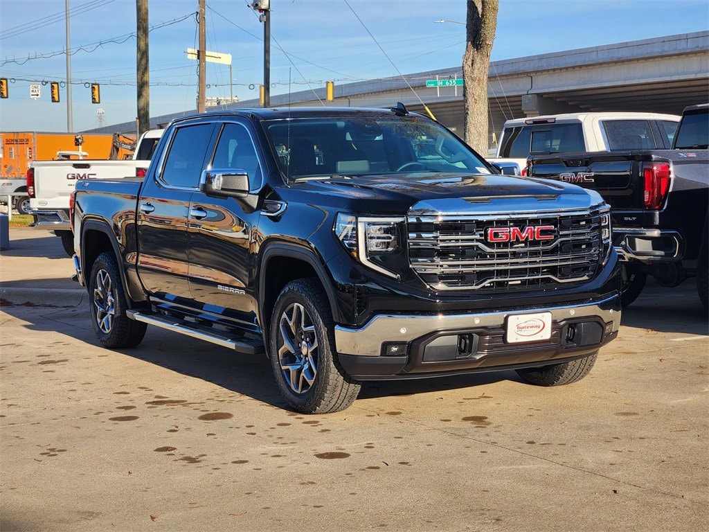Onyx Black 2026 GMC Sierra 1500 4D Crew Cab SLT 4WD 10-Speed Automatic EcoTec3 5.3L V8 High Capacity Suspension Package, ProGrade Trailering System (Hitch View and In-Vehicle Trailering System App), Sierra Safety Plus Package (HD Surround Vision, Rear Cross Traffic Braking, Rear Pedestrian Detection, Safety Alert Seat, Trailer Camera Provisions, Trailer Side Blind Zone Alert, and Ultrasonic Front & Rear Park Assist), SLT Convenience Package (2 Charge/Data USB Ports Inside Center Console, Electronic Precision Shift, Floor-Mounted Center Console, Front Bucket Seats, Power Rake & Telescoping Steering Column, Premium Bose 7-Speaker Sound System, Ventilated Driver & Front Passenger Seats, and Wireless Charging), SLT Preferred Package (Adaptive Cruise Control, Heated 2nd Row Outboard Seats, Power Sliding Rear Window w/Rear Defogger, and Universal Home Remote), Standard Suspension Package, Texas Edition SLT Premium Plus Package (20 Polished Aluminum Wheels, Chrome Wheel To Wheel Assist Steps, Spray-On Pickup Bedliner w/GMC Logo, and Texas Edition Badging), Trailering Package (Hitch Guidance), X31 Off-Road & Protection Package (All-Weather Floor Liner (LPO)), X31 Off-Road Package (Dual Exhaust System, Heavy-Duty Air Filter, Hill Descent Control, Off-Road Suspension, and X31 Hard Badge), 10-Speed Automatic, 4WD, Black Leather, 10-Way Power Driver Seat Adjuster w/Lumbar, 10-Way Power Passenger Seat Adjuster w/Lumbar, 120-Volt Bed Mounted Power Outlet, 120-Volt Interior Power Outlet, 170 Amp Alternator, 2 Charge/Data USB Ports, 2 Type-C Charge-Only Rear USB Ports, 3.23 Rear Axle Ratio, 4-Wheel Disc Brakes, 6 Speakers, 6-Speaker Audio System Feature, ABS brakes, Air Conditioning, Alloy wheels, AM/FM radio: SiriusXM with 360L, Apple CarPlay/Android Auto, Auto High-beam Headlights, Auto-dimming door mirrors, Auto-dimming Rear-View mirror, Auto-Locking Rear Differential, Automatic Emergency Braking, Automatic temperature control, Auxiliary External Transmission Oil Cooler, Brake assist, Buckle to Drive, Bumpers: chrome, Chrome Header & Chrome Grille Insert Bars, Color-Keyed Carpeting Floor Covering, Compass, Deep-Tinted Glass, Delay-off headlights, Driver door bin, Driver Memory, Driver vanity mirror, Dual front impact airbags, Dual front side impact airbags, Electric Rear-Window Defogger, Electronic Stability Control, Emergency communication system: OnStar, Following Distance Indicator, Forward Collision Alert, Front 40/20/40 Split-Bench Seat, Front anti-roll bar, Front Center Armrest w/Storage, Front dual zone A/C, Front fog lights, Front Frame-Mounted Black Recovery Hooks, Front Pedestrian Braking, Front Rain-Sensing Wipers, Front reading lights, Front wheel independent suspension, Fully automatic headlights, HD Rear Vision Camera, Heated door mirrors, Heated Driver & Front Outboard Passenger Seating, Heated front seats, Heated steering wheel, Illuminated entry, Integrated Trailer Brake Controller, IntelliBeam Automatic High Beam On/Off, Keyless Open & Start, Lane Keep Assist w/Lane Departure Warning, LED Cargo Area Lighting, Low tire pressure warning, Manual Tilt-Wheel & Telescoping Steering Column, Memory seat, Navigation System, Occupant sensing airbag, OnStar Services Capable, Outside temperature display, Overhead airbag, Overhead console, Panic alarm, Passenger door bin, Passenger vanity mirror, Perf Leather-Appointed Front Outboard Seat Trim, Perimeter Lighting, Power Door Locks, Power door mirrors, Power driver seat, Power Front Passenger Windows w/Express Up/Down, Power Front Windows w/Driver Express Up/Down, Power passenger seat, Power Rear Windows w/Express Down, Power steering, Power windows, Push Button Start, Radio data system, Radio: Premium GMC Infotainment Audio System, Rain sensing wipers, Rear reading lights, Rear seat center armrest, Rear step bumper, Rear Wheelhouse Liners, Rear window defroster, Remote keyless entry, Remote Vehicle Starter System, Security system, SiriusXM w/360L Trial Subscription, Speed control