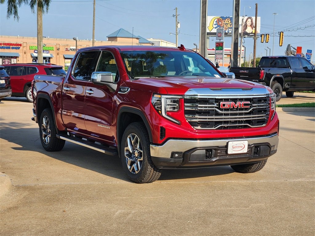 Volcanic Red Tintcoat 2026 GMC Sierra 1500 4D Crew Cab SLT 4WD 10-Speed Automatic EcoTec3 5.3L V8 High Capacity Suspension Package, Preferred Equipment Group 4SA (120-Volt Bed Mounted Power Outlet, 120-Volt Interior Power Outlet, 170 Amp Alternator, 2 Charge/Data USB Ports, 2 Type-C Charge-Only Rear USB Ports, 6-Speaker Audio System Feature, Auto-Locking Rear Differential, Auxiliary External Transmission Oil Cooler, Chrome Header & Chrome Grille Insert Bars, Color-Keyed Carpeting Floor Covering, Deep-Tinted Glass, Electric Rear-Window Defogger, Front Frame-Mounted Black Recovery Hooks, Front Rain-Sensing Wipers, HD Rear Vision Camera, Integrated Trailer Brake Controller, Keyless Open & Start, LED Cargo Area Lighting, Manual Tilt-Wheel & Telescoping Steering Column, OnStar Services Capable, Perimeter Lighting, Power Door Locks, Power Front Passenger Windows w/Express Up/Down, Power Front Windows w/Driver Express Up/Down, Power Rear Windows w/Express Down, Push Button Start, Rear Wheelhouse Liners, Remote Vehicle Starter System, SiriusXM w/360L Trial Subscription, Steering Wheel Audio Controls, Theft Deterrent System (Unauthorized Entry), and Wi-Fi Hotspot Capable), SLT Convenience Package (2 Charge/Data USB Ports Inside Center Console, Electronic Precision Shift, Floor-Mounted Center Console, Front Bucket Seats, Power Rake & Telescoping Steering Column, Premium Bose 7-Speaker Sound System, Ventilated Driver & Front Passenger Seats, and Wireless Charging), SLT Preferred Package (Adaptive Cruise Control, Heated 2nd Row Outboard Seats, Power Sliding Rear Window w/Rear Defogger, and Universal Home Remote), Standard Suspension Package, Texas Edition SLT Premium Package (20 Polished Aluminum Wheels, Chrome Wheel To Wheel Assist Steps, and Texas Edition Badging), Trailering Package (Hitch Guidance), X31 Off-Road Package (Dual Exhaust System, Heavy-Duty Air Filter, Hill Descent Control, Off-Road Suspension, and X31 Hard Badge), 10-Speed Automatic, 4WD, Dark Walnut/Slate Leather, 10-Way Power Driver Seat Adjuster w/Lumbar, 10-Way Power Passenger Seat Adjuster w/Lumbar, 3.23 Rear Axle Ratio, 4-Wheel Disc Brakes, 6 Speakers, ABS brakes, Air Conditioning, All-Weather Floor Liner (LPO), Alloy wheels, AM/FM radio: SiriusXM with 360L, Apple CarPlay/Android Auto, Auto High-beam Headlights, Auto-dimming door mirrors, Auto-dimming Rear-View mirror, Automatic Emergency Braking, Automatic temperature control, Brake assist, Buckle to Drive, Bumpers: chrome, Compass, Delay-off headlights, Driver door bin, Driver Memory, Driver vanity mirror, Dual front impact airbags, Dual front side impact airbags, Electronic Stability Control, Emergency communication system: OnStar, Following Distance Indicator, Forward Collision Alert, Front 40/20/40 Split-Bench Seat, Front anti-roll bar, Front Center Armrest w/Storage, Front dual zone A/C, Front fog lights, Front License Plate Kit, Front Pedestrian Braking, Front reading lights, Front wheel independent suspension, Fully automatic headlights, Heated door mirrors, Heated Driver & Front Outboard Passenger Seating, Heated front seats, Heated steering wheel, Illuminated entry, IntelliBeam Automatic High Beam On/Off, Lane Keep Assist w/Lane Departure Warning, Low tire pressure warning, Memory seat, Navigation System, Occupant sensing airbag, Outside temperature display, Overhead airbag, Overhead console, Panic alarm, Passenger door bin, Passenger vanity mirror, Perf Leather-Appointed Front Outboard Seat Trim, Power door mirrors, Power driver seat, Power passenger seat, Power steering, Power windows, Radio data system, Radio: Premium GMC Infotainment Audio System, Rain sensing wipers, Rear reading lights, Rear seat center armrest, Rear step bumper, Rear window defroster, Remote keyless entry, Security system, Speed control, Speed-sensing steering, Split folding rear seat, Steering wheel mounted audio controls, Tachometer, Telescoping steering wheel, Tilt steering wheel,