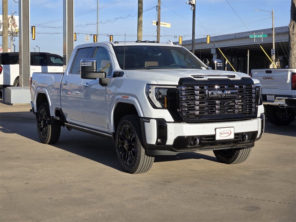 Glacier White Tricoat 2026 GMC Sierra 2500HD 4D Crew Cab Denali Ultimate 4WD 10-Speed Automatic Duramax 6.6L V8 Turbodiesel Gooseneck/5th Wheel Prep Package, Hitch Package, Technology Package (Inside Rearview Auo-Dimming Rear Camera Mirror and Multicolor 15 Diagonal Head-Up Display), X31 Off-Road Package (Hill Descent Control and Off-Road Suspension), 10-Speed Automatic, 4WD, Alpine Umber Leather, 12 Speakers, 120-Volt Bed Mounted Power Outlet, 120-Volt Instrument Panel Power Outlet, 16-Way Power Driver Seat Adjuster with Lumbar, 16-Way Power Passenger Seat Adjuster with Lumbar, 2 Charge-Only Rear USB Ports, 2 Charge/Data USB Ports Inside Center Console, 2 USB Ports, 2-Speed Active Transfer Case, 22 Gloss Black Aluminum Wheels, 220-Amp Alternator, 3.42 Axle Ratio, 4-Wheel Disc Brakes, ABS brakes, Air Conditioning, All-Weather Floor Liners, Alloy wheels, AM/FM radio: SiriusXM with 360L, Apple CarPlay/Android Auto, Auto High-beam Headlights, Auto-dimming door mirrors, Auto-dimming Rear-View mirror, Automatic Emergency Braking, Automatic temperature control, Bed View Camera with Two Trailer Camera Provisions, Block heater, Body Color Wheel Arch Moldings, Bose Premium Series 12-Speaker System, Brake assist, Buckle to Drive, Bumpers: body-color, Compass, Deep-Tinted Glass, Delay-off headlights, Driver door bin, Driver Memory, Driver vanity mirror, Dual front impact airbags, Dual front side impact airbags, Dual Heavy-Duty 70 Amp Battery, Electric Rear-Window Defogger, Electronic Stability Control, Emergency communication system: OnStar, Floor-Mounted Center Console, Following Distance Indicator, Forward Collision Alert, Front anti-roll bar, Front Bucket Seats, Front Center Armrest, Front dual zone A/C, Front fog lights, Front Pedestrian Braking, Front Rain-Sensing Wipers, Front reading lights, Front wheel independent suspension, Full Grain Leather Seat Trim, Fully automatic headlights, Garage door transmitter, Genuine wood dashboard insert, Genuine wood door panel insert, HD Surround Vision, Heads-Up Display, Heated 2nd Row Outboard Seats, Heated door mirrors, Heated Driver and Front Outboard Passenger Seats, Heated front seats, Heated rear seats, Heated steering wheel, Hitch Guidance with Hitch View, Illuminated entry, in-Vehicle Trailering System App, IntelliBeam Automatic High Beam on/Off, Keyless Open and Start, Lane Departure Warning System, Leather steering wheel, LED Cargo Area Lighting, LED Smoked Amber Roof Marker Lamps, Low tire pressure warning, Manual Tilt-Wheel/Telescoping Steering Column, Memory seat, Occupant sensing airbag, OnStar Services Capable, Outside temperature display, Overhead airbag, Overhead console, Panic alarm, Passenger door bin, Passenger vanity mirror, Pickup Box, Power door mirrors, Power driver seat, Power Front Passenger Windows with Express Up/Down, Power moonroof, Power passenger seat, Power Sliding Rear Window with Defogger, Power steering, Power Sunroof, Power windows, Premium audio system: Premium GMC Infotainment System, Push Button Start, Radio: AM/FM Stereo with Premium GMC Infotainment System, Rain sensing wipers, Rear Cross Traffic Alert, Rear reading lights, Rear seat center armrest, Rear step bumper, Rear Wheelhouse Liners, Rear window defroster, Remote keyless entry, Remote Vehicle Starter System, Safety Alert Seat, Security system, Signature Denali Ultimate Grille in Vadar Chrome, SiriusXM with 360L Trial Subscription, Speed control, Speed-sensing steering, Split folding rear seat, Spray-on Pickup Bedliner with GMC Logo, Steering Wheel Audio Controls, Steering wheel mounted audio controls, Tachometer, Telescoping steering wheel, Tilt steering wheel, Traction control, Trailer Cam Provisions and Trailer Viewing Software, Trailer Side Blind Zone Alert, Trailer Tire Pressure Monitor Sensors, Trip computer, Turn signal indicator mirrors, Ultrasonic Front and Rear Park Assist, Unauthorized Entry Theft-Deterrent System, Universal Home Remote,