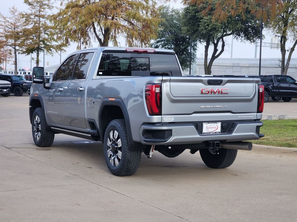 Sterling Metallic 2026 GMC Sierra 2500HD 4D Crew Cab Denali 4WD 10-Speed Automatic Duramax 6.6L V8 Turbodiesel Denali Reserve Package (Power Sunroof), Gooseneck/5th Wheel Prep Package, Technology Package (Multicolor 15 Diagonal Head-Up Display), X31 Off-Road Package (Hill Descent Control and Off-Road Suspension), 10-Speed Automatic, 4WD, Black Leather, 120-Volt Bed Mounted Power Outlet, 120-Volt Instrument Panel Power Outlet, 2 Charge-Only Rear USB Ports, 2 Charge/Data USB Ports Inside Center Console, 2 USB Ports, 2-Speed Active Transfer Case, 4-Wheel Disc Brakes, 7 Speakers, ABS brakes, Air Conditioning, Alloy wheels, AM/FM radio: SiriusXM with 360L, Apple CarPlay/Android Auto, Auto High-beam Headlights, Auto-dimming door mirrors, Auto-dimming Rear-View mirror, Automatic Emergency Braking, Automatic temperature control, Bose Premium 7-Speaker Sound System, Brake assist, Buckle to Drive, Bumpers: body-color, Compass, Deep-Tinted Glass, Delay-off headlights, Driver door bin, Driver Memory, Driver vanity mirror, Dual front impact airbags, Dual front side impact airbags, Electric Rear-Window Defogger, Electronic Stability Control, Emergency communication system: OnStar, Floor-Mounted Center Console, Following Distance Indicator, Forge Perforated Leather-Appointed Front Seat Trim, Forward Collision Alert, Front anti-roll bar, Front Bucket Seats, Front Center Armrest, Front dual zone A/C, Front fog lights, Front Pedestrian Braking, Front Rain-Sensing Wipers, Front reading lights, Front wheel independent suspension, Fully automatic headlights, Garage door transmitter, Genuine wood dashboard insert, Genuine wood door panel insert, HD Surround Vision, Heated 2nd Row Outboard Seats, Heated door mirrors, Heated front seats, Heated rear seats, Heated steering wheel, Heavy-Duty 80 Amp Battery, Illuminated entry, Lane Departure Warning System, LED Cargo Area Lighting, LED Smoked Amber Roof Marker Lamps, Low tire pressure warning, Manual Tilt-Wheel/Telescoping Steering Column, Memory seat, Occupant sensing airbag, OnStar Services Capable, Outside temperature display, Overhead airbag, Overhead console, Panic alarm, Passenger door bin, Passenger vanity mirror, Pickup Box, Polished Exhaust Tip, Power door mirrors, Power driver seat, Power passenger seat, Power steering, Power windows, Power-Retractable Assist Steps, Premium audio system: Premium GMC Infotainment System, Push Button Start, Rain sensing wipers, Rear Cross Traffic Alert, Rear reading lights, Rear seat center armrest, Rear step bumper, Rear Wheelhouse Liners, Rear window defroster, Remote keyless entry, Remote Vehicle Starter System, Safety Alert Seat, Security system, Signature Chrome Denali Grille, Speed control, Speed-sensing steering, Split folding rear seat, Steering Wheel Audio Controls, Steering wheel mounted audio controls, Tachometer, Telescoping steering wheel, Tilt steering wheel, Traction control, Trailer Side Blind Zone Alert, Trip computer, Turn signal indicator mirrors, Unauthorized Entry Theft-Deterrent System, Universal Home Remote, Variably intermittent wipers, Ventilated front seats, Voltmeter, Wheels: 20 Ultra Bright Machined, Wireless Charging, and Wireless Phone Projection.