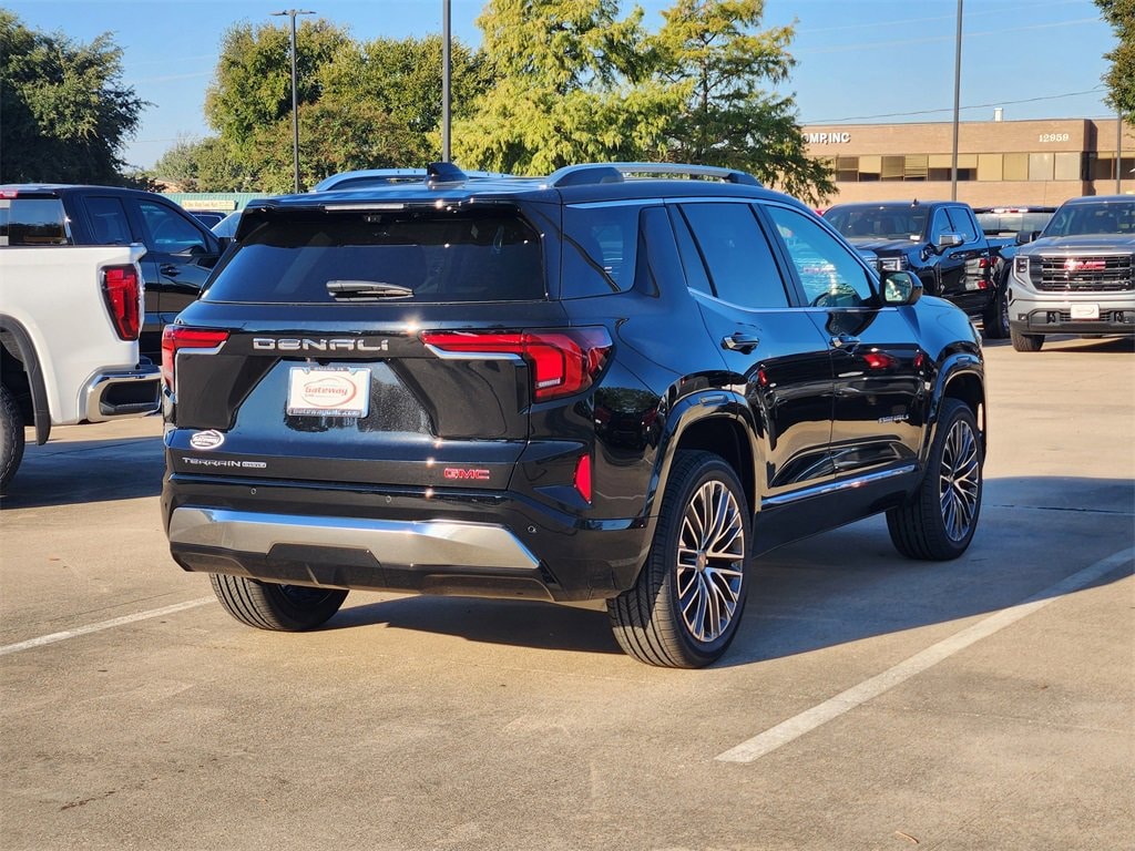 Ebony Twilight Metallic 2026 GMC Terrain 4D Sport Utility Denali AWD 8-Speed Automatic with Overdrive 1.5L DOHC Floor Liner Package (LPO) (All-Weather Cargo Mat (LPO), Front All-Weather Floor Liners (LPO), and Second Row All-Weather Mat (LPO)), License Plate Front Mounting Package, Preferred Equipment Group 5SB, AWD, 2-Way Power Driver Lumbar Seat Adjuster, 3.47 Final Drive Axle Ratio, 4-Wheel Disc Brakes, 6 Speakers, 6-Speaker Audio System Feature, 8-Way Power Driver Seat Adjuster, ABS brakes, Air Conditioning, Alloy wheels, AM/FM radio: SiriusXM, Auto High-beam Headlights, Automatic temperature control, Brake assist, Bumpers: body-color, Compass, Delay-off headlights, Driver & Front Passenger Heated Seats, Driver door bin, Driver vanity mirror, Dual front impact airbags, Dual front side impact airbags, Electronic Stability Control, Emergency communication system: OnStar and GMC connected services capable, Four wheel independent suspension, Front anti-roll bar, Front Bucket Seats, Front Center Armrest, Front dual zone A/C, Front fog lights, Front reading lights, Fully automatic headlights, Garage door transmitter, Heated door mirrors, Heated front seats, Heated rear seats, Heated steering wheel, Illuminated entry, Low tire pressure warning, Memory seat, Navigation System, Occupant sensing airbag, Outside temperature display, Overhead airbag, Overhead console, Panic alarm, Panoramic Power Sunroof w/Sunshade, Passenger door bin, Passenger vanity mirror, Perforated Leather-Appointed Seat Trim, Power door mirrors, Power driver seat, Power Liftgate, Power passenger seat, Power steering, Power windows, Radio data system, Radio: Premium GMC Infotainment System, Rain sensing wipers, Rear air conditioning, Rear anti-roll bar, Rear seat center armrest, Rear window defroster, Rear window wiper, Remote keyless entry, Security system, SiriusXM w/360L Trial Subscription, Speed control, Speed-sensing steering, Split folding rear seat, Spoiler, Sport steering wheel, Steering wheel mounted audio controls, Tachometer, Telescoping steering wheel, Tilt steering wheel, Traction control, Trip computer, Variably intermittent wipers, Ventilated Driver Seat, Ventilated Front Passenger Seat, Ventilated front seats, Wheels: 19 x 7.5 Midnight Silver Aluminum, Wheels: 20 x 8 After Midnight Aluminum, and Wireless Apple CarPlay/Wireless Android Auto.