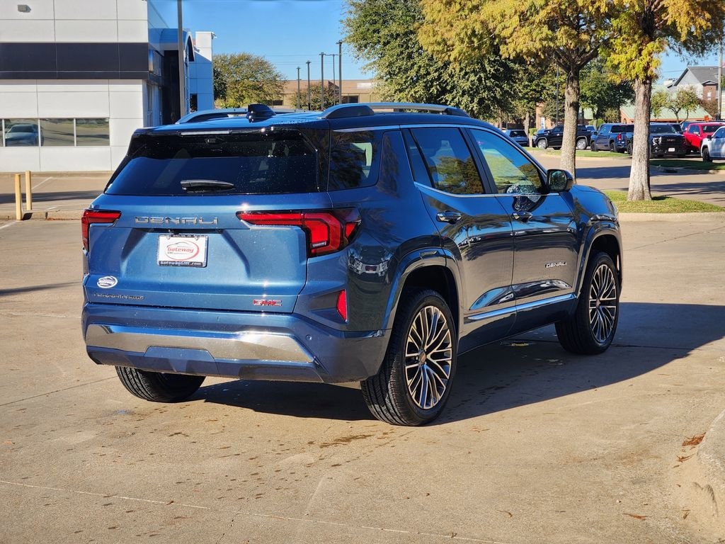 Downpour Metallic 2026 GMC Terrain 4D Sport Utility Denali AWD 8-Speed Automatic with Overdrive 1.5L DOHC AWD, 2-Way Power Driver Lumbar Seat Adjuster, 3.47 Final Drive Axle Ratio, 4-Wheel Disc Brakes, 6 Speakers, 6-Speaker Audio System Feature, 8-Way Power Driver Seat Adjuster, ABS brakes, Air Conditioning, Alloy wheels, AM/FM radio: SiriusXM, Auto High-beam Headlights, Automatic temperature control, Brake assist, Bumpers: body-color, Compass, Delay-off headlights, Driver door bin, Driver vanity mirror, Dual front impact airbags, Dual front side impact airbags, Ebony Twilight Metallic Roof, Ebony Twilight Mirror Caps, Electronic Stability Control, Emergency communication system: OnStar and GMC connected services capable, Four wheel independent suspension, Front anti-roll bar, Front Bucket Seats, Front Center Armrest, Front dual zone A/C, Front fog lights, Front reading lights, Fully automatic headlights, Garage door transmitter, Heated door mirrors, Heated front seats, Heated rear seats, Heated steering wheel, Illuminated entry, Low tire pressure warning, Memory seat, Navigation System, Occupant sensing airbag, Outside temperature display, Overhead airbag, Overhead console, Panic alarm, Passenger door bin, Passenger vanity mirror, Perforated Leather-Appointed Seat Trim, Power door mirrors, Power driver seat, Power Liftgate, Power passenger seat, Power steering, Power windows, Radio data system, Radio: Premium GMC Infotainment System, Rain sensing wipers, Rear air conditioning, Rear anti-roll bar, Rear seat center armrest, Rear window defroster, Rear window wiper, Remote keyless entry, Security system, Speed control, Speed-sensing steering, Split folding rear seat, Spoiler, Sport steering wheel, Steering wheel mounted audio controls, Tachometer, Telescoping steering wheel, Tilt steering wheel, Traction control, Trip computer, Variably intermittent wipers, Ventilated Driver Seat, Ventilated Front Passenger Seat, Ventilated front seats, Wheels: 19 x 7.5 Midnight Silver Aluminum, Wheels: 20 x 8 After Midnight Aluminum, and Wireless Apple CarPlay/Wireless Android Auto.