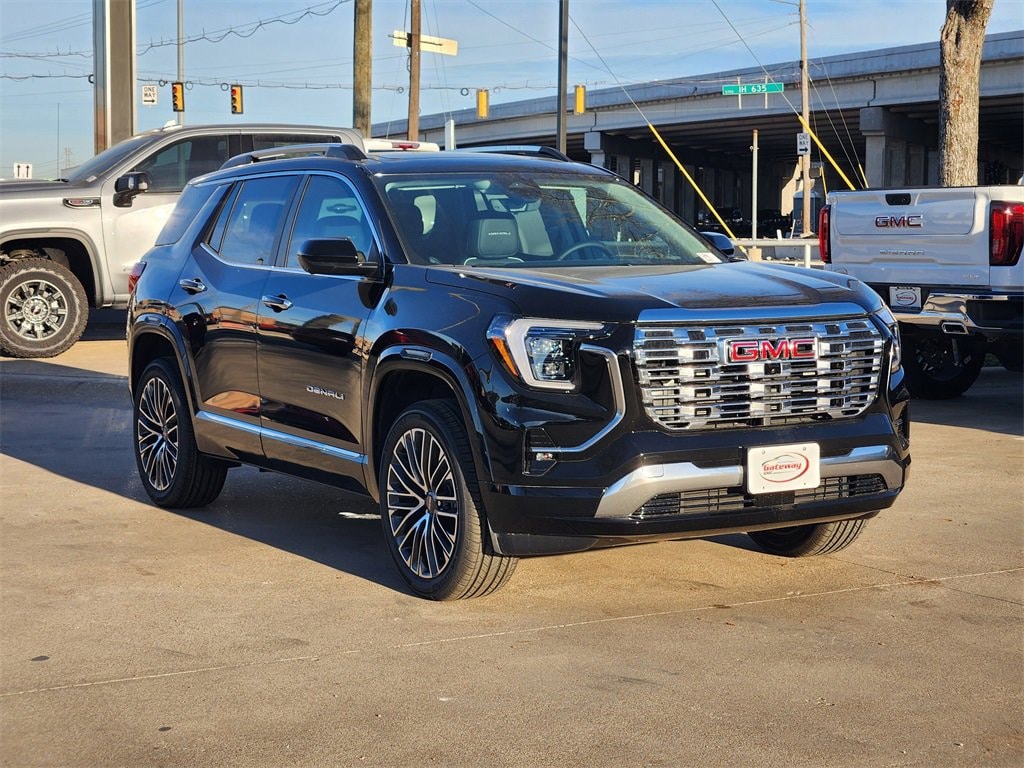 Ebony Twilight Metallic 2026 GMC Terrain 4D Sport Utility Denali AWD 8-Speed Automatic with Overdrive 1.5L DOHC Floor Liner Package (LPO) (All-Weather Cargo Mat (LPO), Front All-Weather Floor Liners (LPO), and Second Row All-Weather Mat (LPO)), AWD, 2-Way Power Driver Lumbar Seat Adjuster, 3.47 Final Drive Axle Ratio, 4-Wheel Disc Brakes, 6 Speakers, 6-Speaker Audio System Feature, 8-Way Power Driver Seat Adjuster, ABS brakes, Air Conditioning, Alloy wheels, AM/FM radio: SiriusXM, Auto High-beam Headlights, Automatic temperature control, Brake assist, Bumpers: body-color, Compass, Delay-off headlights, Driver & Front Passenger Heated Seats, Driver door bin, Driver vanity mirror, Dual front impact airbags, Dual front side impact airbags, Electronic Stability Control, Emergency communication system: OnStar and GMC connected services capable, Four wheel independent suspension, Front anti-roll bar, Front Bucket Seats, Front Center Armrest, Front dual zone A/C, Front fog lights, Front reading lights, Fully automatic headlights, Garage door transmitter, Heated door mirrors, Heated front seats, Heated rear seats, Heated steering wheel, Illuminated entry, Low tire pressure warning, Memory seat, Navigation System, Occupant sensing airbag, Outside temperature display, Overhead airbag, Overhead console, Panic alarm, Panoramic Power Sunroof w/Sunshade, Passenger door bin, Passenger vanity mirror, Perforated Leather-Appointed Seat Trim, Power door mirrors, Power driver seat, Power Liftgate, Power passenger seat, Power steering, Power windows, Radio data system, Radio: Premium GMC Infotainment System, Rain sensing wipers, Rear air conditioning, Rear anti-roll bar, Rear seat center armrest, Rear window defroster, Rear window wiper, Remote keyless entry, Security system, SiriusXM w/360L Trial Subscription, Speed control, Speed-sensing steering, Split folding rear seat, Spoiler, Sport steering wheel, Steering wheel mounted audio controls, Tachometer, Telescoping steering wheel, Tilt steering wheel, Traction control, Trip computer, Variably intermittent wipers, Ventilated Driver Seat, Ventilated Front Passenger Seat, Ventilated front seats, Wheels: 19 x 7.5 Midnight Silver Aluminum, Wheels: 20 x 8 After Midnight Aluminum, and Wireless Apple CarPlay/Wireless Android Auto.