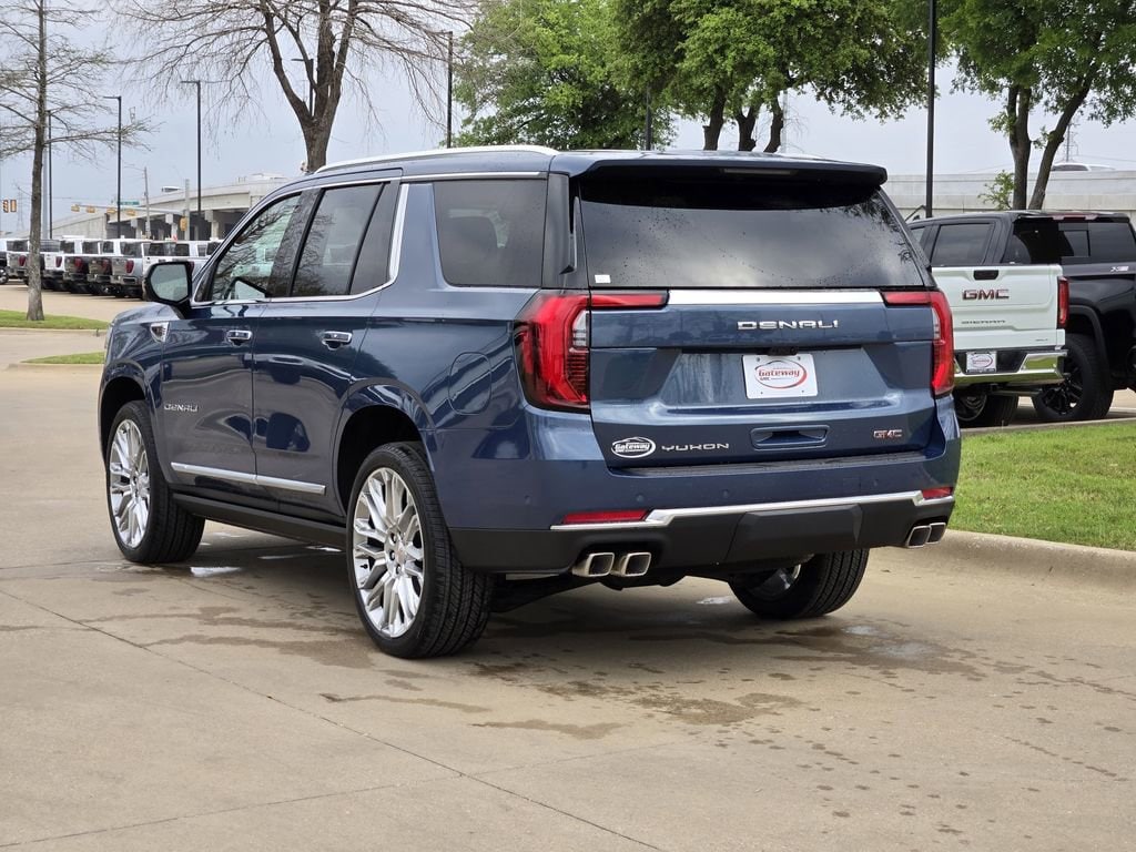Downpour Metallic 2026 GMC Yukon 4D Sport Utility Denali 4WD 10-Speed Automatic with Overdrive EcoTec3 6.2L V8 Advanced Security Package (Glass Breakage Sensor, Theft-Deterrent Alarm System, Vehicle Inclination Sensor, and Vehicle Interior Movement Sensor), Advanced Technology Package (3 Years OnStar One, Driver Attention Assist, Inside Rearview Auo-Dimming Rear Camera Mirror, Rear Seat Media System, and Super Cruise), Denali Reserve Package (Dual-Pane Panoramic Power Sunroof and Power-Retractable Assist Steps), Enhanced Trailering Technology Package (Trailer Camera Provisions, Trailering Assist Guidelines, and Wired Auxiliary Trailer Camera), Max Trailering Package (Blind Zone Steering Assist with Trailering, Extra Capacity Cooling System, Hill Descent Control, Hitch View, Integrated Trailer Brake Controller, and Smart Trailer Integration Indicator), 4WD, 10 Speakers, 15 Diagonal Multi-Color Head-Up Display, 1st and 2nd Rows All-Weather Floor Liners, 3.23 Rear Axle Ratio, 3rd row seats: split-bench, 4-Way Power Driver Lumbar Seat Adjuster, 4-Way Power Front Passenger Lumbar Seat Adjuster, 4-Wheel Disc Brakes, ABS brakes, Adaptive suspension, Air Conditioning, Air Ride Adaptive Suspension, Alloy wheels, AM/FM radio: SiriusXM with 360L, Apple CarPlay/Android Auto, Audio memory, Auto High-beam Headlights, Auto-dimming door mirrors, Auto-dimming Rear-View mirror, Auto-leveling suspension, Automatic temperature control, AutoSense Hands-Free Power Liftgate, Bodyside moldings, Bose 10-Speaker Surround with CenterPoint, Brake assist, Bright Front and Rear Door Sill Plates, Bumpers: body-color, Compass, Delay-off headlights, Driver door bin, Driver vanity mirror, Dual Exhaust System, Dual front impact airbags, Dual front side impact airbags, Electronic Stability Control, Emergency communication system: OnStar and GMC connected services capable, Exterior Parking Camera Rear, Four wheel independent suspension, Front anti-roll bar, Front Bucket Seats, Front Center Armrest, Front dual zone A/C, Front fog lights, Front reading lights, Fully automatic headlights, Galvano Bodyside Moldings, Garage door transmitter, Heads-Up Display, Heated door mirrors, Heated Driver and Front Passenger Seats, Heated front seats, Heated rear seats, Heated steering wheel, Illuminated entry, Low tire pressure warning, Magnetic Ride Control Suspension, Memory seat, Navigation system: GMC Connected Navigation, Occupant sensing airbag, Outside temperature display, Overhead airbag, Overhead console, Panic alarm, Passenger door bin, Passenger vanity mirror, Perforated Heated and Ventilated Driver and Front Passenger Seats, Perforated Leather Seating Surfaces, Power door mirrors, Power driver seat, Power Liftgate, Power passenger seat, Power Release 2nd Row Bucket Seats, Power steering, Power Tilt and Telescopic Steering Column, Power windows, Radio: 16.8 Diagonal Premium GMC Infotainment System, Rain sensing wipers, Rear air conditioning, Rear anti-roll bar, Rear reading lights, Rear window defroster, Rear window wiper, Remote keyless entry, Security system, SiriusXM with 360L, Speed control, Speed-sensing steering, Split folding rear seat, Spoiler, Steering wheel memory, Steering wheel mounted audio controls, Tachometer, Telescoping steering wheel, Tilt steering wheel, Traction control, Trip computer, Turn signal indicator mirrors, Variably intermittent wipers, Ventilated front seats, Voltmeter, Wheel Locks (set of 4), Wheels: 20 x 9 6-Spoke Polished Aluminum, and Wheels: 24 x 9.5 Selective Machined and Painted.