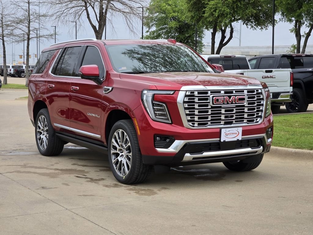 Volcanic Red Tintcoat 2026 GMC Yukon 4D Sport Utility Denali 4WD 10-Speed Automatic with Overdrive EcoTec3 6.2L V8 Advanced Security Package (Glass Breakage Sensor, Theft-Deterrent Alarm System, Vehicle Inclination Sensor, and Vehicle Interior Movement Sensor), Advanced Technology Package (3 Years OnStar One, Driver Attention Assist, Inside Rearview Auo-Dimming Rear Camera Mirror, Rear Seat Media System, and Super Cruise), Denali Reserve Package (Dual-Pane Panoramic Power Sunroof and Power-Retractable Assist Steps), Enhanced Trailering Technology Package (Trailer Camera Provisions, Trailering Assist Guidelines, and Wired Auxiliary Trailer Camera), License Plate Front Mounting Package, Max Trailering Package (Blind Zone Steering Assist with Trailering, Extra Capacity Cooling System, Hill Descent Control, Hitch View, Integrated Trailer Brake Controller, and Smart Trailer Integration Indicator), Preferred Equipment Group 5SA (15 Diagonal Multi-Color Head-Up Display, 4-Way Power Driver Lumbar Seat Adjuster, 4-Way Power Front Passenger Lumbar Seat Adjuster, AutoSense Hands-Free Power Liftgate, Bright Front and Rear Door Sill Plates, Dual Exhaust System, Galvano Bodyside Moldings, Magnetic Ride Control Suspension, Perforated Heated and Ventilated Driver and Front Passenger Seats, Power Release 2nd Row Bucket Seats, Power Tilt and Telescopic Steering Column, and Wheels: 20 x 9 6-Spoke Polished Aluminum), 4WD, 10 Speakers, 3.23 Rear Axle Ratio, 3rd row seats: split-bench, 4-Wheel Disc Brakes, ABS brakes, Adaptive suspension, Air Conditioning, Alloy wheels, AM/FM radio: SiriusXM with 360L, Apple CarPlay/Android Auto, Audio memory, Auto High-beam Headlights, Auto-dimming door mirrors, Auto-dimming Rear-View mirror, Auto-leveling suspension, Automatic temperature control, Bodyside moldings, Bose 10-Speaker Surround with CenterPoint, Brake assist, Bumpers: body-color, Compass, Delay-off headlights, Driver door bin, Driver vanity mirror, Dual front impact airbags, Dual front side impact airbags, Electronic Stability Control, Emergency communication system: OnStar and GMC connected services capable, Exterior Parking Camera Rear, Four wheel independent suspension, Front anti-roll bar, Front Bucket Seats, Front Center Armrest, Front dual zone A/C, Front fog lights, Front reading lights, Fully automatic headlights, Garage door transmitter, Heads-Up Display, Heated door mirrors, Heated Driver and Front Passenger Seats, Heated front seats, Heated rear seats, Heated steering wheel, Illuminated entry, Low tire pressure warning, Memory seat, Navigation system: GMC Connected Navigation, Occupant sensing airbag, Outside temperature display, Overhead airbag, Overhead console, Panic alarm, Passenger door bin, Passenger vanity mirror, Perforated Leather Seating Surfaces, Power door mirrors, Power driver seat, Power Liftgate, Power passenger seat, Power steering, Power windows, Radio: 16.8 Diagonal Premium GMC Infotainment System, Rain sensing wipers, Rear air conditioning, Rear anti-roll bar, Rear reading lights, Rear window defroster, Rear window wiper, Remote keyless entry, Security system, SiriusXM with 360L, Speed control, Speed-sensing steering, Split folding rear seat, Spoiler, Steering wheel memory, Steering wheel mounted audio controls, Tachometer, Telescoping steering wheel, Tilt steering wheel, Traction control, Trip computer, Turn signal indicator mirrors, Variably intermittent wipers, Ventilated front seats, Voltmeter, Wheel Locks (set of 4), and Wheels: 22 x 9 Ultra-Bright Machined.