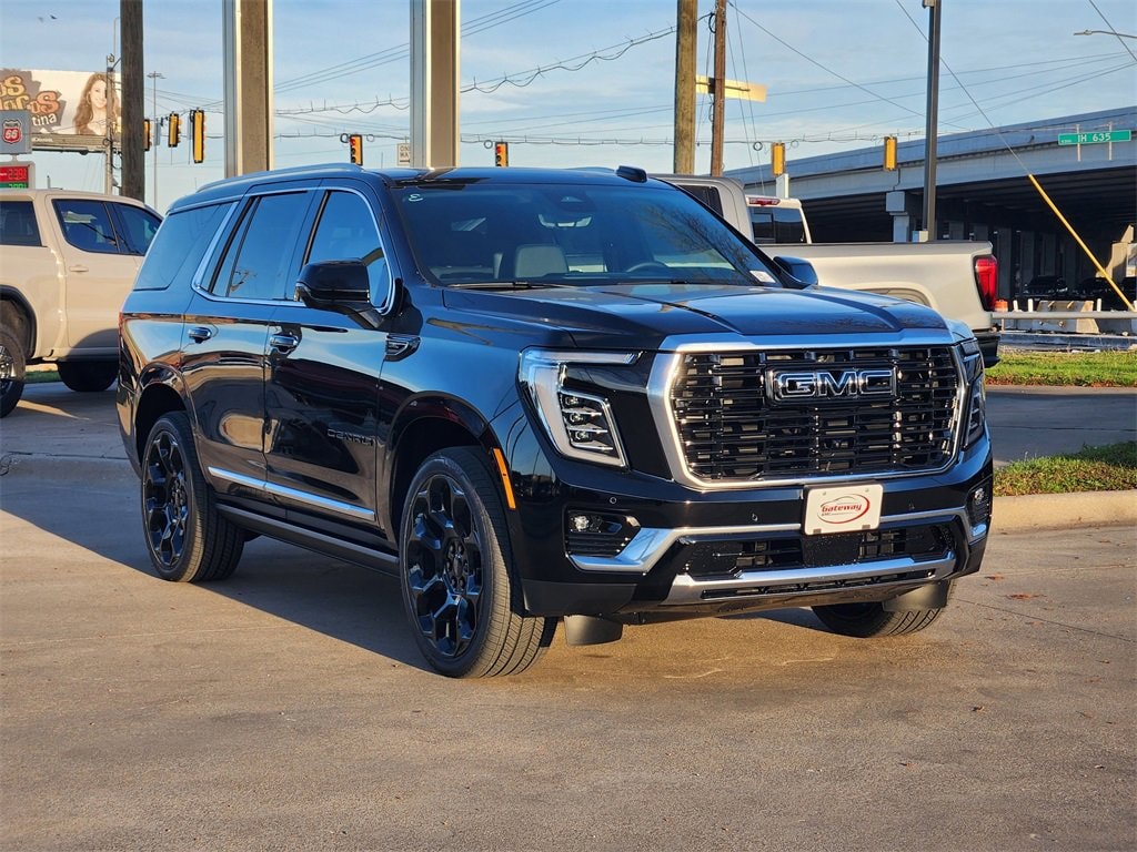Onyx Black 2026 GMC Yukon 4D Sport Utility Denali 4WD 10-Speed Automatic with Overdrive 3.0L I6 Advanced Security Package (Glass Breakage Sensor, Theft-Deterrent Alarm System, Vehicle Inclination Sensor, and Vehicle Interior Movement Sensor), Advanced Technology Package (3 Years OnStar One, Driver Attention Assist, Inside Rearview Auo-Dimming Rear Camera Mirror, Rear Seat Media System, and Super Cruise), Denali Reserve Package (Dual-Pane Panoramic Power Sunroof and Power-Retractable Assist Steps), Denali Sport Nightfall Edition (24 Black Wheels, Black GMC Emblems, Black Mesh Grille, Black Mirror Caps, Black Nameplates, and Wheels: 24 x 9.5 Steel Interim), Enhanced Trailering Technology Package (Trailer Camera Provisions, Trailering Assist Guidelines, and Wired Auxiliary Trailer Camera), Max Trailering Package (Blind Zone Steering Assist with Trailering, Extra Capacity Cooling System, Hill Descent Control, Hitch View, Integrated Trailer Brake Controller, and Smart Trailer Integration Indicator), 4WD, 10 Speakers, 15 Diagonal Multi-Color Head-Up Display, 1st and 2nd Rows All-Weather Floor Liners, 3.23 Rear Axle Ratio, 3rd row seats: split-bench, 4-Way Power Driver Lumbar Seat Adjuster, 4-Way Power Front Passenger Lumbar Seat Adjuster, 4-Wheel Disc Brakes, ABS brakes, Adaptive suspension, Air Conditioning, Air Ride Adaptive Suspension, Alloy wheels, AM/FM radio: SiriusXM with 360L, Apple CarPlay/Android Auto, Audio memory, Auto High-beam Headlights, Auto-dimming door mirrors, Auto-dimming Rear-View mirror, Auto-leveling suspension, Automatic temperature control, AutoSense Hands-Free Power Liftgate, Bodyside moldings, Bose 10-Speaker Surround with CenterPoint, Brake assist, Bright Front and Rear Door Sill Plates, Bumpers: body-color, Compass, Delay-off headlights, Driver door bin, Driver vanity mirror, Dual Exhaust System, Dual front impact airbags, Dual front side impact airbags, Electronic Stability Control, Emergency communication system: OnStar and GMC connected services capable, Engine Block Heater, Exterior Parking Camera Rear, Four wheel independent suspension, Front anti-roll bar, Front Bucket Seats, Front Center Armrest, Front dual zone A/C, Front fog lights, Front reading lights, Fully automatic headlights, Galvano Bodyside Moldings, Garage door transmitter, Heads-Up Display, Heated door mirrors, Heated Driver and Front Passenger Seats, Heated front seats, Heated rear seats, Heated steering wheel, Illuminated entry, Low tire pressure warning, Magnetic Ride Control Suspension, Memory seat, Navigation system: GMC Connected Navigation, Occupant sensing airbag, Outside temperature display, Overhead airbag, Overhead console, Panic alarm, Passenger door bin, Passenger vanity mirror, Perforated Heather and Ventilated Driver and Front Passenger Seats, Perforated Leather Seating Surfaces, Power door mirrors, Power driver seat, Power Liftgate, Power passenger seat, Power Release 2nd Row Bucket Seats, Power steering, Power Tilt and Telescopic Steering Column, Power windows, Radio: 16.8 Diagonal Premium GMC Infotainment System, Rain sensing wipers, Rear air conditioning, Rear anti-roll bar, Rear reading lights, Rear window defroster, Rear window wiper, Remote keyless entry, Security system, SiriusXM with 360L, Speed control, Speed-sensing steering, Split folding rear seat, Spoiler, Steering wheel memory, Steering wheel mounted audio controls, Tachometer, Telescoping steering wheel, Tilt steering wheel, Traction control, Trip computer, Turn signal indicator mirrors, Variably intermittent wipers, Ventilated front seats, Voltmeter, and Wheels: 20 x 9 6-Spoke Polished Aluminum.