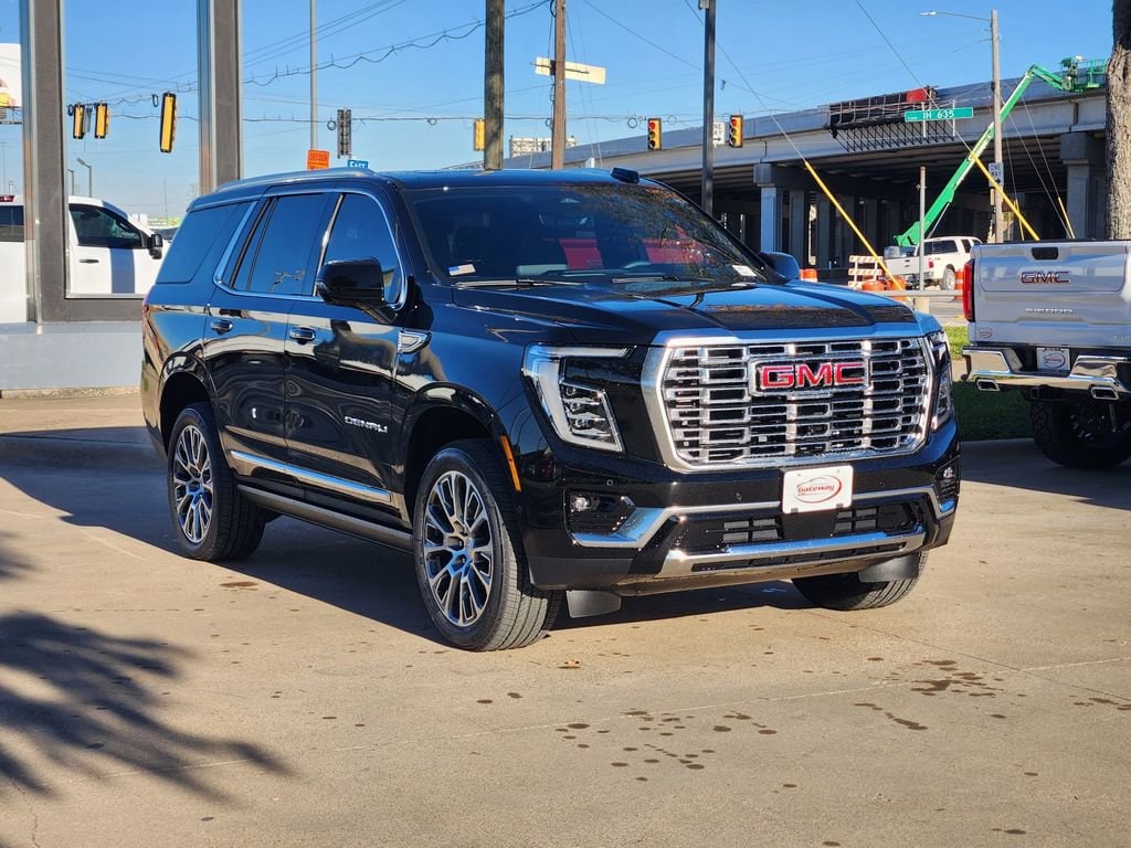 Onyx Black 2026 GMC Yukon 4D Sport Utility Denali RWD 10-Speed Automatic with Overdrive EcoTec3 6.2L V8 Advanced Security Package (Glass Breakage Sensor, Theft-Deterrent Alarm System, Vehicle Inclination Sensor, and Vehicle Interior Movement Sensor), Advanced Technology Package (Driver Attention Assist, Rear Seat Media System, and Super Cruise), Denali Reserve Package (Dual-Pane Panoramic Power Sunroof and Power-Retractable Assist Steps), Enhanced Trailering Technology Package (Trailer Camera Provisions and Trailering Assist Guidelines), License Plate Front Mounting Package, Max Trailering Package (Extra Capacity Cooling System, Hitch View, Integrated Trailer Brake Controller, and Smart Trailer Integration Indicator), Preferred Equipment Group 5SA (15 Diagonal Multi-Color Head-Up Display, 4-Way Power Driver Lumbar Seat Adjuster, 4-Way Power Front Passenger Lumbar Seat Adjuster, AutoSense Hands-Free Power Liftgate, Dual Exhaust System, Galvano Bodyside Moldings, Magnetic Ride Control Suspension, Power Release 2nd Row Bucket Seats, and Wheels: 20 x 9 6-Spoke Polished Aluminum), 10 Speakers, 3.23 Rear Axle Ratio, 3rd row seats: split-bench, 4-Wheel Disc Brakes, ABS brakes, Adaptive suspension, Air Conditioning, Alloy wheels, AM/FM radio: SiriusXM with 360L, Apple CarPlay/Android Auto, Audio memory, Auto High-beam Headlights, Auto-dimming door mirrors, Auto-dimming Rear-View mirror, Auto-leveling suspension, Automatic temperature control, Bodyside moldings, Brake assist, Bumpers: body-color, Compass, Delay-off headlights, Driver door bin, Driver vanity mirror, Dual front impact airbags, Dual front side impact airbags, Electronic Stability Control, Emergency communication system: OnStar and GMC connected services capable, Exterior Parking Camera Rear, Four wheel independent suspension, Front anti-roll bar, Front Bucket Seats, Front Center Armrest, Front dual zone A/C, Front fog lights, Front reading lights, Fully automatic headlights, Garage door transmitter, Heads-Up Display, Heated door mirrors, Heated front seats, Heated rear seats, Heated steering wheel, Illuminated entry, Low tire pressure warning, Memory seat, Navigation system: GMC Connected Navigation, Occupant sensing airbag, Outside temperature display, Overhead airbag, Overhead console, Panic alarm, Passenger door bin, Passenger vanity mirror, Perforated Leather Seating Surfaces, Power door mirrors, Power driver seat, Power Liftgate, Power passenger seat, Power steering, Power windows, Rain sensing wipers, Rear air conditioning, Rear anti-roll bar, Rear reading lights, Rear window defroster, Rear window wiper, Remote keyless entry, Security system, Speed control, Speed-sensing steering, Split folding rear seat, Spoiler, Steering wheel memory, Steering wheel mounted audio controls, Tachometer, Telescoping steering wheel, Tilt steering wheel, Traction control, Trip computer, Turn signal indicator mirrors, Variably intermittent wipers, Ventilated front seats, and Voltmeter. Price includes: Discounts Available to Everyone
