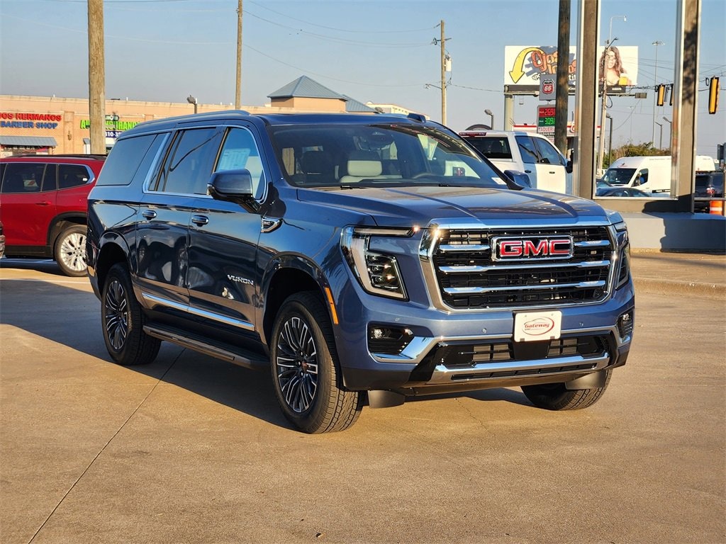 Downpour Metallic 2026 GMC Yukon XL 4D Sport Utility Elevation RWD 10-Speed Automatic with Overdrive EcoTec3 5.3L V8 ABS brakes, Active Cruise Control, Alloy wheels, Compass, Electronic Stability Control, Front dual zone A/C, Heated door mirrors, Heated Driver & Front Passenger Seats, Heated front seats, Heated rear seats, Illuminated entry, Low tire pressure warning, Power Liftgate, Remote keyless entry, Traction control, 10 Speakers, 3.23 Rear Axle Ratio, 3rd row seats: split-bench, 4-Wheel Disc Brakes, Air Conditioning, AM/FM radio: SiriusXM with 360L, Apple CarPlay/Android Auto, Audio memory, Auto High-beam Headlights, Auto-dimming door mirrors, Auto-dimming Rear-View mirror, Automatic temperature control, Bodyside moldings, Bose 10-Speaker Surround w/CenterPoint, Brake assist, Bumpers: body-color, CoreTec/Perforated Leather-Appointed Seating, Delay-off headlights, Driver door bin, Driver vanity mirror, Dual front impact airbags, Dual front side impact airbags, Emergency communication system: OnStar and GMC connected services capable, Exterior Parking Camera Rear, Four wheel independent suspension, Front anti-roll bar, Front Bucket Seats, Front Center Armrest, Front fog lights, Front reading lights, Fully automatic headlights, Garage door transmitter, Heated steering wheel, Memory seat, Navigation system: GMC Connected Navigation, Occupant sensing airbag, Outside temperature display, Overhead airbag, Overhead console, Panic alarm, Passenger door bin, Passenger vanity mirror, Power door mirrors, Power driver seat, Power passenger seat, Power steering, Power windows, Premium Smooth Ride Suspension, Radio: 16.8 Diagonal Premium GMC Infotainment Sys, Rain sensing wipers, Rear air conditioning, Rear anti-roll bar, Rear reading lights, Rear seat center armrest, Rear window defroster, Rear window wiper, Security system, SiriusXM w/360L, Speed control, Speed-sensing steering, Split folding rear seat, Spoiler, Steering wheel mounted audio controls, Tachometer, Telescoping steering wheel, Tilt steering wheel, Trip computer, Turn signal indicator mirrors, Variably intermittent wipers, Voltmeter, and Wheels: 20 x 9 Machined & Painted.