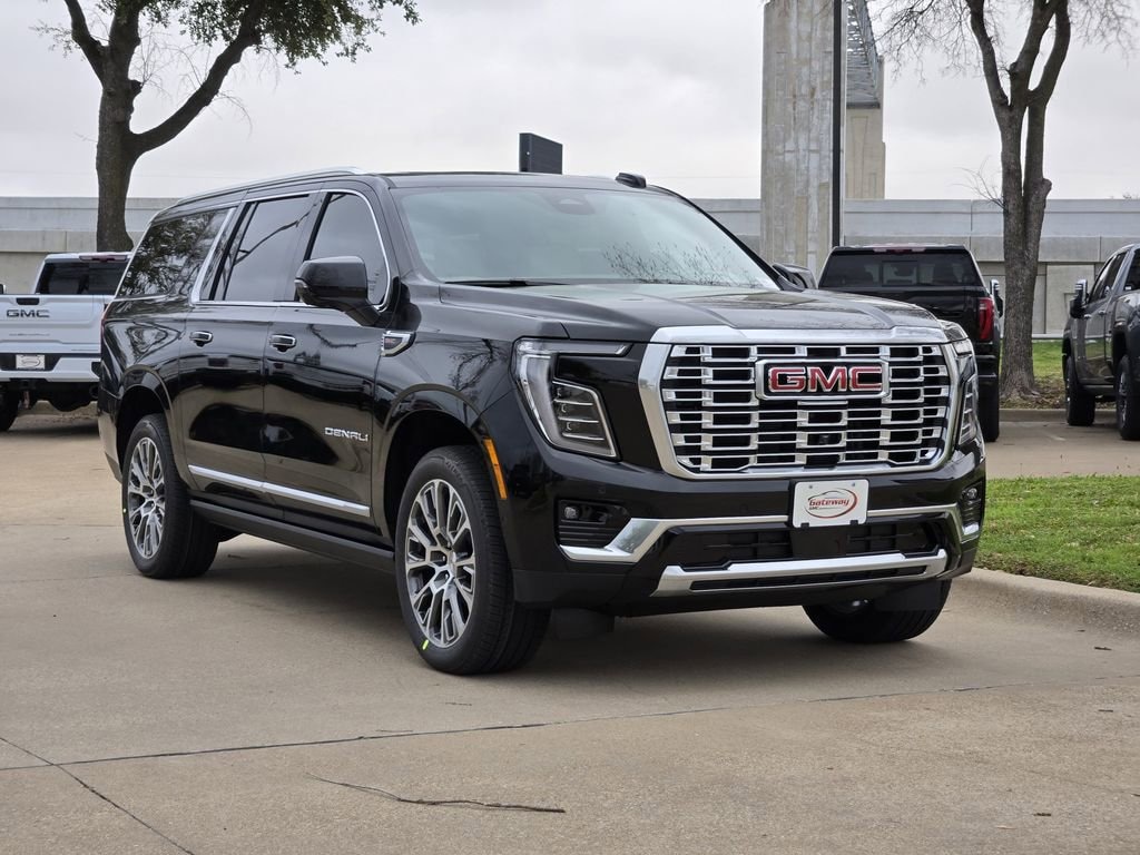Onyx Black 2026 GMC Yukon XL 4D Sport Utility Denali 4WD 10-Speed Automatic with Overdrive EcoTec3 6.2L V8 Advanced Security Package (Glass Breakage Sensor, Theft-Deterrent Alarm System, Vehicle Inclination Sensor, and Vehicle Interior Movement Sensor), Advanced Technology Package (3 Years OnStar One, Driver Attention Assist, Inside Rearview Auo-Dimming Rear Camera Mirror, Rear Seat Media System, and Super Cruise), Denali Reserve Package (Dual-Pane Panoramic Power Sunroof and Power-Retractable Assist Steps), Enhanced Trailering Technology Package (Trailer Camera Provisions, Trailering Assist Guidelines, and Wired Auxiliary Trailer Camera), Max Trailering Package (Blind Zone Steering Assist with Trailering, Extra Capacity Cooling System, Hill Descent Control, Hitch View, Integrated Trailer Brake Controller, and Smart Trailer Integration Indicator), 4WD, 10 Speakers, 15 Diagonal Multi-Color Head-Up Display, 1st and 2nd Rows All-Weather Floor Liners, 3.23 Rear Axle Ratio, 3rd row seats: split-bench, 4-Way Power Driver Lumbar Seat Adjuster, 4-Way Power Front Passenger Lumbar Seat Adjuster, 4-Wheel Disc Brakes, ABS brakes, Adaptive suspension, Air Conditioning, Air Ride Adaptive Suspension, Alloy wheels, AM/FM radio: SiriusXM with 360L, Apple CarPlay/Android Auto, Audio memory, Auto High-beam Headlights, Auto-dimming door mirrors, Auto-dimming Rear-View mirror, Auto-leveling suspension, Automatic temperature control, AutoSense Hands-Free Power Liftgate, Bodyside moldings, Bose 10-Speaker Surround with CenterPoint, Brake assist, Bright Front and Rear Door Sill Plates, Bumpers: body-color, Compass, Delay-off headlights, Driver door bin, Driver vanity mirror, Dual Exhaust System, Dual front impact airbags, Dual front side impact airbags, Electronic Stability Control, Emergency communication system: OnStar and GMC connected services capable, Exterior Parking Camera Rear, Four wheel independent suspension, Front anti-roll bar, Front Bucket Seats, Front Center Armrest, Front dual zone A/C, Front fog lights, Front reading lights, Fully automatic headlights, Galvano Bodyside Moldings, Garage door transmitter, Heads-Up Display, Heated door mirrors, Heated Driver and Front Passenger Seats, Heated front seats, Heated rear seats, Heated steering wheel, Illuminated entry, Low tire pressure warning, Magnetic Ride Control Suspension, Memory seat, Navigation system: GMC Connected Navigation, Occupant sensing airbag, Outside temperature display, Overhead airbag, Overhead console, Panic alarm, Passenger door bin, Passenger vanity mirror, Perforated Heated and Ventilated Driver and Front Passenger Seats, Perforated Leather Seating Surfaces, Power door mirrors, Power driver seat, Power Liftgate, Power passenger seat, Power Release 2nd Row Bucket Seats, Power steering, Power Tilt and Telescopic Steering Column, Power windows, Radio: 16.8 Diagonal Premium GMC Infotainment System, Rain sensing wipers, Rear air conditioning, Rear anti-roll bar, Rear reading lights, Rear window defroster, Rear window wiper, Remote keyless entry, Security system, SiriusXM with 360L, Speed control, Speed-sensing steering, Split folding rear seat, Spoiler, Steering wheel memory, Steering wheel mounted audio controls, Tachometer, Telescoping steering wheel, Tilt steering wheel, Traction control, Trip computer, Turn signal indicator mirrors, Variably intermittent wipers, Ventilated front seats, Voltmeter, and Wheels: 20 x 9 6-Spoke Polished Aluminum.