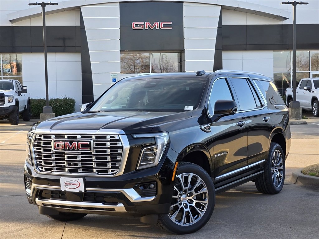 Onyx Black 2026 GMC Yukon 4D Sport Utility Denali 4WD 10-Speed Automatic with Overdrive EcoTec3 6.2L V8 Sun and Power Step Package (Dual-Pane Panoramic Power Sunroof and Power-Retractable Assist Steps), 4WD, 10 Speakers, 15 Diagonal Multi-Color Head-Up Display, 1st and 2nd Rows All-Weather Floor Liners, 3 Years OnStar One, 3.23 Rear Axle Ratio, 3rd row seats: split-bench, 4-Way Power Driver Lumbar Seat Adjuster, 4-Way Power Front Passenger Lumbar Seat Adjuster, 4-Wheel Disc Brakes, ABS brakes, Adaptive suspension, Air Conditioning, Alloy wheels, AM/FM radio: SiriusXM with 360L, Apple CarPlay/Android Auto, Audio memory, Auto High-beam Headlights, Auto-dimming door mirrors, Auto-dimming Rear-View mirror, Auto-leveling suspension, Automatic temperature control, AutoSense Hands-Free Power Liftgate, Bodyside moldings, Bose 10-Speaker Surround with CenterPoint, Brake assist, Bright Front and Rear Door Sill Plates, Bumpers: body-color, Compass, Delay-off headlights, Driver door bin, Driver vanity mirror, Dual Exhaust System, Dual front impact airbags, Dual front side impact airbags, Electronic Stability Control, Emergency communication system: OnStar and GMC connected services capable, Exterior Parking Camera Rear, Four wheel independent suspension, Front anti-roll bar, Front Bucket Seats, Front Center Armrest, Front dual zone A/C, Front fog lights, Front reading lights, Fully automatic headlights, Galvano Bodyside Moldings, Garage door transmitter, Heads-Up Display, Heated door mirrors, Heated Driver and Front Passenger Seats, Heated front seats, Heated rear seats, Heated steering wheel, Illuminated entry, Low tire pressure warning, Magnetic Ride Control Suspension, Memory seat, Navigation system: GMC Connected Navigation, Occupant sensing airbag, Outside temperature display, Overhead airbag, Overhead console, Panic alarm, Passenger door bin, Passenger vanity mirror, Perforated Heather and Ventilated Driver and Front Passenger Seats, Perforated Leather Seating Surfaces, Power door mirrors, Power driver seat, Power Liftgate, Power passenger seat, Power Release 2nd Row Bucket Seats, Power steering, Power Tilt and Telescopic Steering Column, Power windows, Radio: 16.8 Diagonal Premium GMC Infotainment System, Rain sensing wipers, Rear air conditioning, Rear anti-roll bar, Rear reading lights, Rear window defroster, Rear window wiper, Remote keyless entry, Security system, SiriusXM with 360L, Speed control, Speed-sensing steering, Split folding rear seat, Spoiler, Steering wheel memory, Steering wheel mounted audio controls, Tachometer, Telescoping steering wheel, Tilt steering wheel, Traction control, Trip computer, Turn signal indicator mirrors, Variably intermittent wipers, Ventilated front seats, Voltmeter, Wheel Locks (set of 4), Wheels: 20 x 9 6-Spoke Polished Aluminum, and Wheels: 22 x 9 Ultra-Bright Machined.