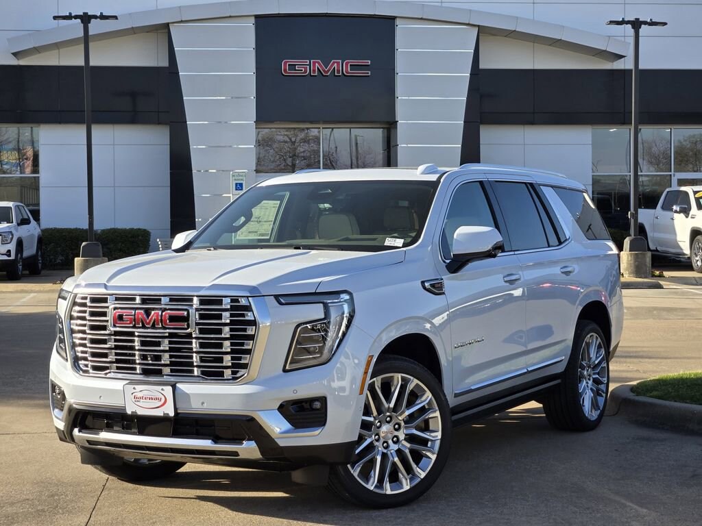 Glacier White Tricoat 2026 GMC Yukon 4D Sport Utility Denali 4WD 10-Speed Automatic with Overdrive EcoTec3 6.2L V8 Advanced Security Package (Glass Breakage Sensor, Theft-Deterrent Alarm System, Vehicle Inclination Sensor, and Vehicle Interior Movement Sensor), Advanced Technology Package (3 Years OnStar One, Driver Attention Assist, Inside Rearview Auo-Dimming Rear Camera Mirror, Rear Seat Media System, and Super Cruise), Denali Reserve Package (Dual-Pane Panoramic Power Sunroof and Power-Retractable Assist Steps), Enhanced Trailering Technology Package (Trailer Camera Provisions, Trailering Assist Guidelines, and Wired Auxiliary Trailer Camera), Max Trailering Package (Blind Zone Steering Assist with Trailering, Extra Capacity Cooling System, Hill Descent Control, Hitch View, Integrated Trailer Brake Controller, and Smart Trailer Integration Indicator), 4WD, 10 Speakers, 15 Diagonal Multi-Color Head-Up Display, 1st and 2nd Rows All-Weather Floor Liners, 3.23 Rear Axle Ratio, 3rd row seats: split-bench, 4-Way Power Driver Lumbar Seat Adjuster, 4-Way Power Front Passenger Lumbar Seat Adjuster, 4-Wheel Disc Brakes, ABS brakes, Adaptive suspension, Air Conditioning, Air Ride Adaptive Suspension, Alloy wheels, AM/FM radio: SiriusXM with 360L, Apple CarPlay/Android Auto, Audio memory, Auto High-beam Headlights, Auto-dimming door mirrors, Auto-dimming Rear-View mirror, Auto-leveling suspension, Automatic temperature control, AutoSense Hands-Free Power Liftgate, Bodyside moldings, Bose 10-Speaker Surround with CenterPoint, Brake assist, Bright Front and Rear Door Sill Plates, Bumpers: body-color, Compass, Delay-off headlights, Driver door bin, Driver vanity mirror, Dual Exhaust System, Dual front impact airbags, Dual front side impact airbags, Electronic Stability Control, Emergency communication system: OnStar and GMC connected services capable, Exterior Parking Camera Rear, Four wheel independent suspension, Front anti-roll bar, Front Bucket Seats, Front Center Armrest, Front dual zone A/C, Front fog lights, Front reading lights, Fully automatic headlights, Galvano Bodyside Moldings, Garage door transmitter, Heads-Up Display, Heated door mirrors, Heated Driver and Front Passenger Seats, Heated front seats, Heated rear seats, Heated steering wheel, Illuminated entry, Low tire pressure warning, Magnetic Ride Control Suspension, Memory seat, Navigation system: GMC Connected Navigation, Occupant sensing airbag, Outside temperature display, Overhead airbag, Overhead console, Panic alarm, Passenger door bin, Passenger vanity mirror, Perforated Heated and Ventilated Driver and Front Passenger Seats, Perforated Leather Seating Surfaces, Power door mirrors, Power driver seat, Power Liftgate, Power passenger seat, Power Release 2nd Row Bucket Seats, Power steering, Power Tilt and Telescopic Steering Column, Power windows, Radio: 16.8 Diagonal Premium GMC Infotainment System, Rain sensing wipers, Rear air conditioning, Rear anti-roll bar, Rear reading lights, Rear window defroster, Rear window wiper, Remote keyless entry, Security system, SiriusXM with 360L, Speed control, Speed-sensing steering, Split folding rear seat, Spoiler, Steering wheel memory, Steering wheel mounted audio controls, Tachometer, Telescoping steering wheel, Tilt steering wheel, Traction control, Trip computer, Turn signal indicator mirrors, Variably intermittent wipers, Ventilated front seats, Voltmeter, Wheel Locks (set of 4), Wheels: 20 x 9 6-Spoke Polished Aluminum, and Wheels: 24 x 9.5 Selective Machined and Painted.