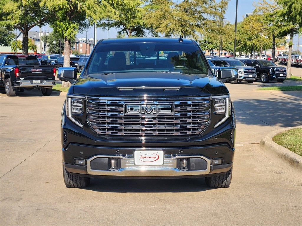 Onyx Black 2025 GMC Sierra 1500 4D Crew Cab Denali Ultimate 4WD 10-Speed Automatic EcoTec3 6.2L V8 Preferred Equipment Group 5SB (120-Volt Bed Mounted Power Outlet, 120-Volt Interior Power Outlet, 2 Charge/Data USB Ports Inside Center Console, 2 Type-C Charge-Only Rear USB Ports, 2 USB Ports, Auto-Locking Rear Differential, Bed View Camera, Bose Premium Series w/12-Speaker System, Chrome Recovery Hooks, Color-Keyed Carpeting Floor Covering, Deep-Tinted Glass, Electric Rear-Window Defogger, Floor-Mounted Center Console, Front Rain-Sensing Wipers, HD Surround Vision, Heated 2nd Row Outboard Seats, Heated Driver & Front Outboard Passenger Seating, Heavy-Duty Air Filter, High Gloss Black Header w/Signature Denali Grille, Hill Descent Control, Hitch View, In-Vehicle Trailering System App, Integrated Trailer Brake Controller, Keyless Open & Start, LED Cargo Area Lighting, Multicolor 15 Diagonal Head-Up Display, MultiPro Tailgate Audio System by Kicker (LPO), OnStar Services Capable, Perimeter Lighting, Power Door Locks, Power Front Passenger Windows w/Express Up/Down, Power Front Windows w/Driver Express Up/Down, Power Rake & Telescoping Steering Column, Power Rear Windows w/Express Down, Power Sliding Rear Window w/Rear Defogger, Power Sunroof, Push Button Start, Rear Cross Traffic Braking, Rear Pedestrian Detection, Rear Wheelhouse Liners, Remote Vehicle Starter System, SiriusXM w/360L Trial Subscription, Spray-On Pickup Bedliner w/GMC Logo, Steering Wheel Audio Controls, Theft Deterrent System (Unauthorized Entry), Trailer Camera Provisions, Trailer Side Blind Zone Alert, Trailer Tire Pressure Monitor System, Ultrasonic Front & Rear Park Assist, Universal Home Remote, Ventilated Driver & Front Passenger Seats, Wi-Fi Hotspot Capable, and Wireless Charging), Trailering Package (Hitch Guidance), 10-Speed Automatic, 4WD, Alpine Umber Leather, 12 Speakers, 16-Way Power Driver Seat Adjuster w/Lumbar, 16-Way Power Passenger Seat Adjuster w/Lumbar, 170 Amp Alternator, 3.23 Rear Axle Ratio, 4-Wheel Disc Brakes, ABS brakes, Adaptive suspension, Air Conditioning, Alloy wheels, AM/FM radio: SiriusXM with 360L, Apple CarPlay/Android Auto, Auto High-beam Headlights, Auto-dimming door mirrors, Auto-dimming Rear-View mirror, Automatic temperature control, Brake assist, Buckle to Drive, Bumpers: body-color, Carbon Fiber Composite Bed, Compass, Console-Mounted Safe (LPO), Delay-off headlights, Denali Premium Suspension w/Adaptive Ride Control, Driver door bin, Driver Memory, Driver vanity mirror, Dual Active Exhaust, Dual front impact airbags, Dual front side impact airbags, Electronic Stability Control, Emergency communication system: OnStar, Enhanced Automatic Emergency Braking, Following Distance Indicator, Forward Collision Alert, Front anti-roll bar, Front Bucket Seats, Front Center Armrest, Front dual zone A/C, Front fog lights, Front License Plate Kit, Front Pedestrian Braking, Front reading lights, Front wheel independent suspension, Full Grain Leather Seat Trim, Fully automatic headlights, Garage door transmitter, Genuine wood console insert, Genuine wood dashboard insert, Genuine wood door panel insert, Heads-Up Display, Heated door mirrors, Heated front seats, Heated rear seats, Heated steering wheel, Illuminated entry, IntelliBeam Automatic High Beam On/Off, Low tire pressure warning, Memory seat, Navigation System, Occupant sensing airbag, Outside temperature display, Overhead airbag, Overhead console, Panic alarm, Passenger door bin, Passenger vanity mirror, Power door mirrors, Power driver seat, Power moonroof, Power passenger seat, Power steering, Power windows, Radio data system, Radio: Premium GMC Infotainment Audio System, Rain sensing wipers, Rear reading lights, Rear seat center armrest, Rear step bumper, Rear window defroster, Remote keyless entry, Safety Alert Seat, Security system, Speed control, Speed-sensing steering, Split folding rear seat, Steering wheel mounted audio c